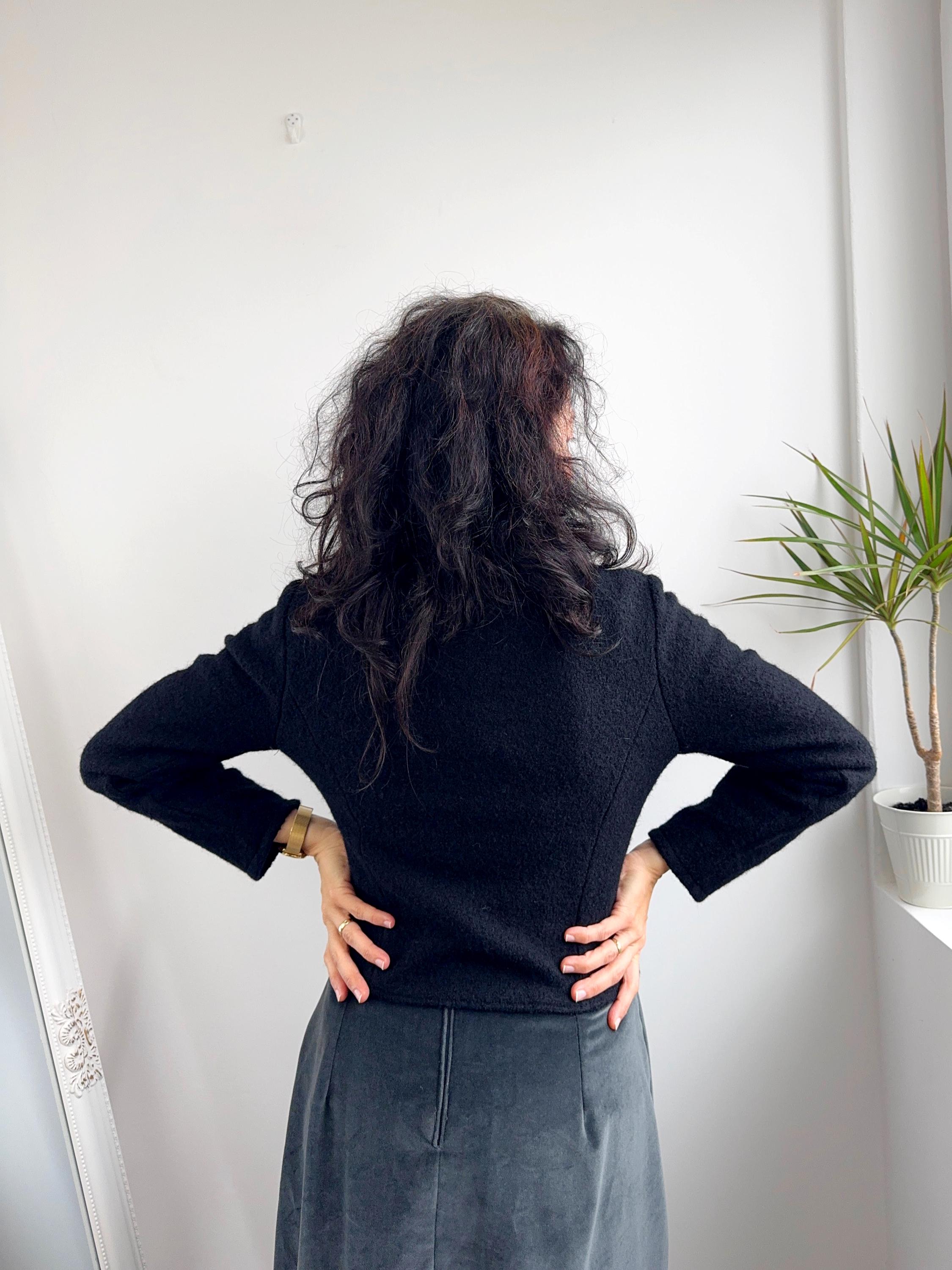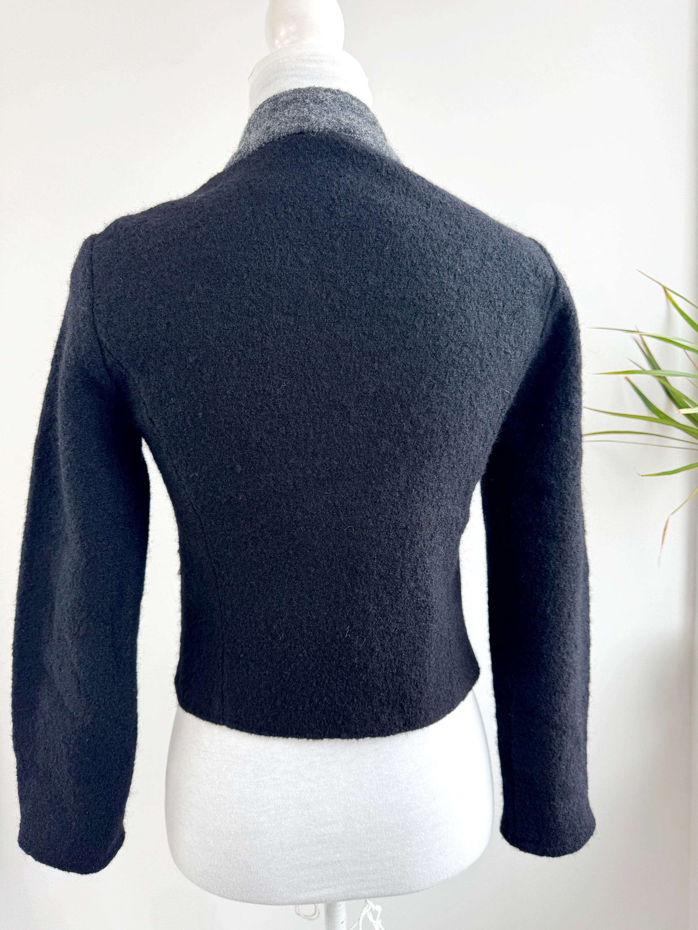 Embrace the cozy charm of Alpine style with this authentic vintage Trachten jacket by LANDHAUS C&A Naturally in size EUR 34, which fits like XS. Crafted from luxurious 100% boiled wool, this pure wool jacket, known as a Janker jacket, offers incredible warmth and durability. The structured, form fitting tailored fit and cropped length are flattering and versatile.