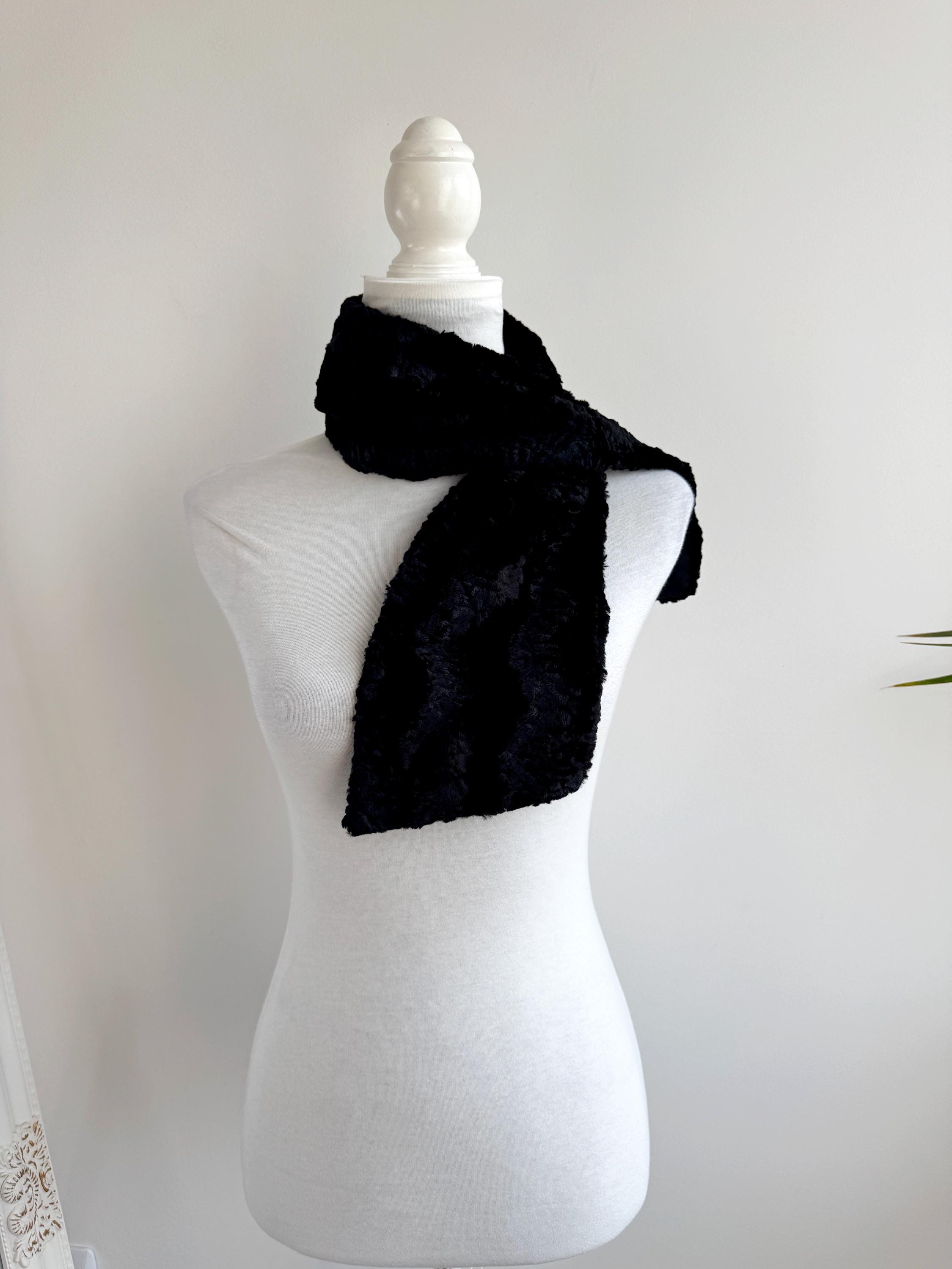 Deep black and incredibly versatile, this accessory is a timeless addition to any winter wardrobe. The textured velvet fabric has a subtle sheen that catches the light, making it ideal for special occasions, winter weddings, or simply elevating your everyday office attire. Because it's a pull-through style, it provides a neat, tucked-in look that won't unravel or need constant adjusting while you're on the move.