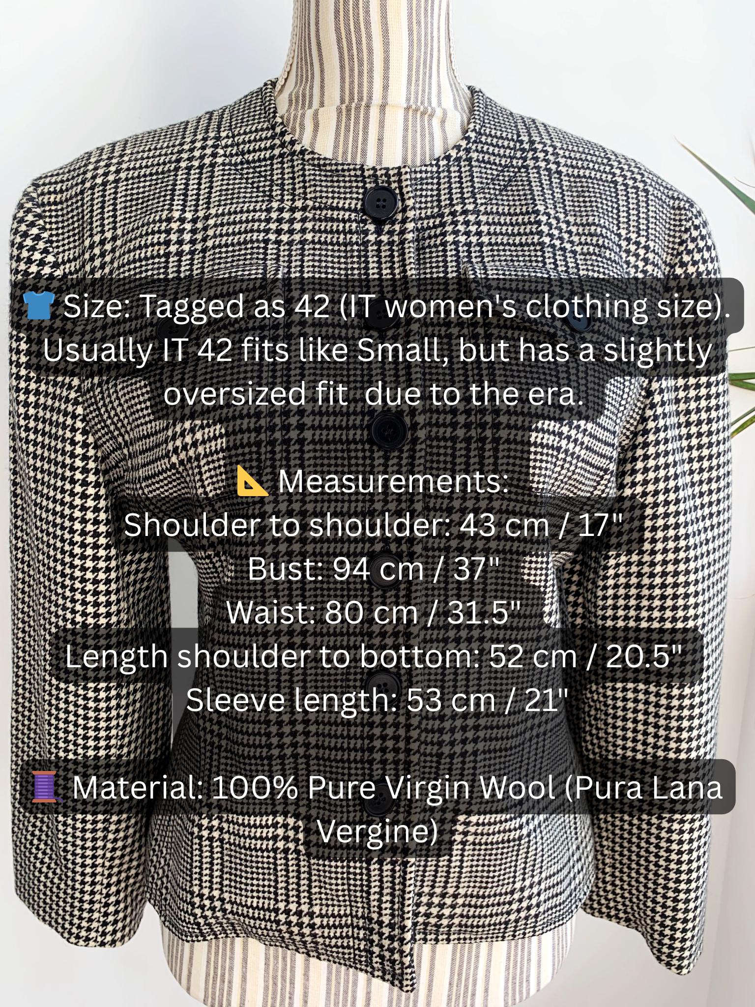 👕 Size: Tagged as 42 (IT women's clothing size). Usually size IT 42 fits like Small, but this blazer has a slightly oversized fit due to the era.