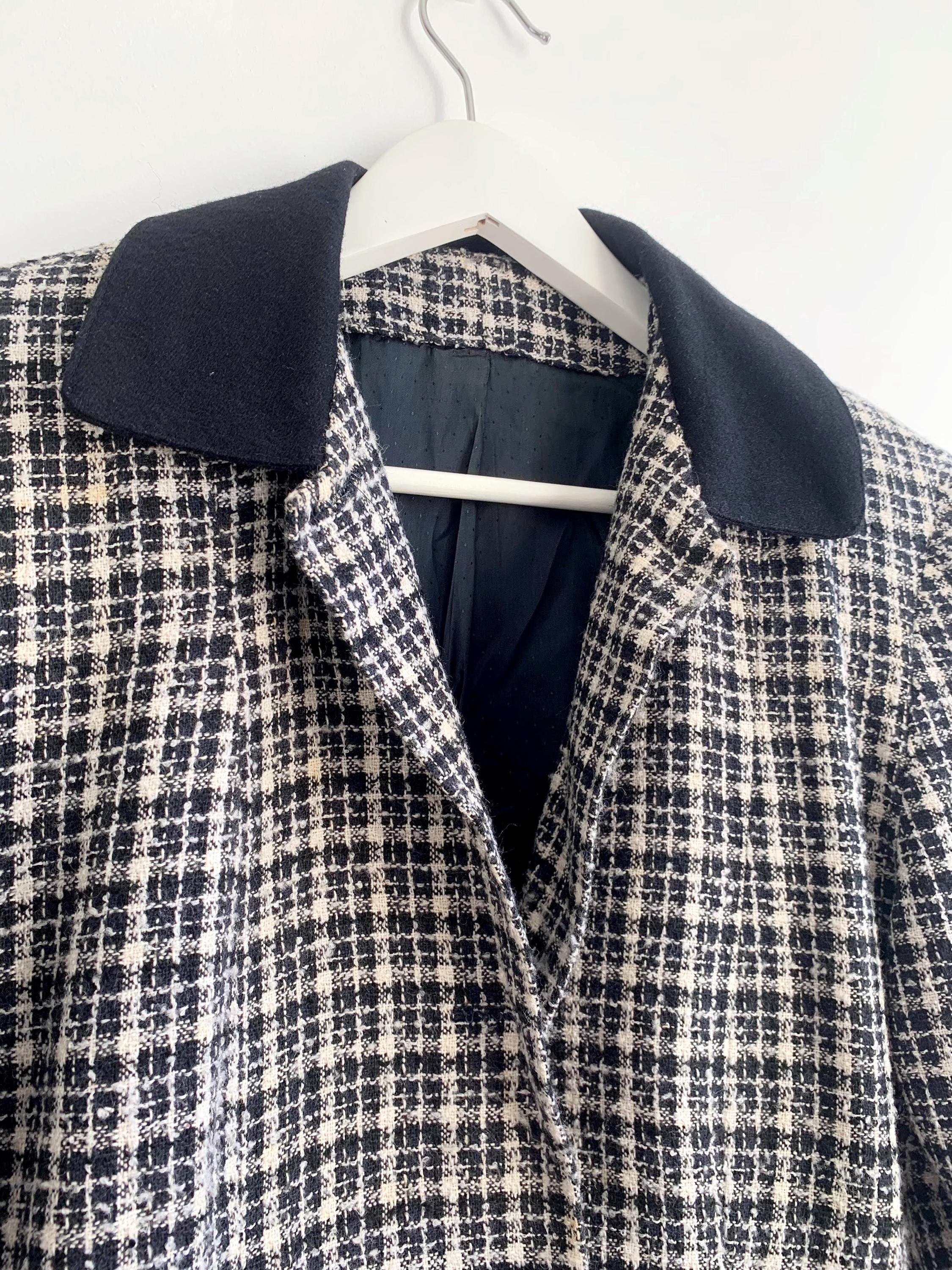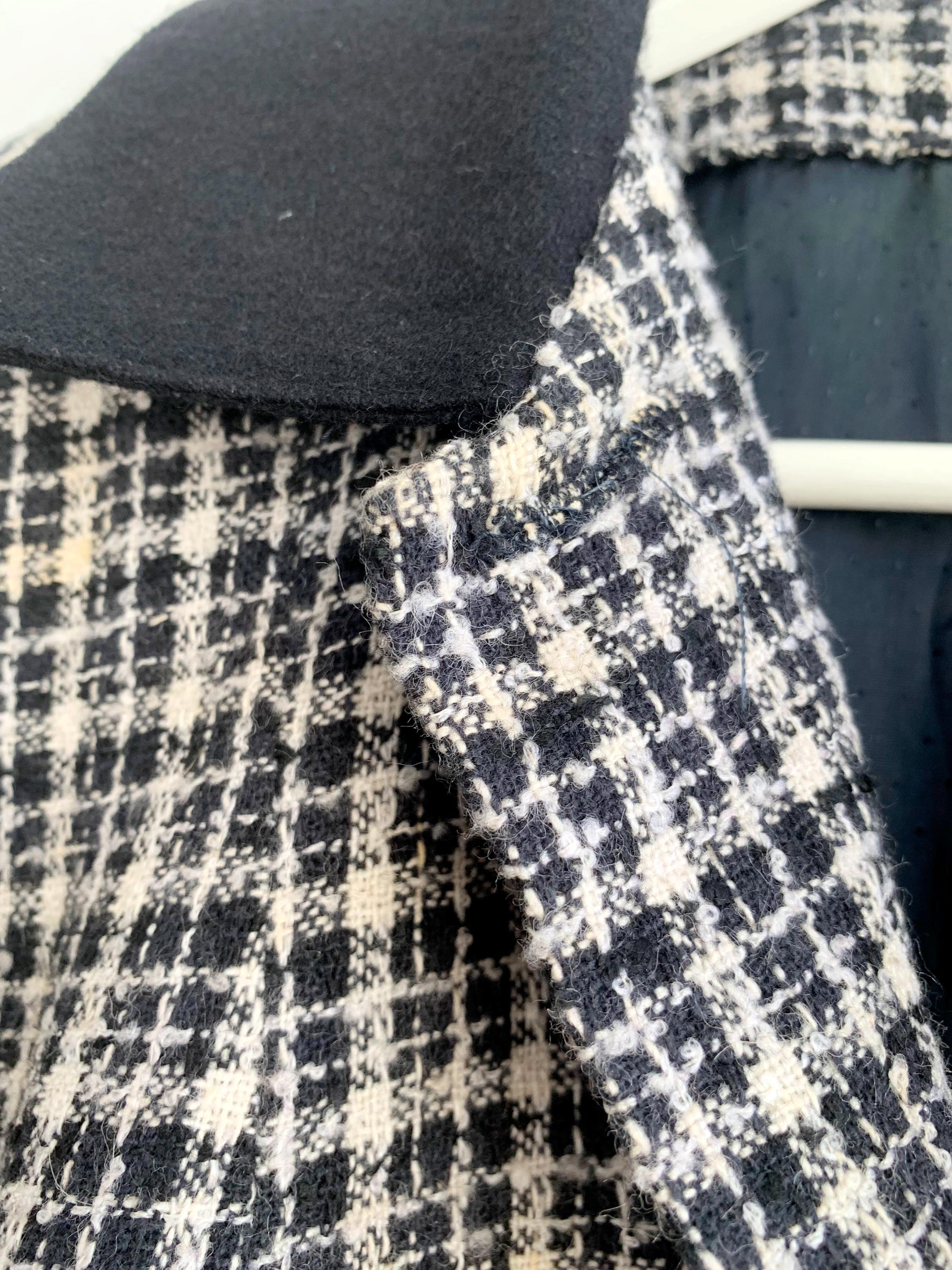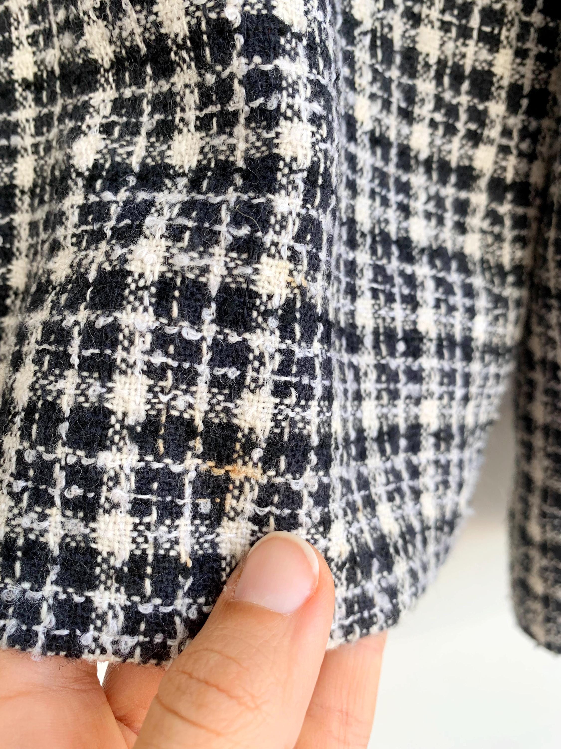 ✨ Condition: Pre-loved vintage condition. Please note there are some small, faint age-related spots on the tweed fabric, particularly near the collar and sleeve (see close up photo). These do not detract significantly from the overall look.