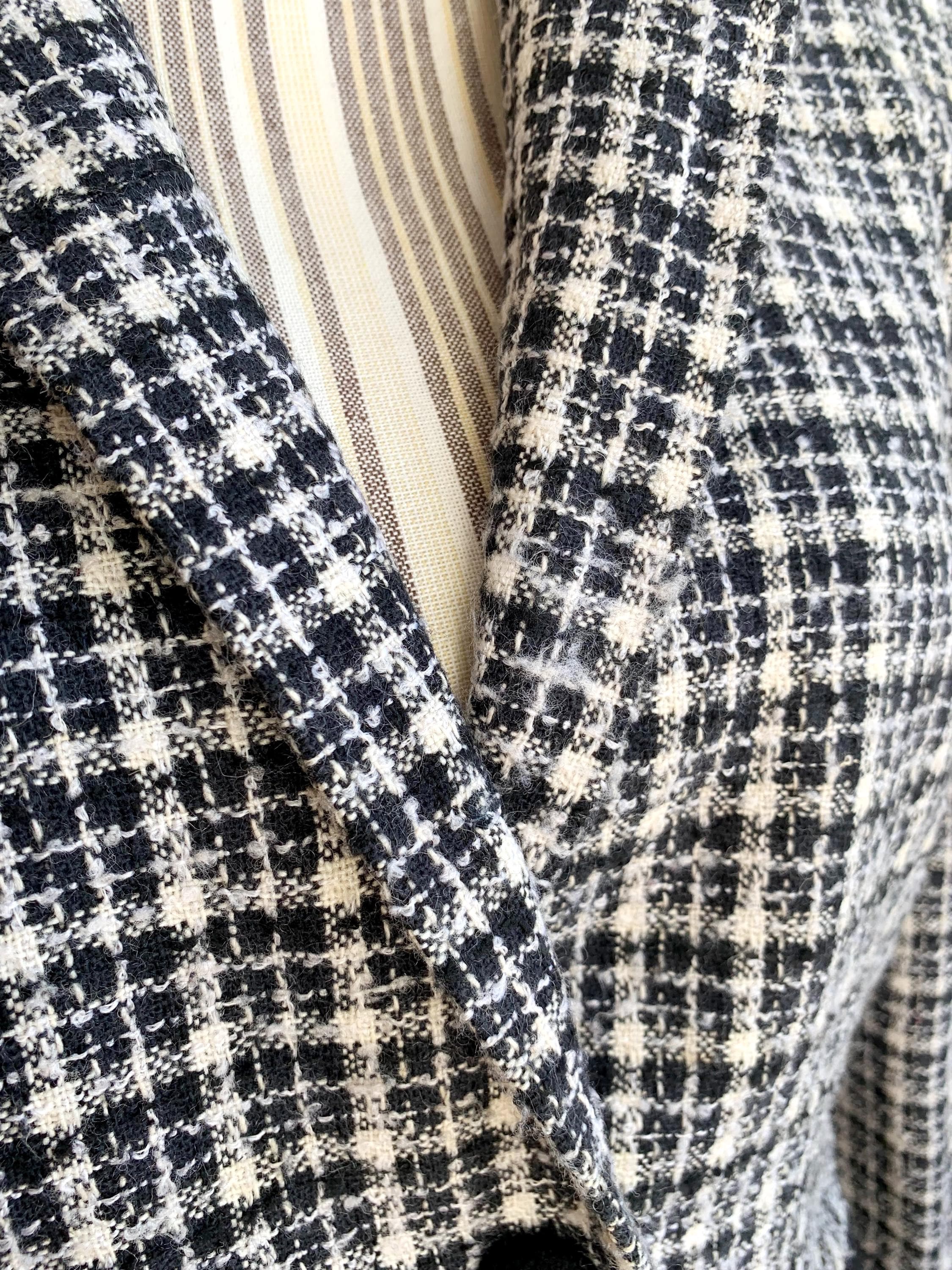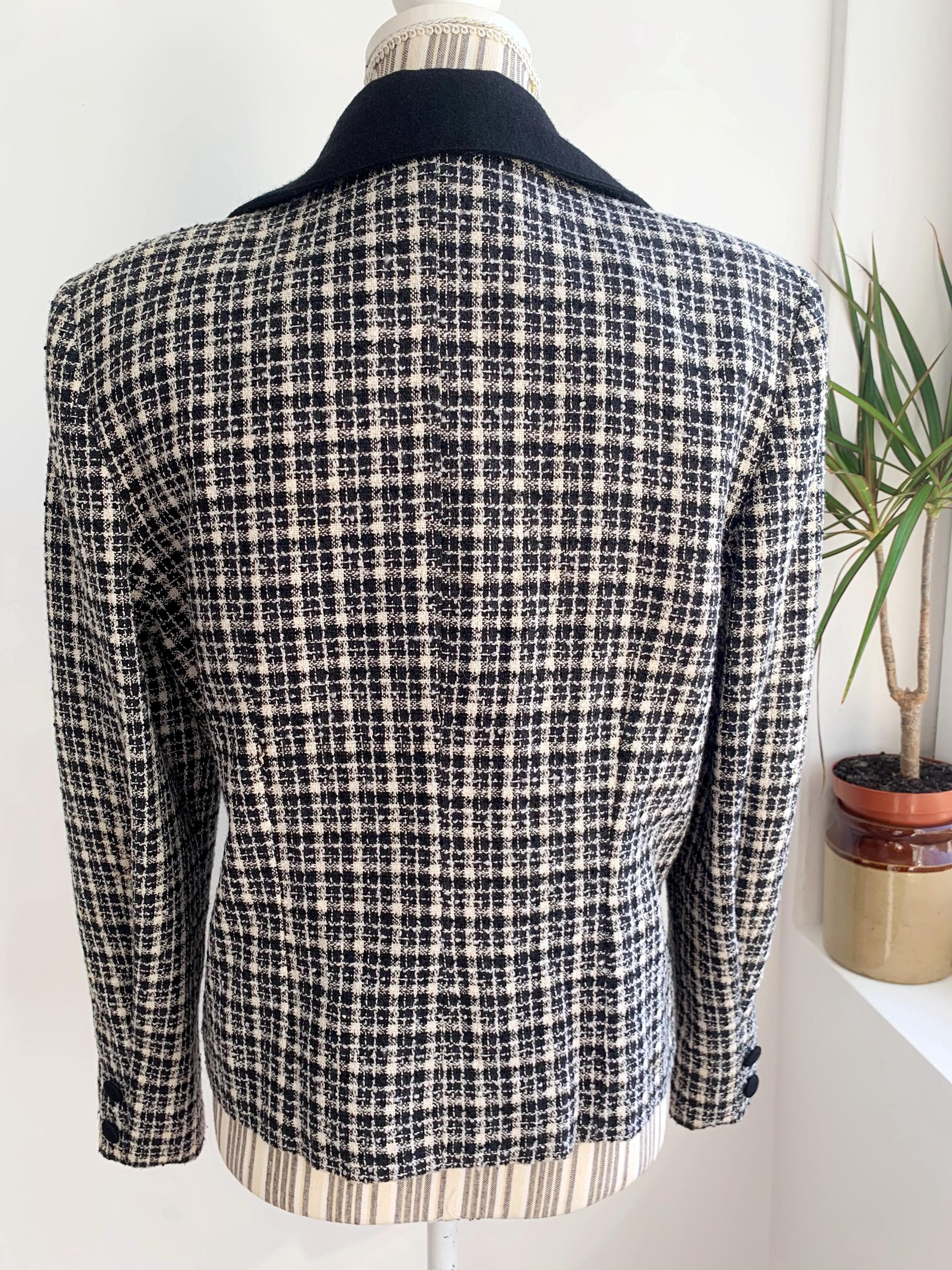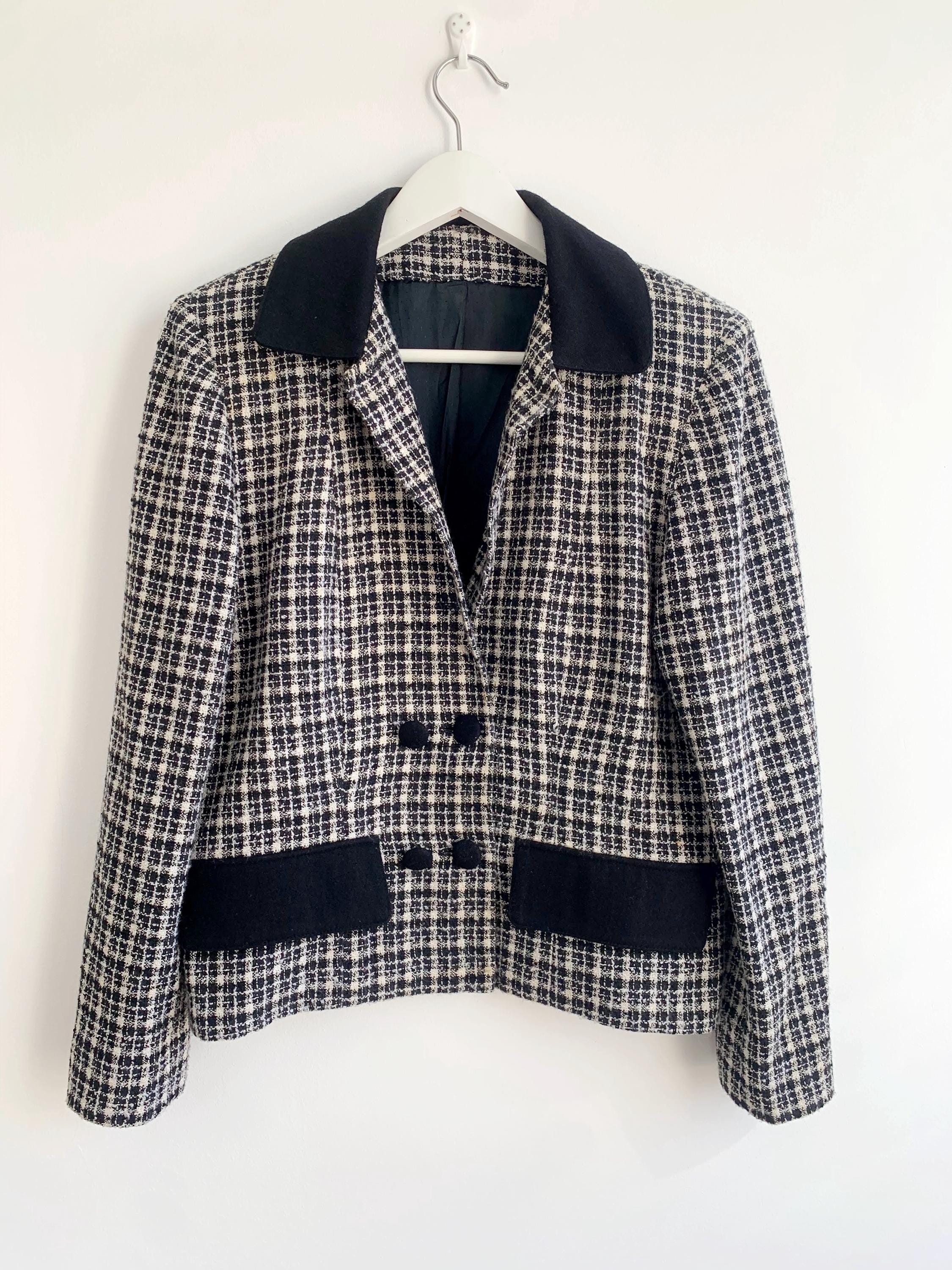 ✨ Condition: Pre-loved vintage condition. Please note there are some small, faint age-related spots on the tweed fabric, particularly near the collar and sleeve (see close up photo). These do not detract significantly from the overall look.