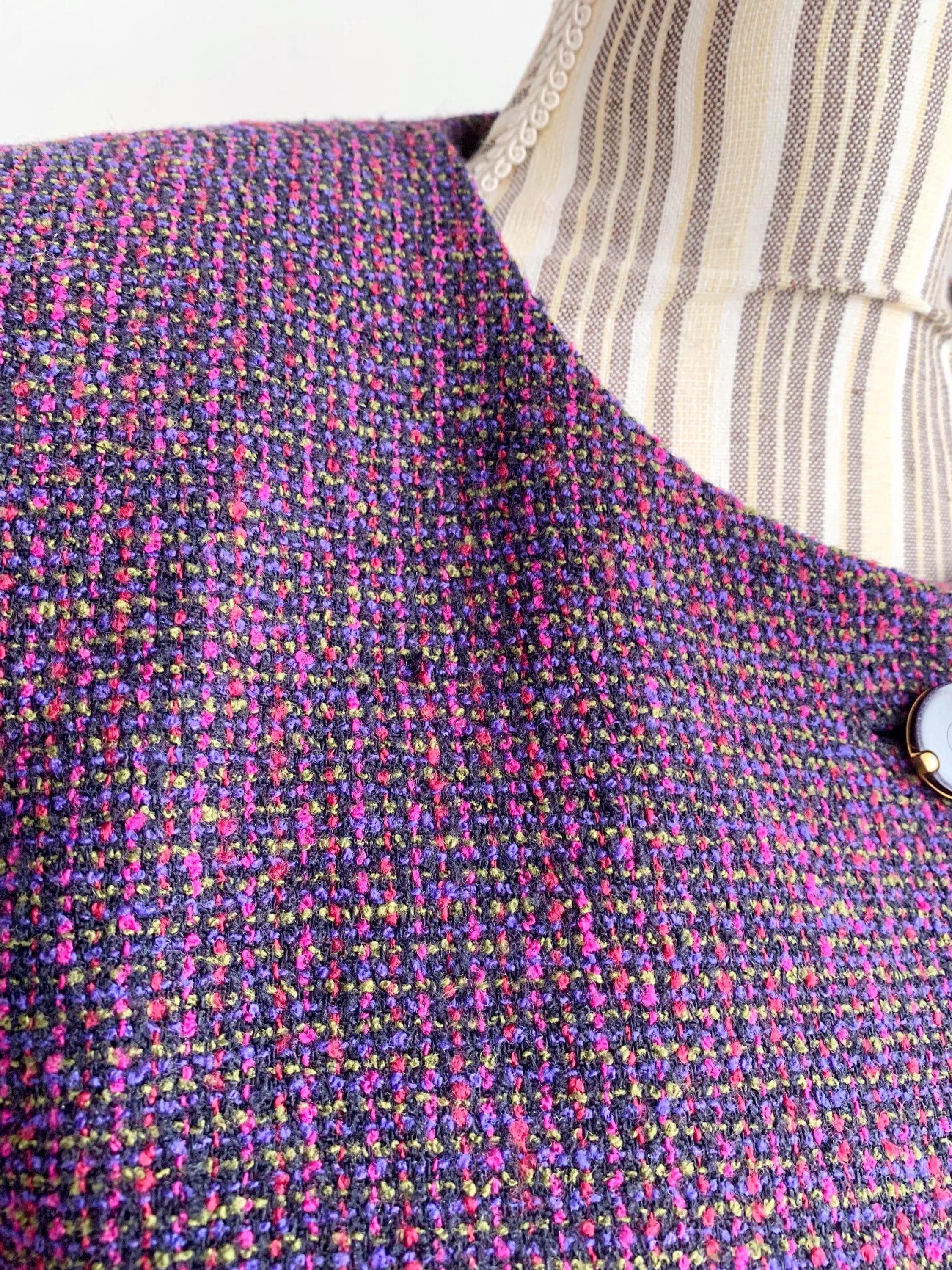 🎨 Color: Multi-tonal Purple, Fuchsia, and Magenta Tweed.