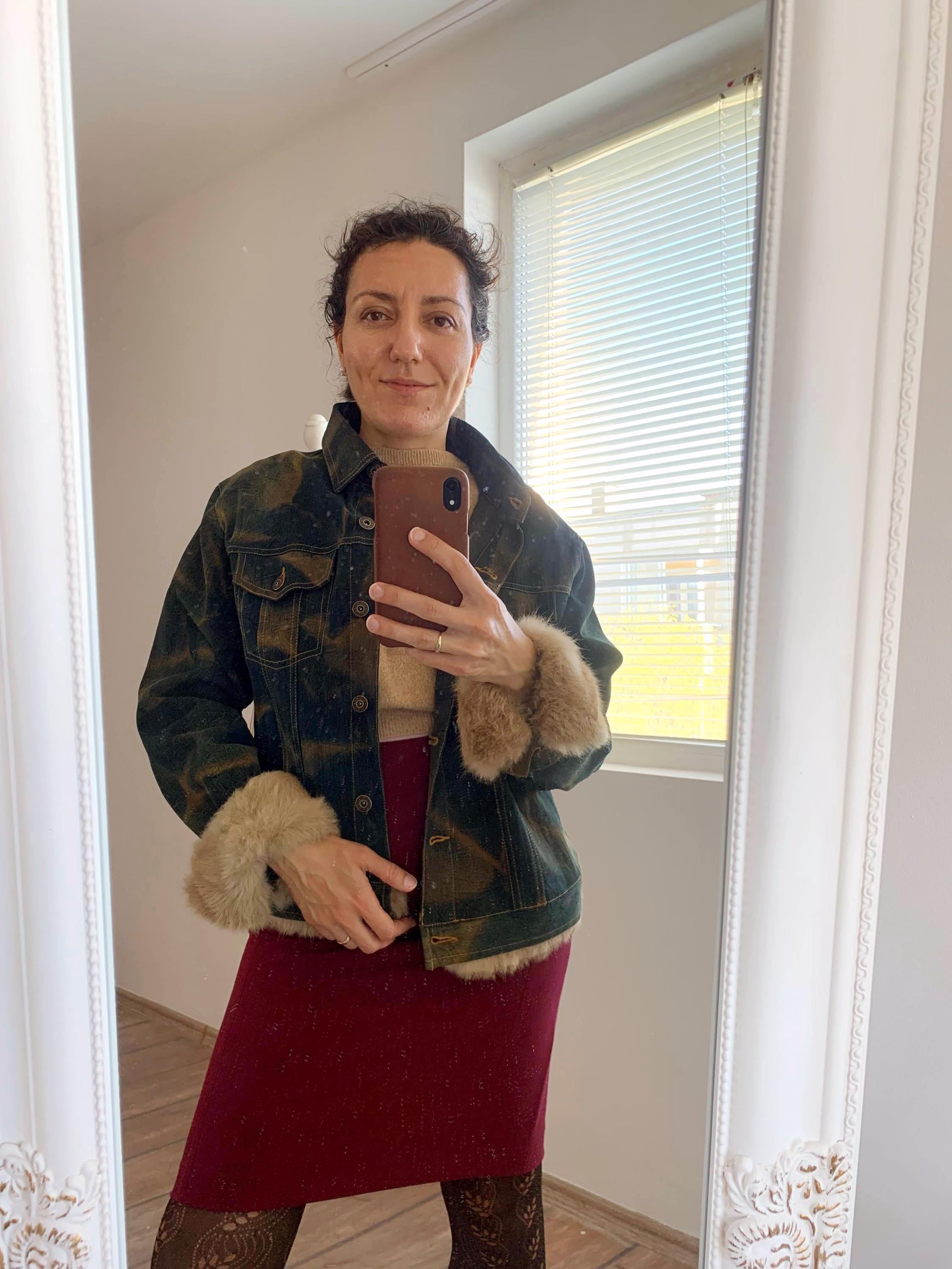 🧵 Material: 97% Denim (Cotton) , 3% Elastane with Faux Fur Trim