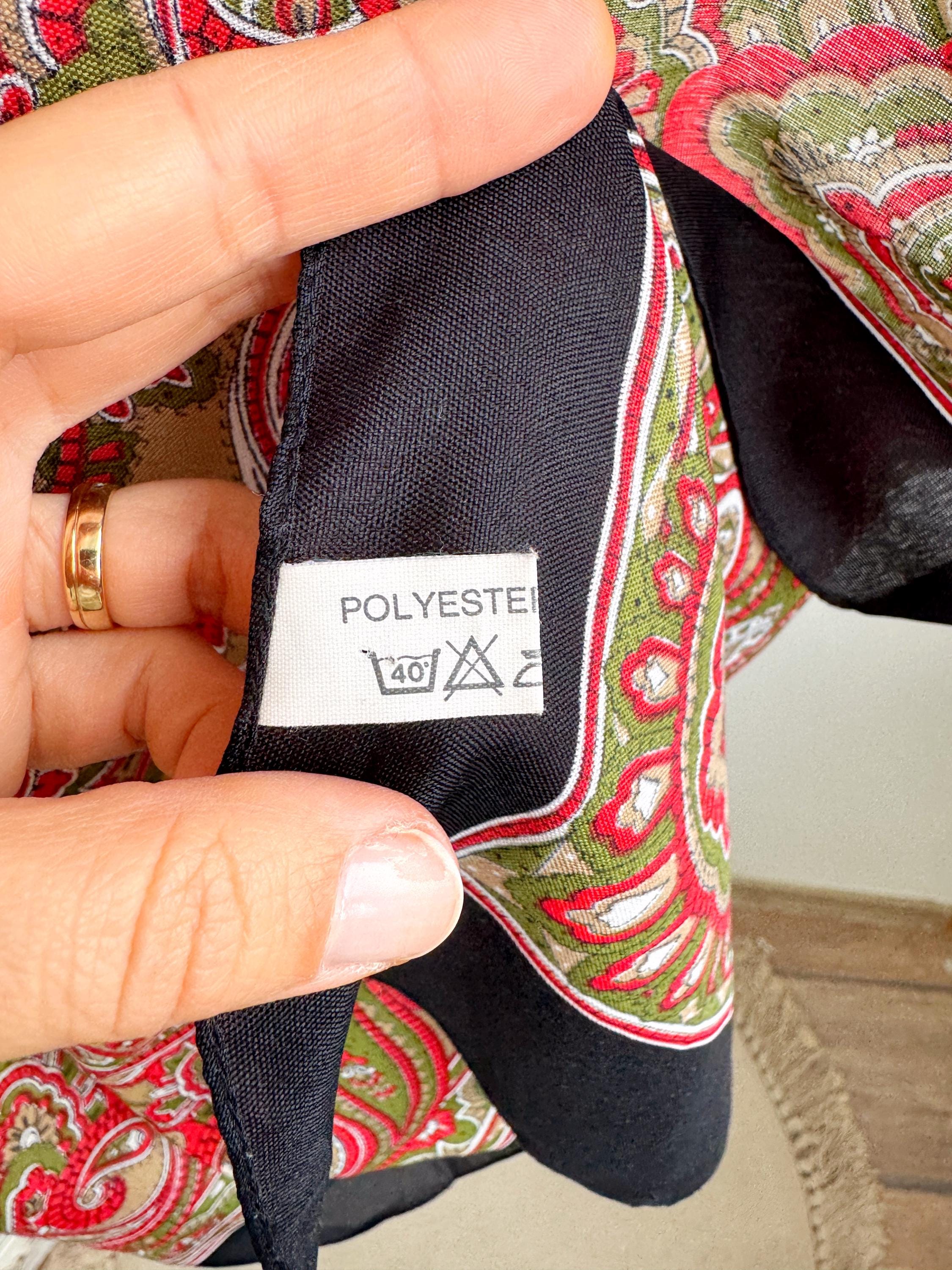 Crafted in Italy from high-quality polyester, the fabric has a lightweight, breathable feel. Whether tied as a classic neckerchief, worn as a chic headwrap, or draped over your shoulders, this authentic vintage piece is a testament to classic European craftsmanship.