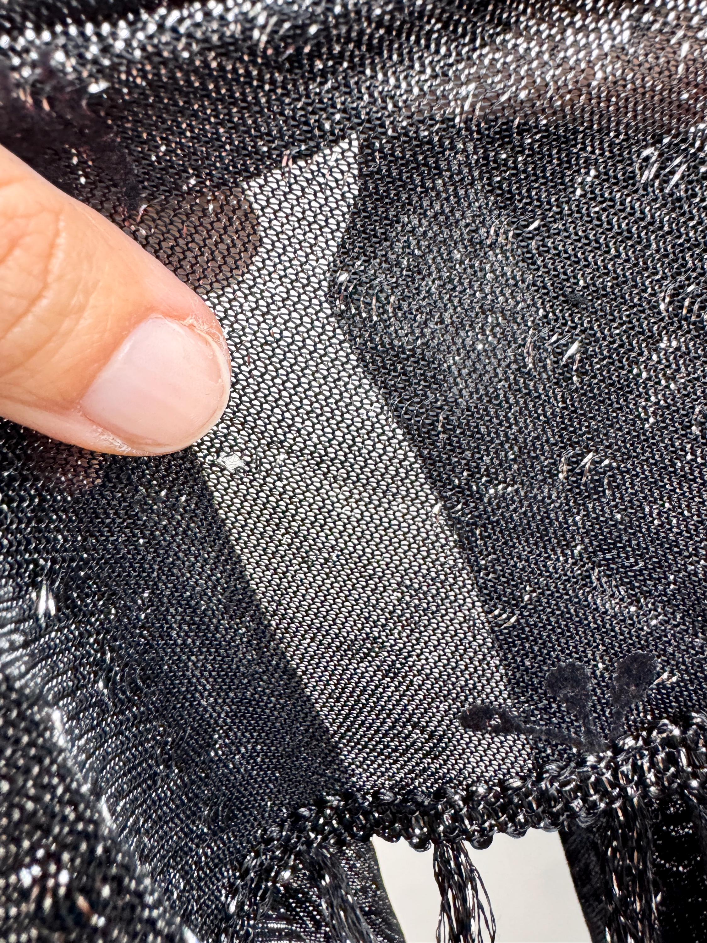 ✨ Condition: Very good vintage condition. Please note there is one tiny pin-sized hole in the mesh (shown in the detail photos), which is nearly invisible when worn due to the sparkle and drape of the fabric.