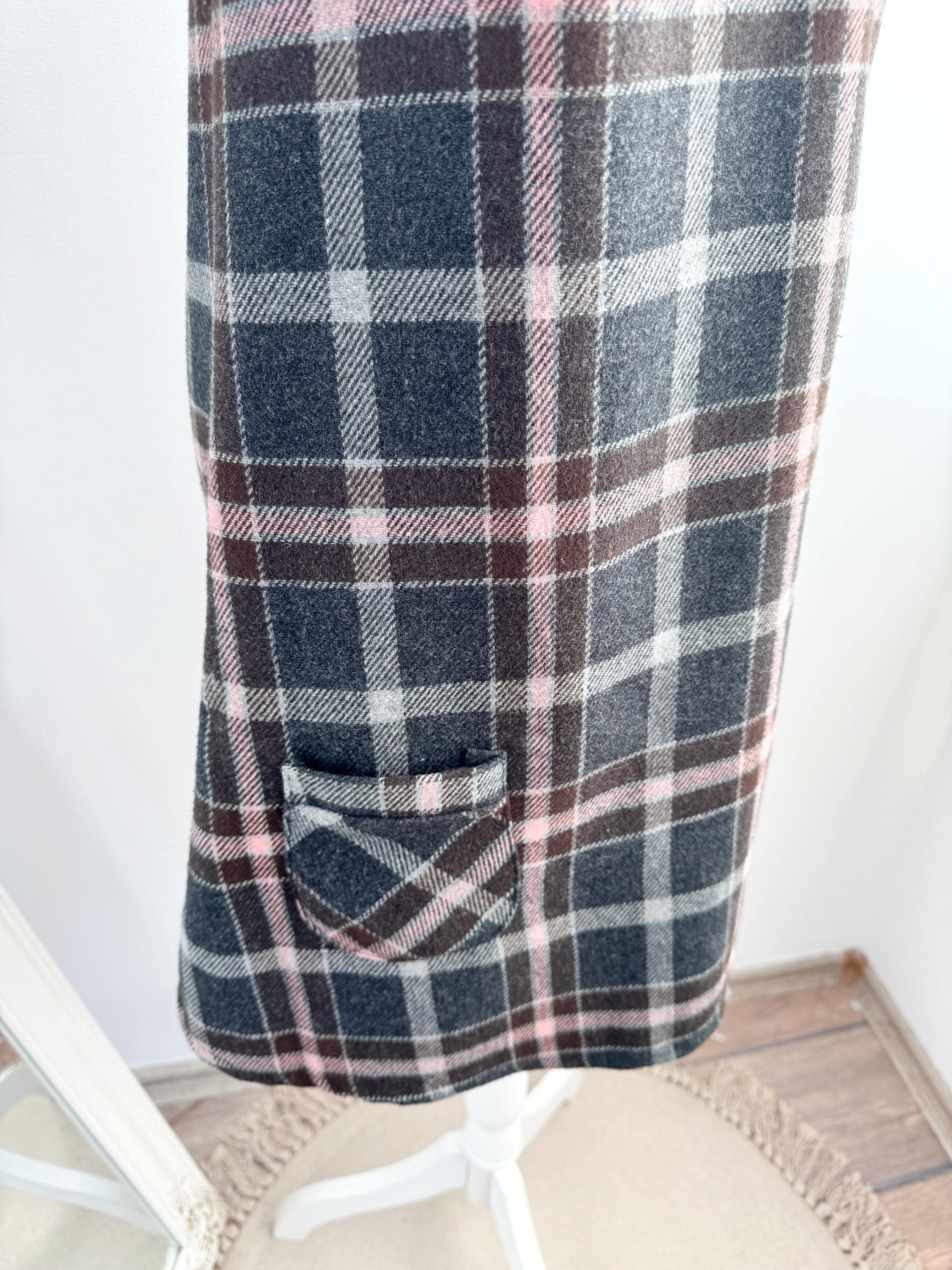 🎨 Color: Charcoal Grey, Brown, and Pale Pink Plaid