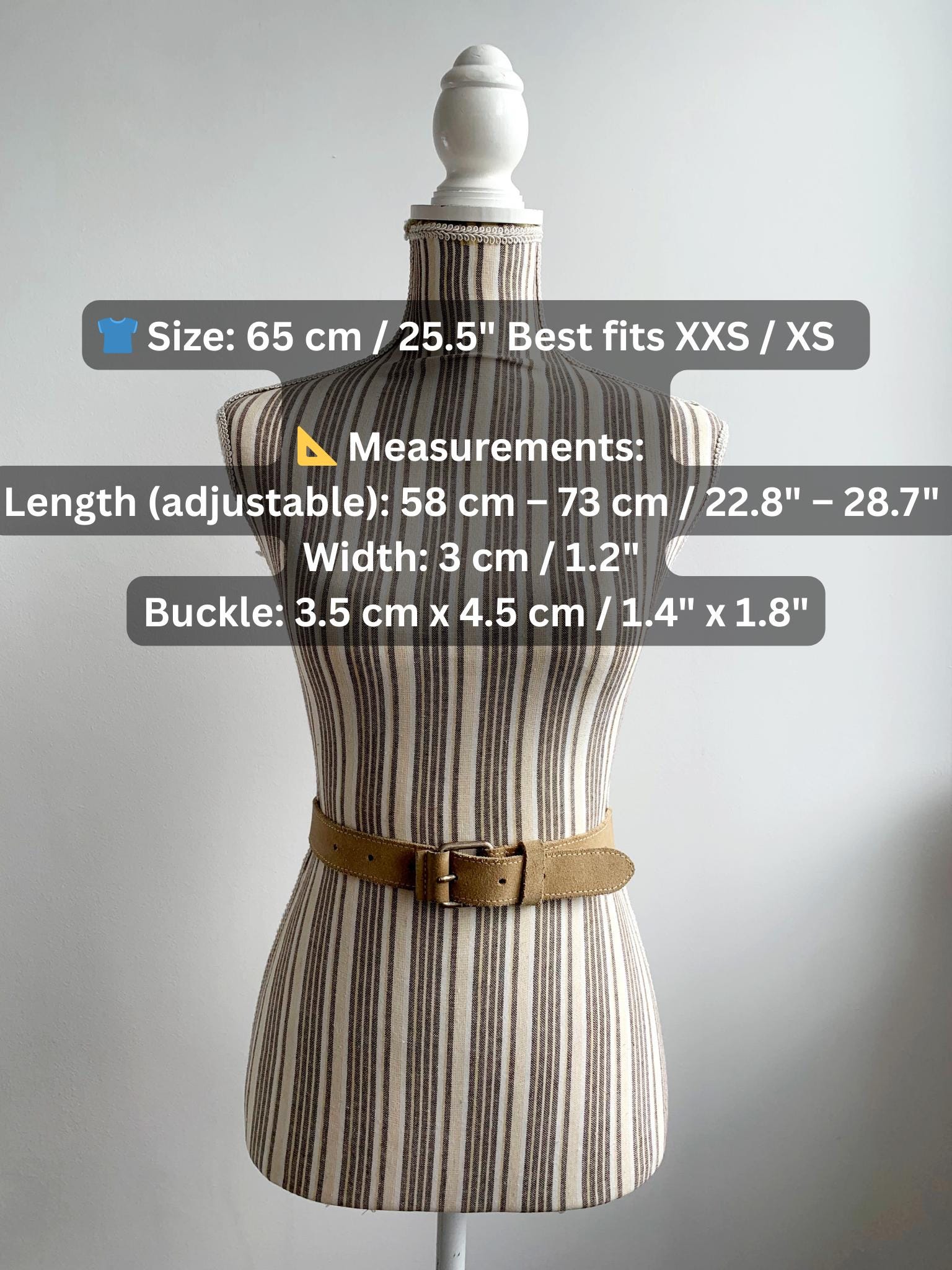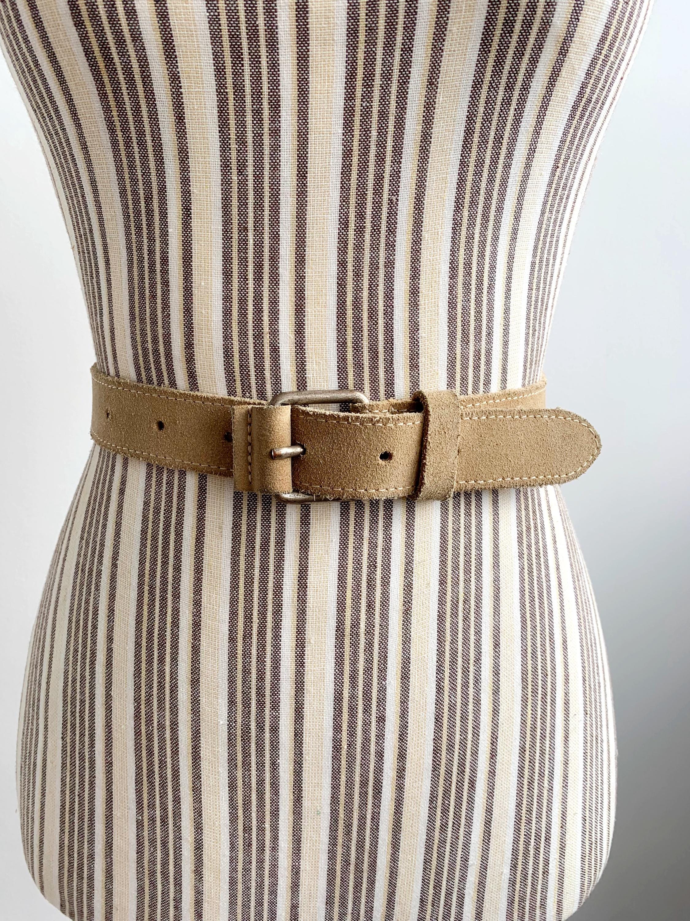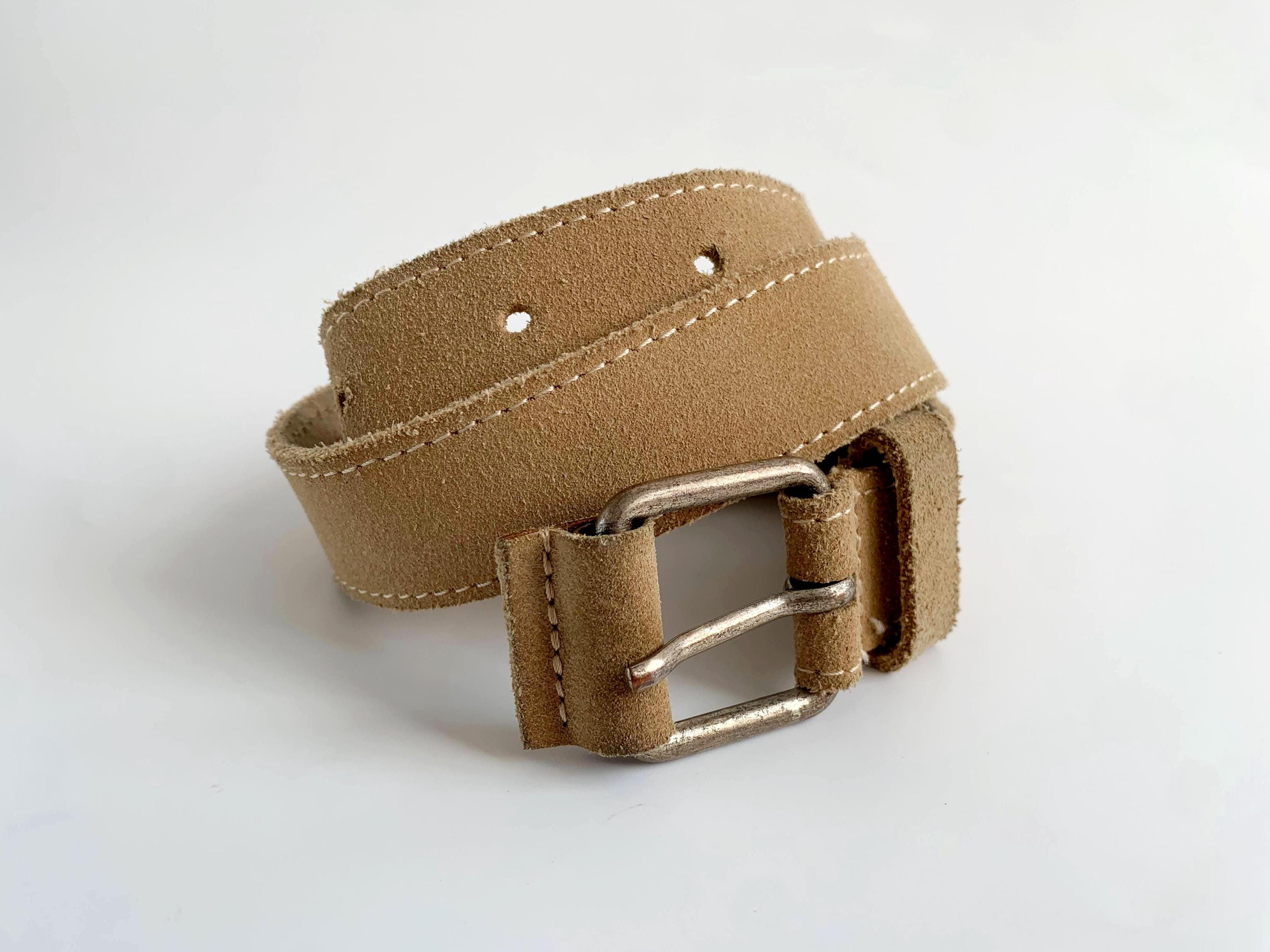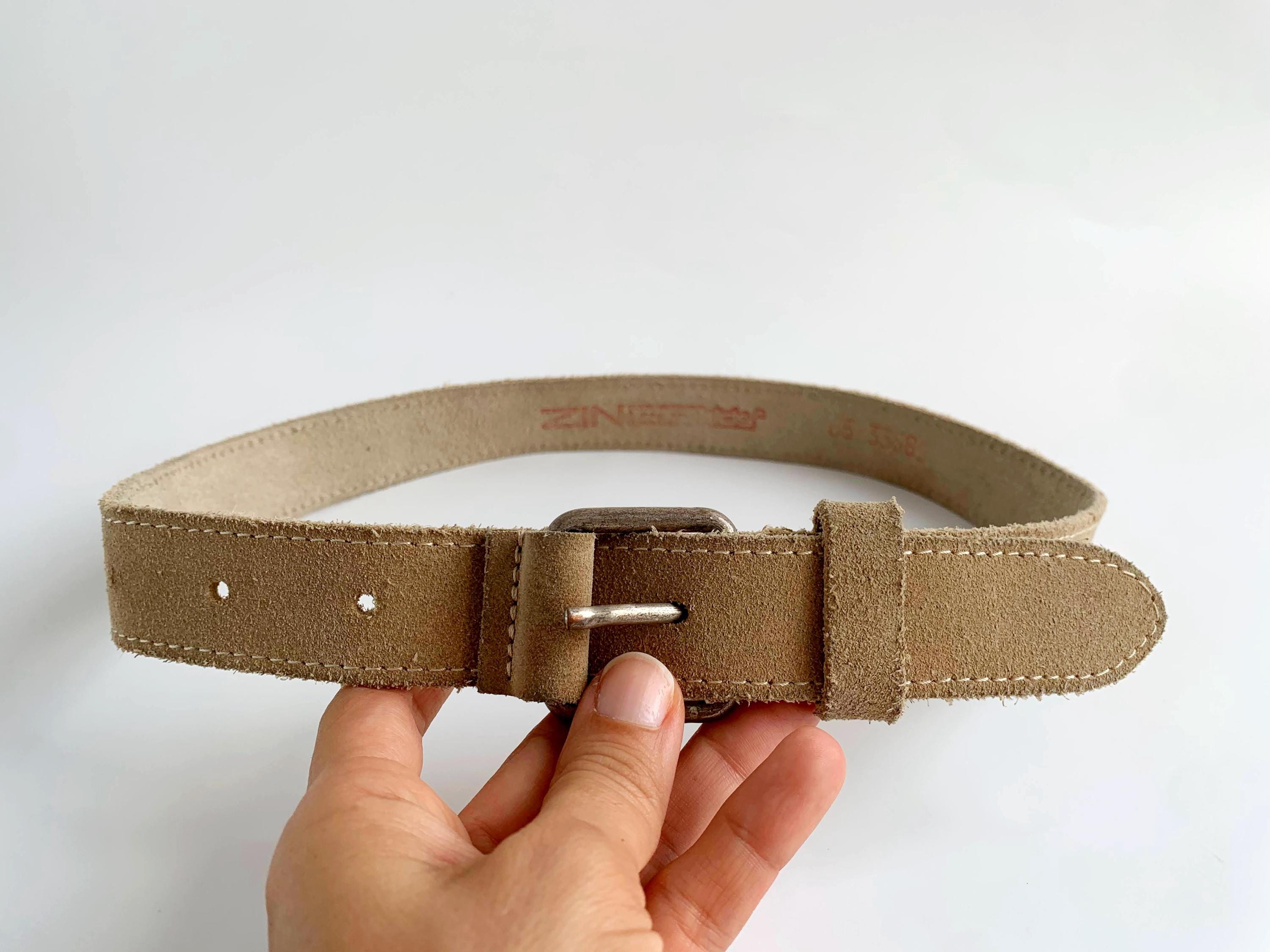 This is a simple beige suede leather belt for women in size 65 cm / 25.5" which fits like size XXS/ XS. This vintage beige suede leather belt has minimalist deisgn with simple silver tone buckle. This essential boho grunge belt features a soft, textured tan suede finish, perfectly capturing the minimalist aesthetic of the 1990s. The antiqued silver-tone buckle adds a touch of rustic charm, making it a versatile piece for cinching oversized blazers, high-waisted denim, or flowy bohemian dresses.