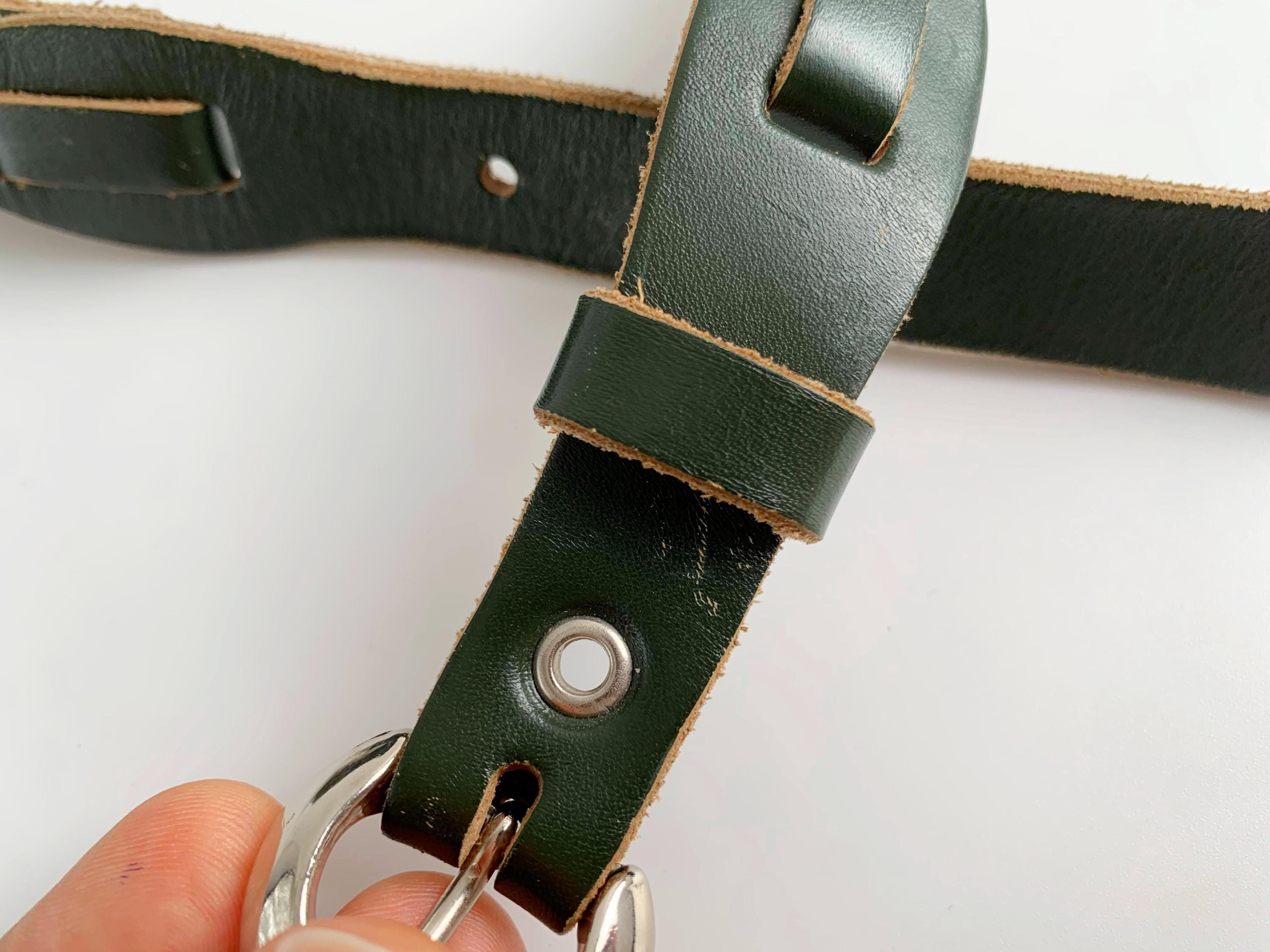 Whether you’re cinching a flowy vintage dress or adding character to a pair of high-waisted denim, this dark green leather belt offers a timeless, nature-inspired aesthetic. The deep green palette is incredibly versatile, making it a staple accessory for any sustainable wardrobe.