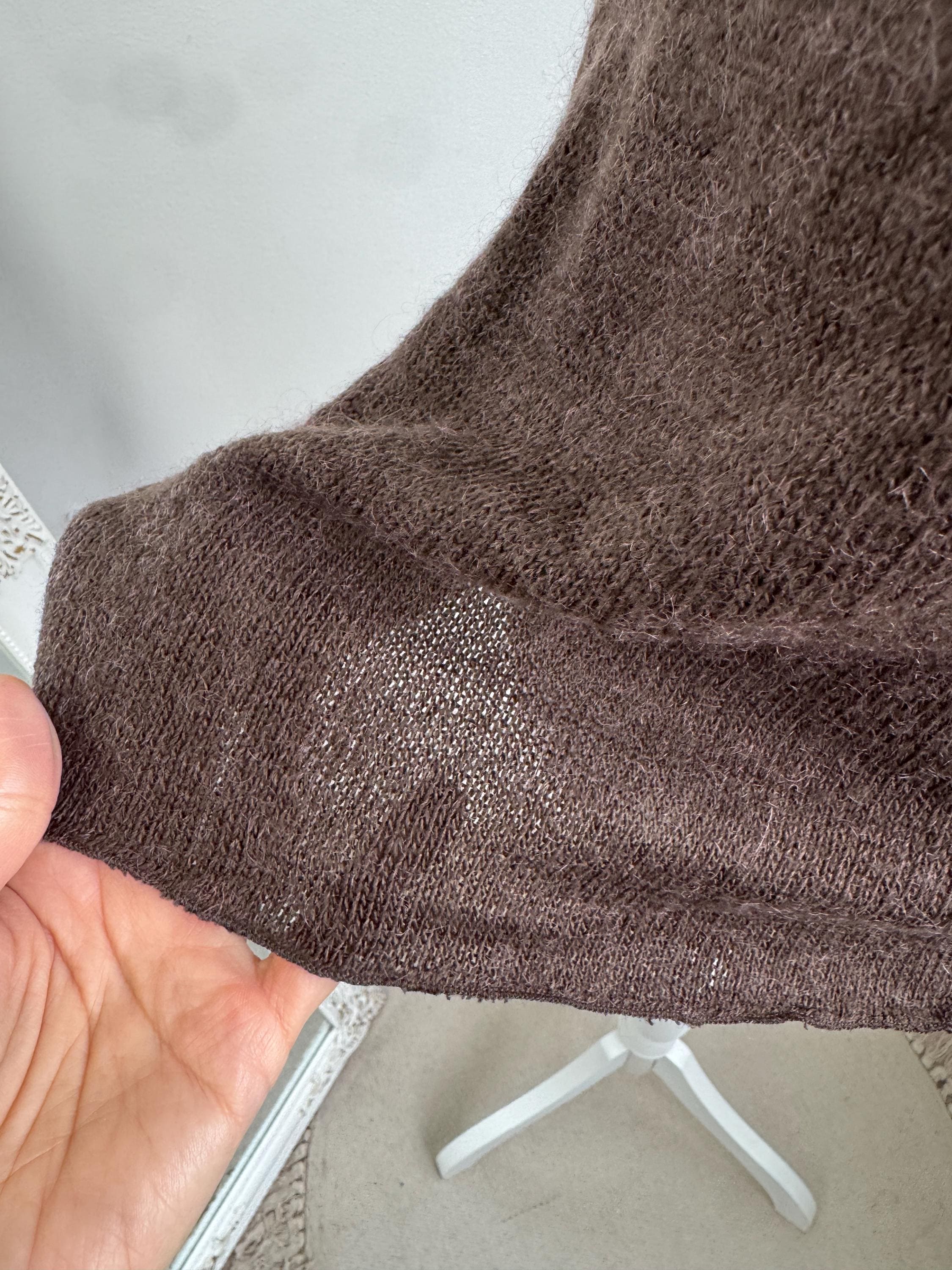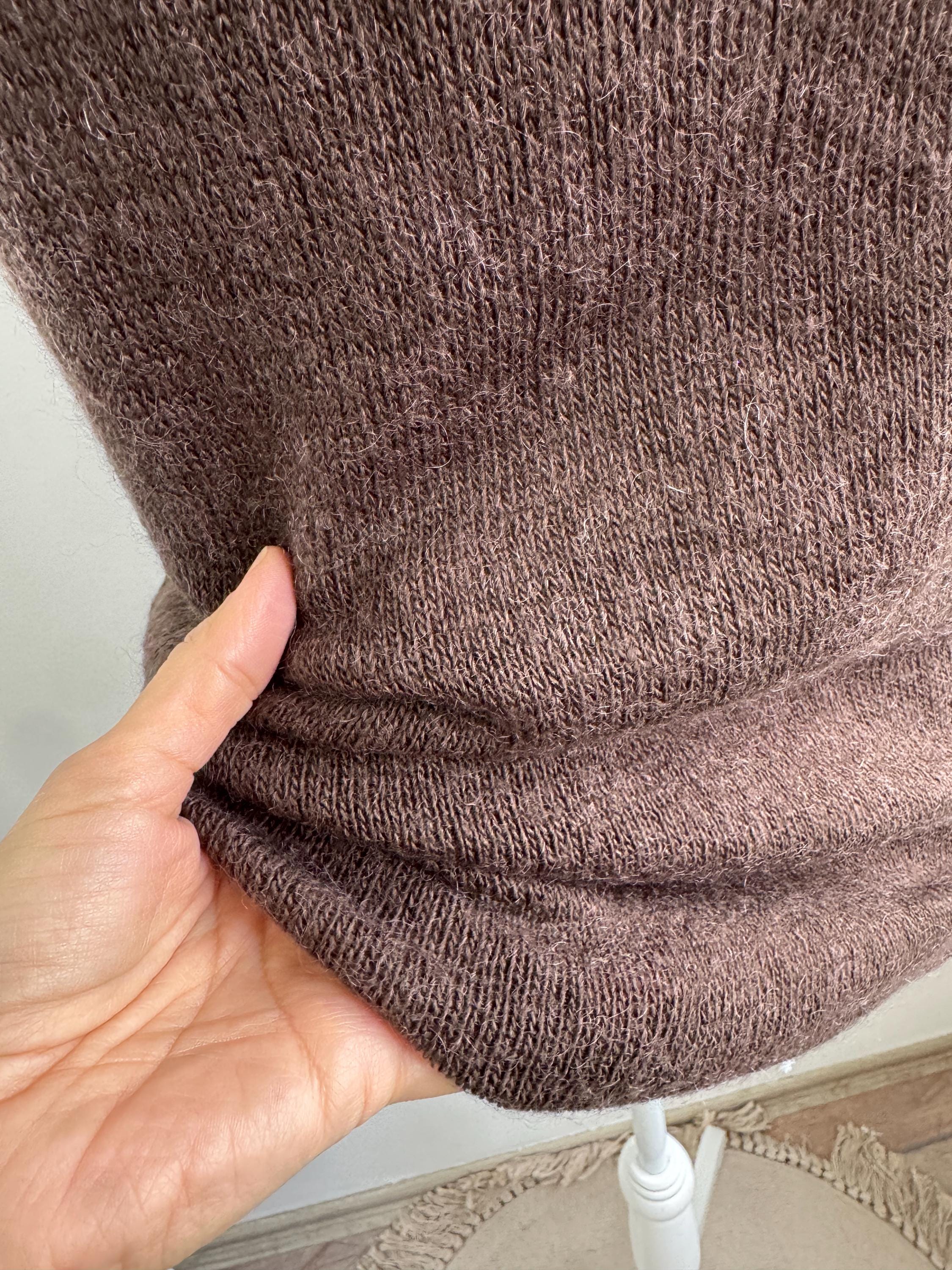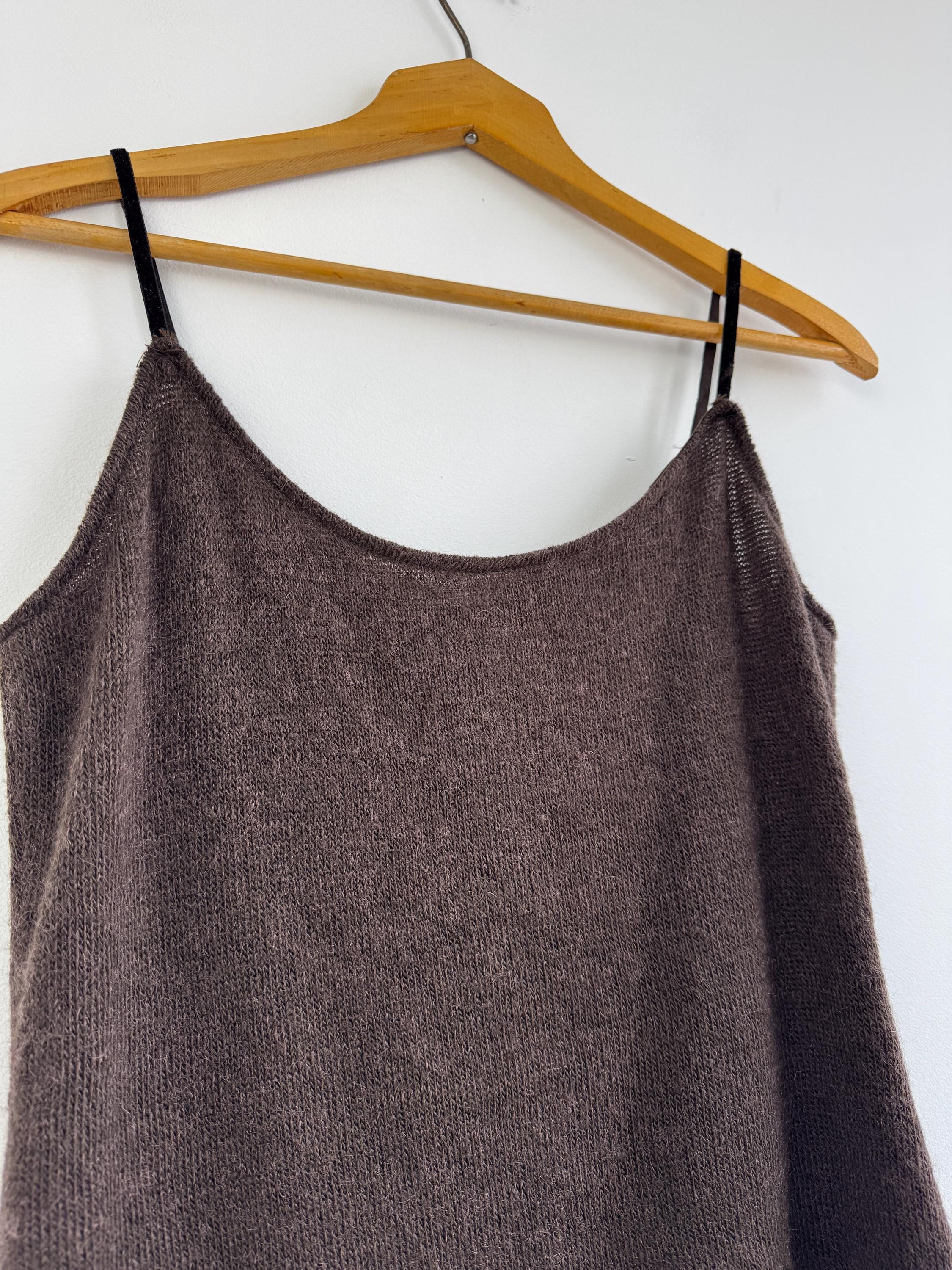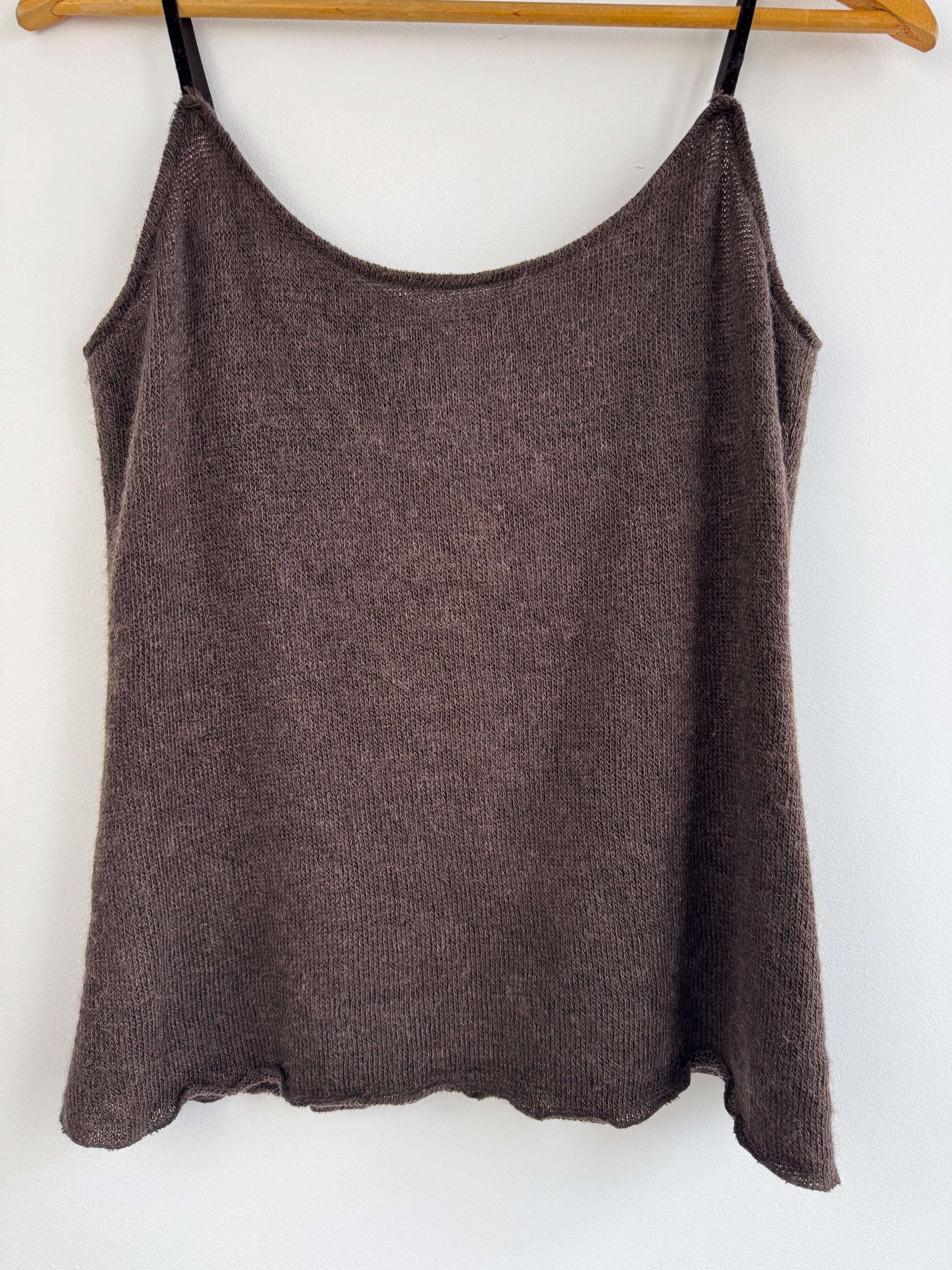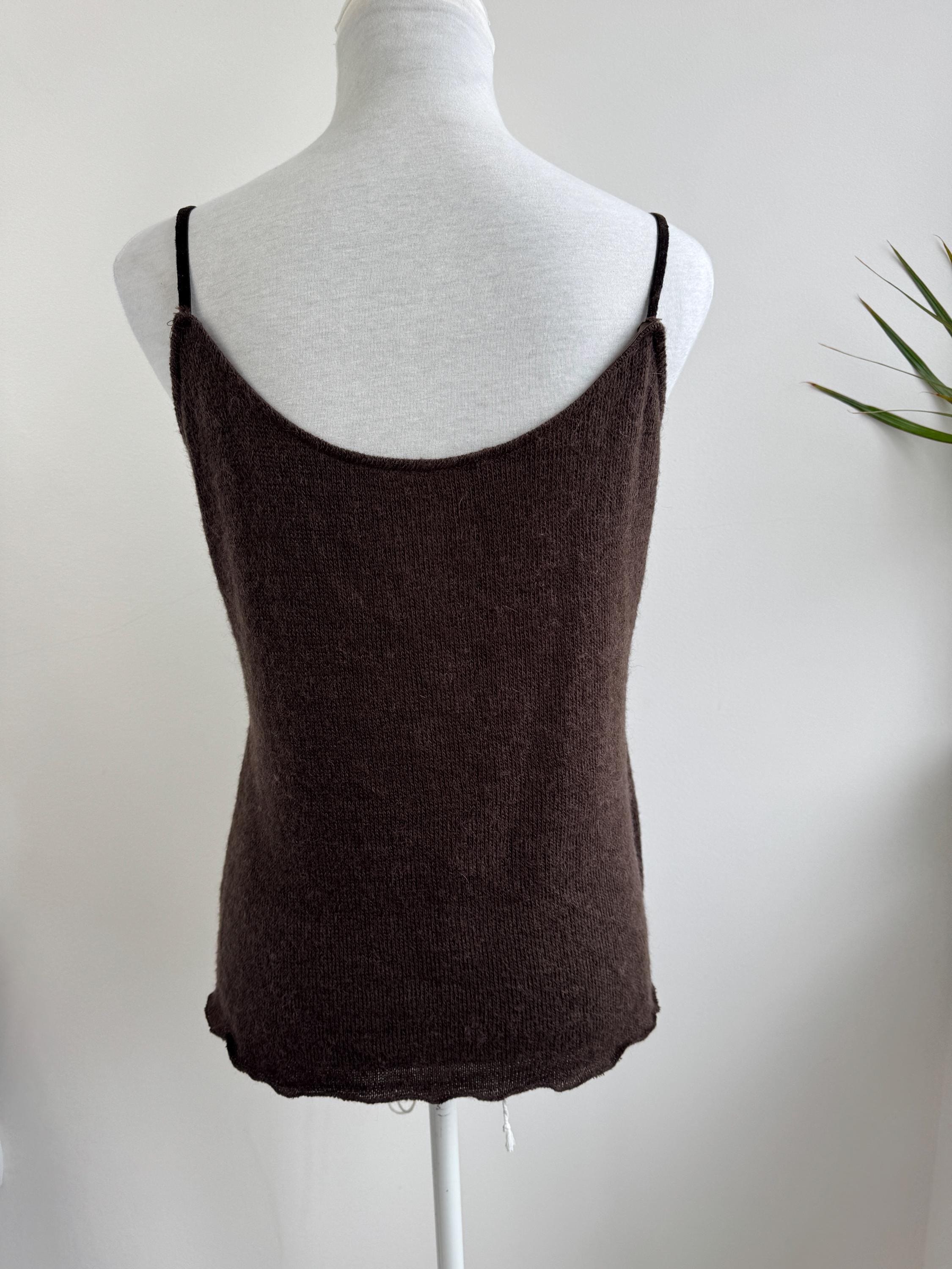 Crafted in Italy, this knitted cami top offers a generous stretch and a flattering fit that molds to the body. Whether you’re styling it under a chunky cardigan for a cozy winter look or pairing it with a silk skirt for a 90s-inspired evening outfit, this versatile sleeveless sweater brings a touch of vintage luxury to any wardrobe. The rich mocha hue is timeless and easy to style across all seasons.