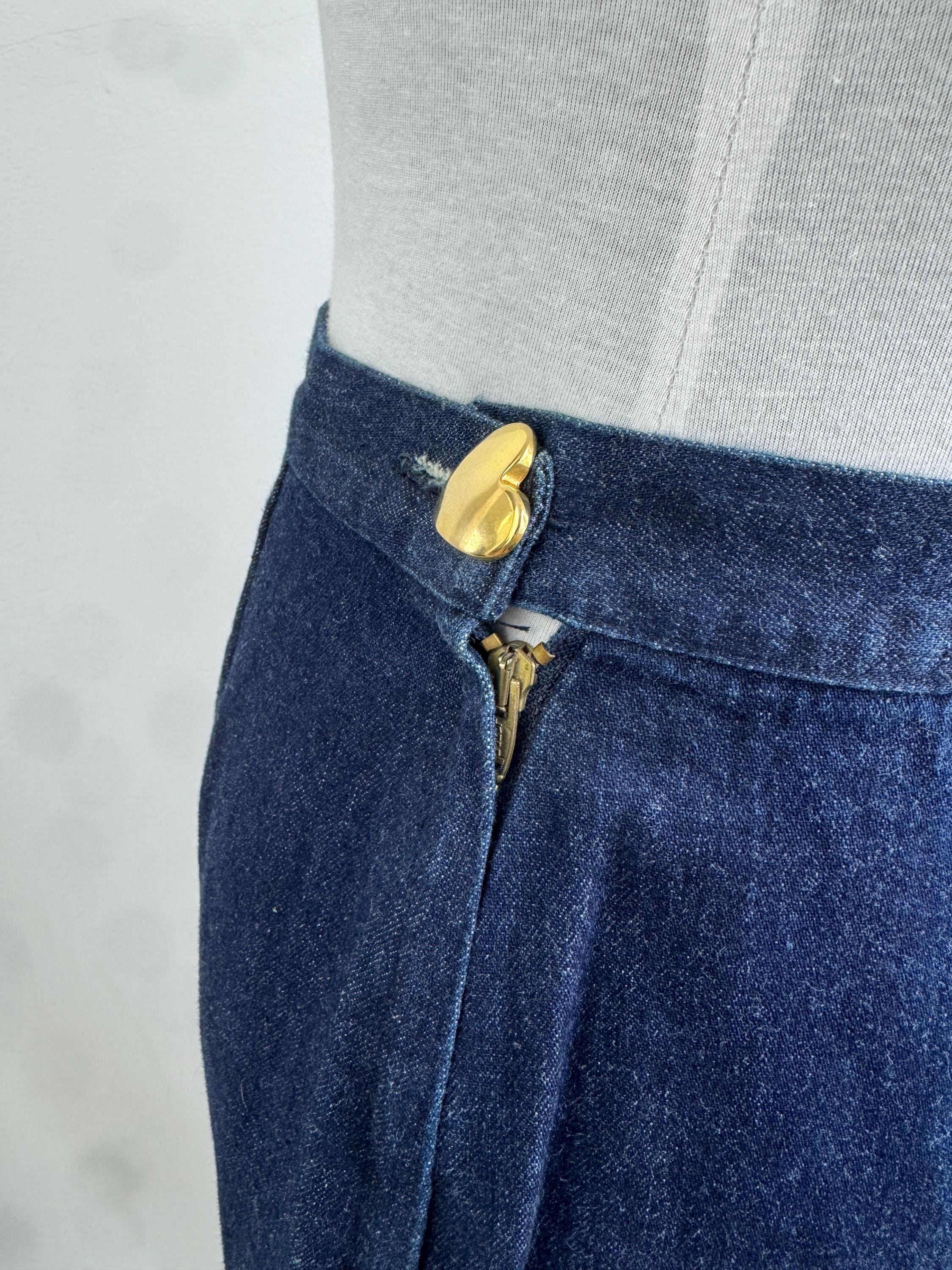 With its high-waisted silhouette and classic pencil cut, this denim pencil skirt offers a flattering fit that celebrates vintage femininity. If you're aiming for a modern eclectic style, this Italian-made vintage gem is a versatile addition to any collection.