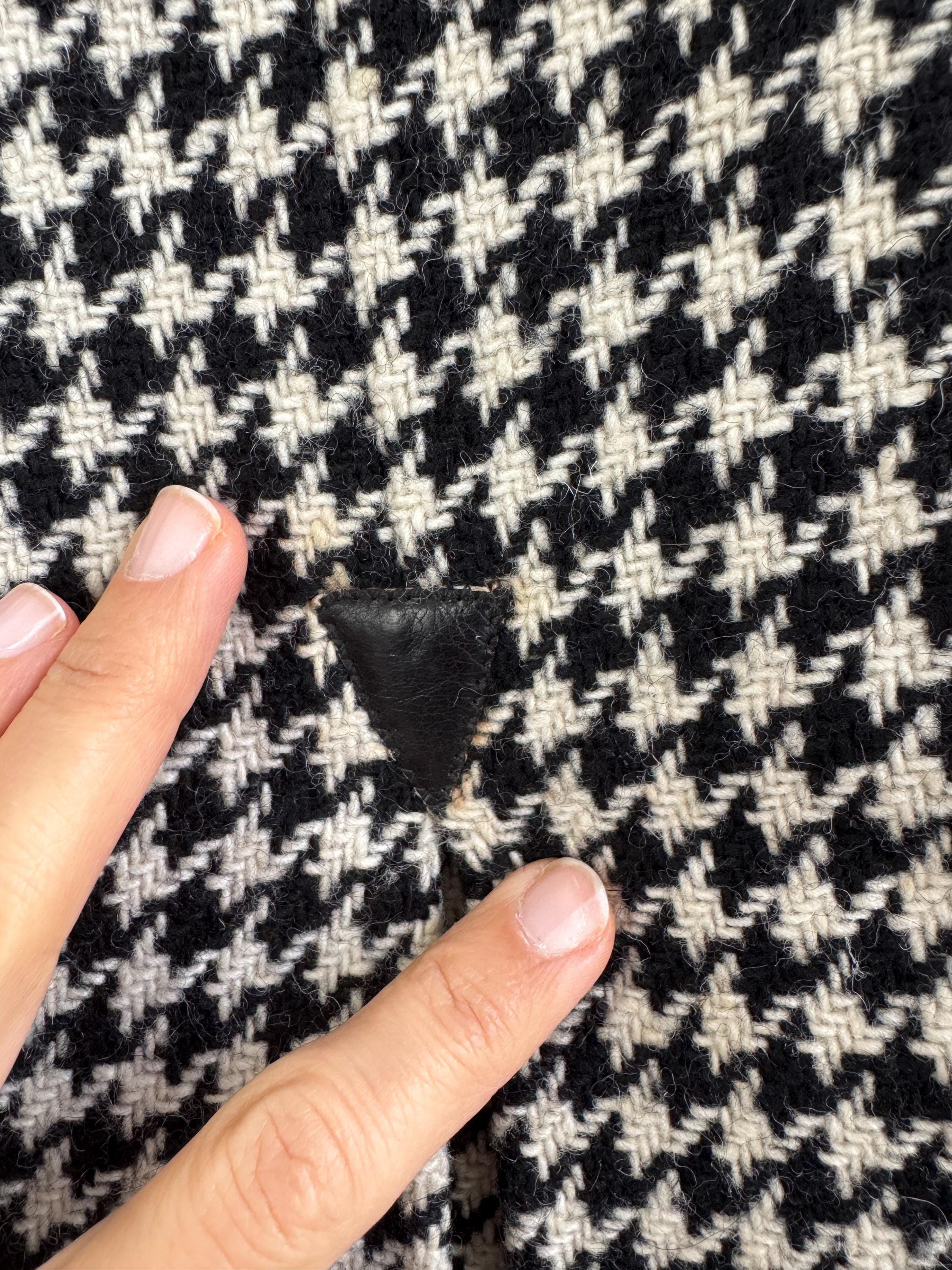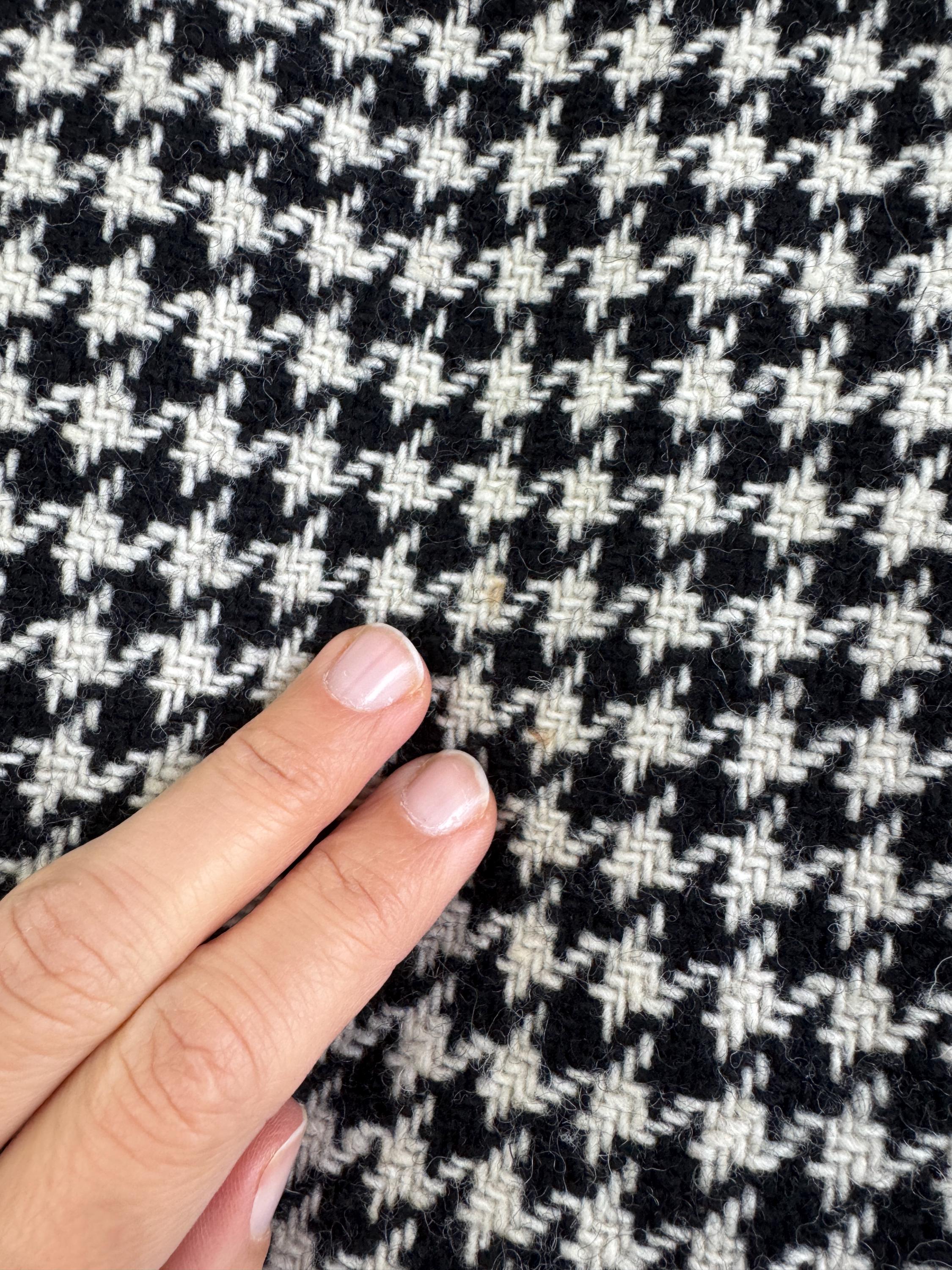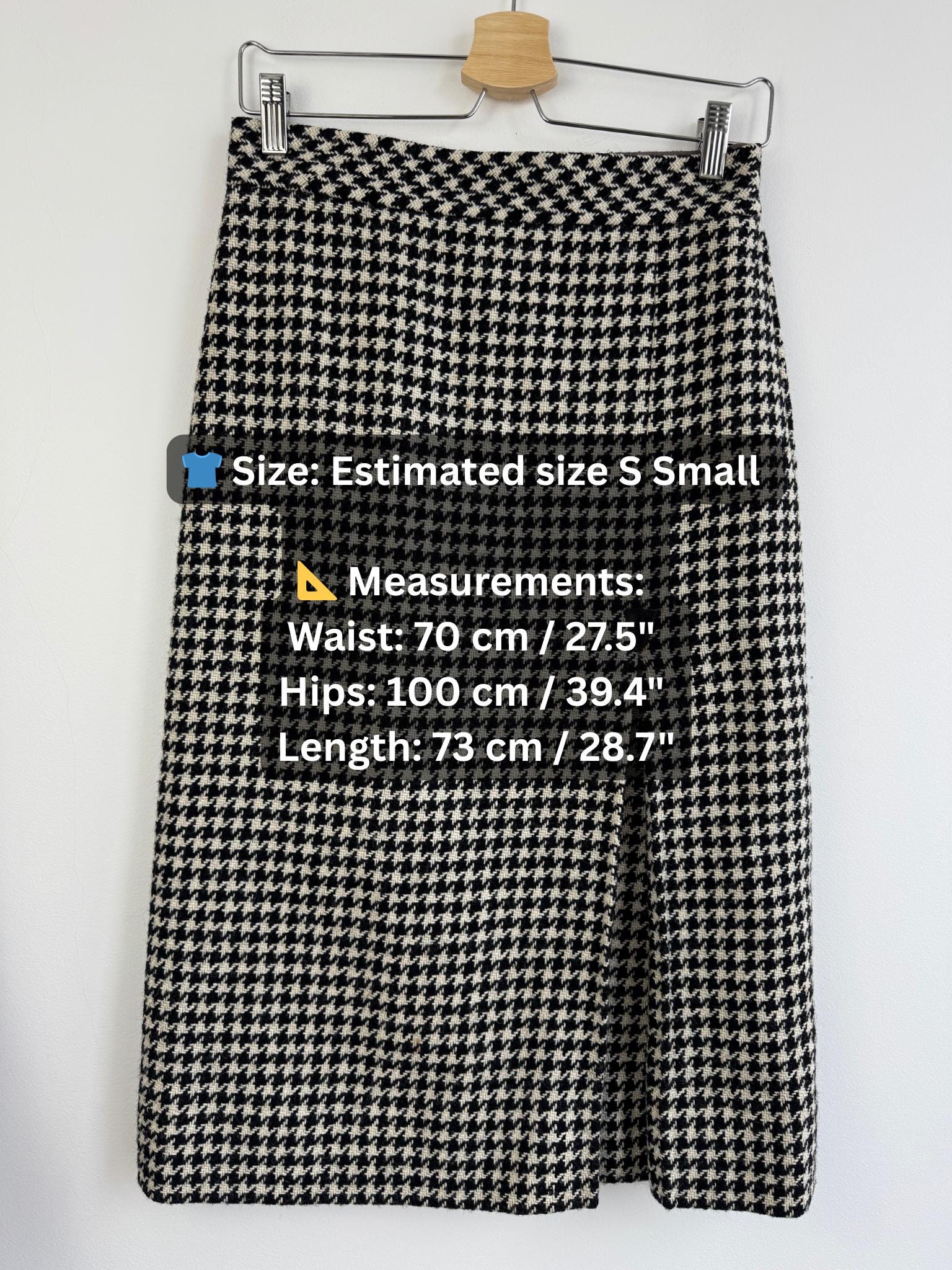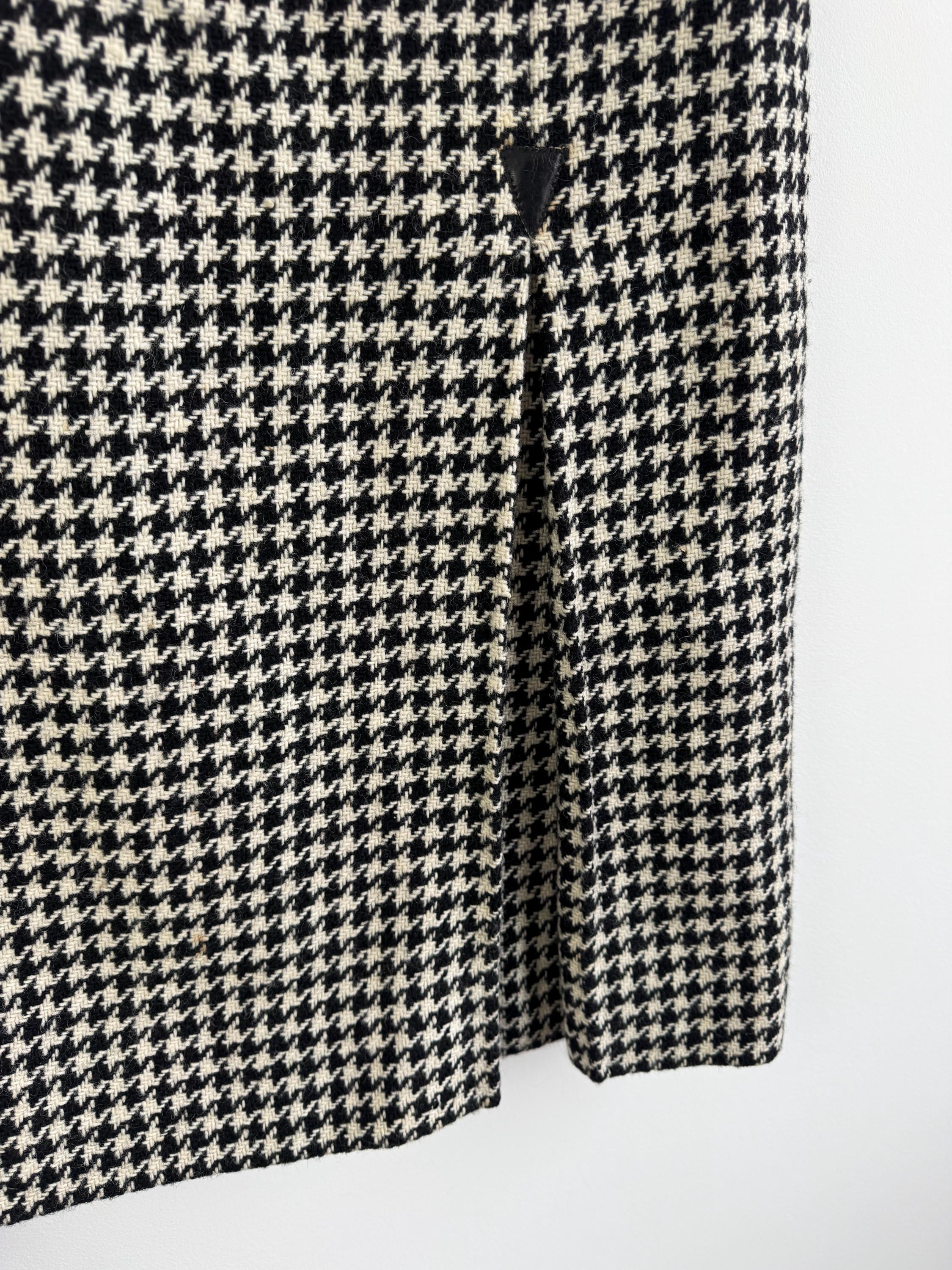 This is a timeless vintage houndstooth midi skirt made of thick wool fabric with lining in size S. Crafted from a substantial wool fabric in a classic black and cream houndstooth weave, this pencil midi skirt offers a sophisticated silhouette that transitions perfectly from the office to a weekend gallery visit.