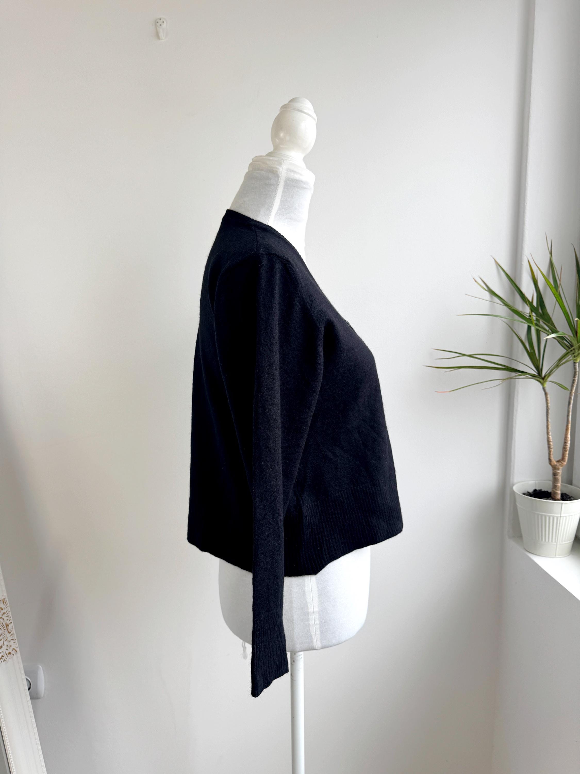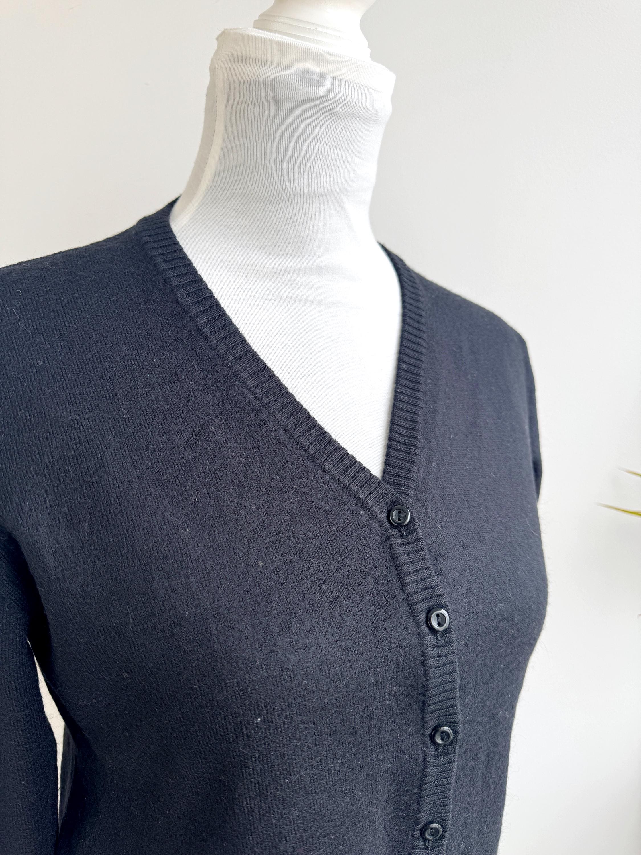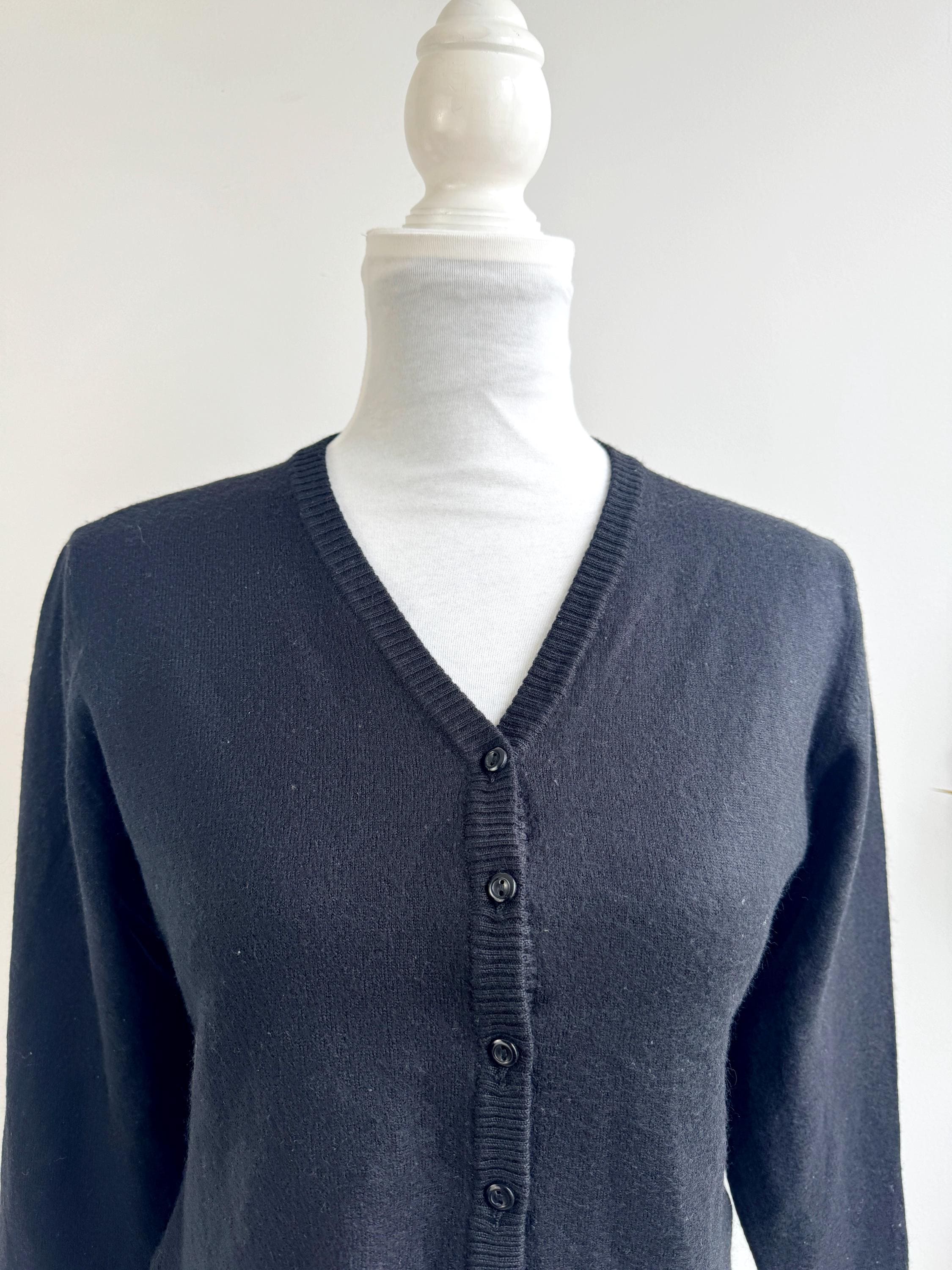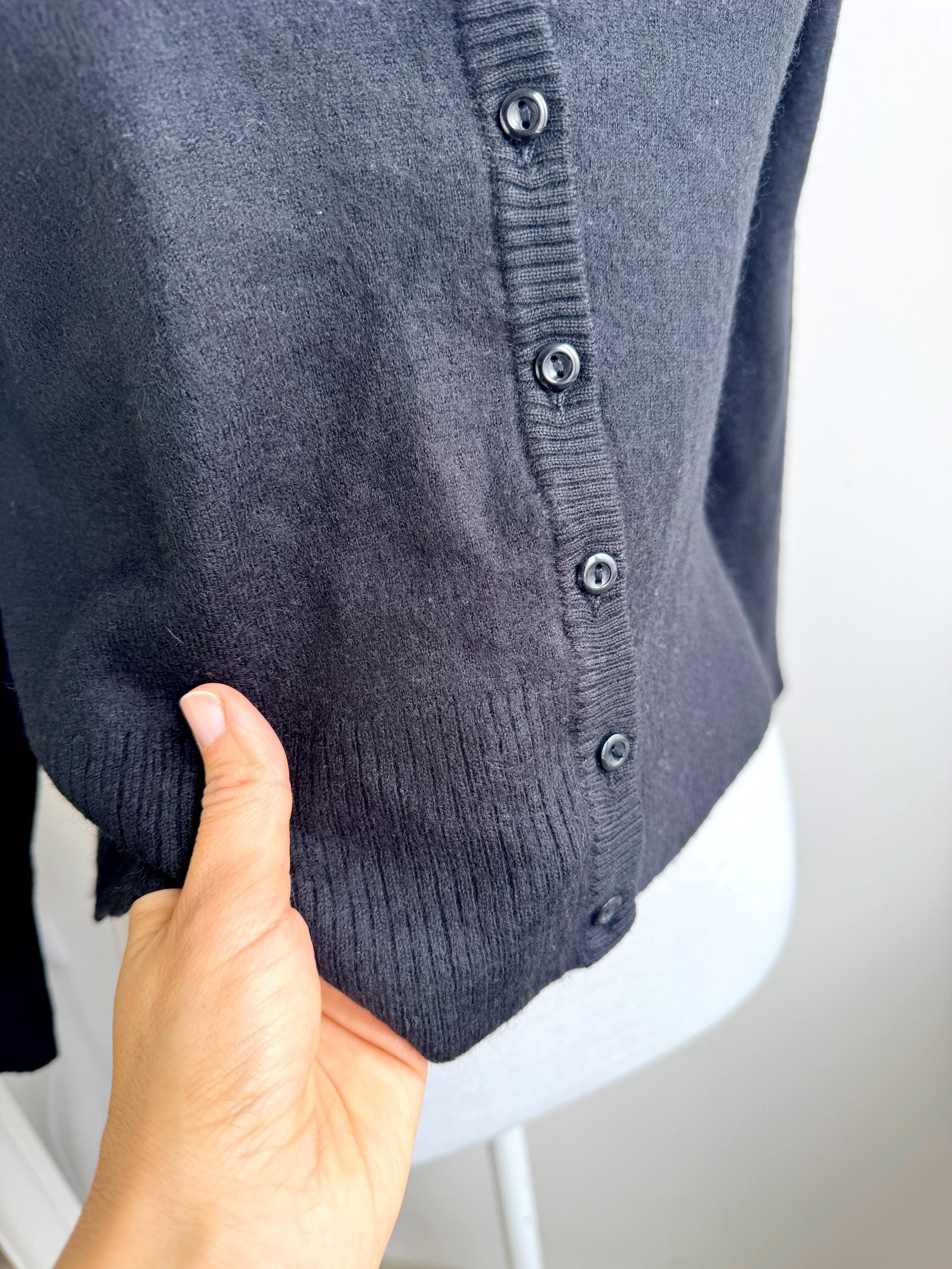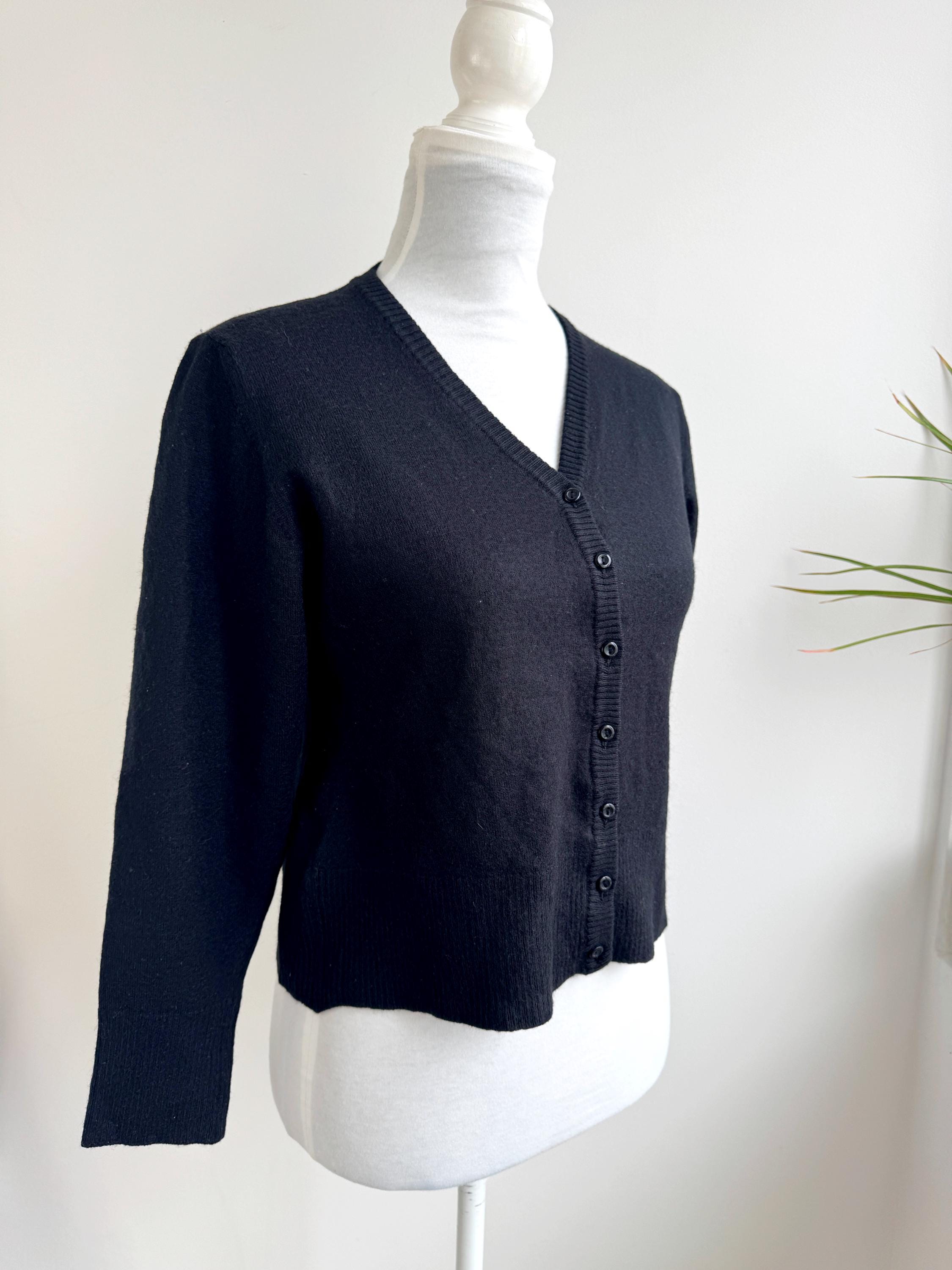 The classic black hue and understated button-down front make this a versatile "capsule wardrobe" essential. Whether you’re channeling a dark academia aesthetic or looking for a sophisticated office layer, this vintage wool cardigan delivers that timeless European quality that modern fast fashion often misses.