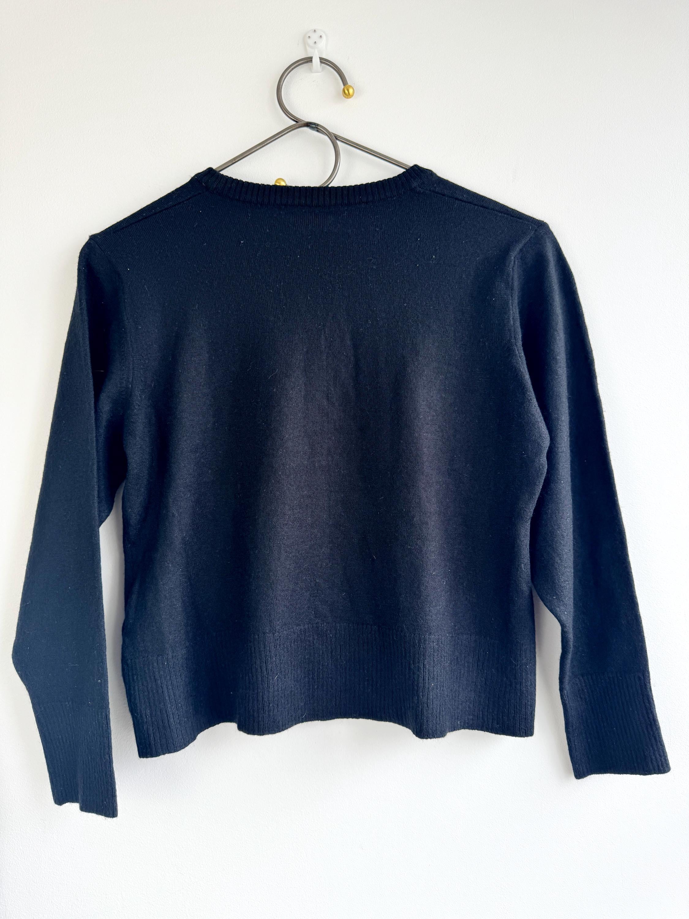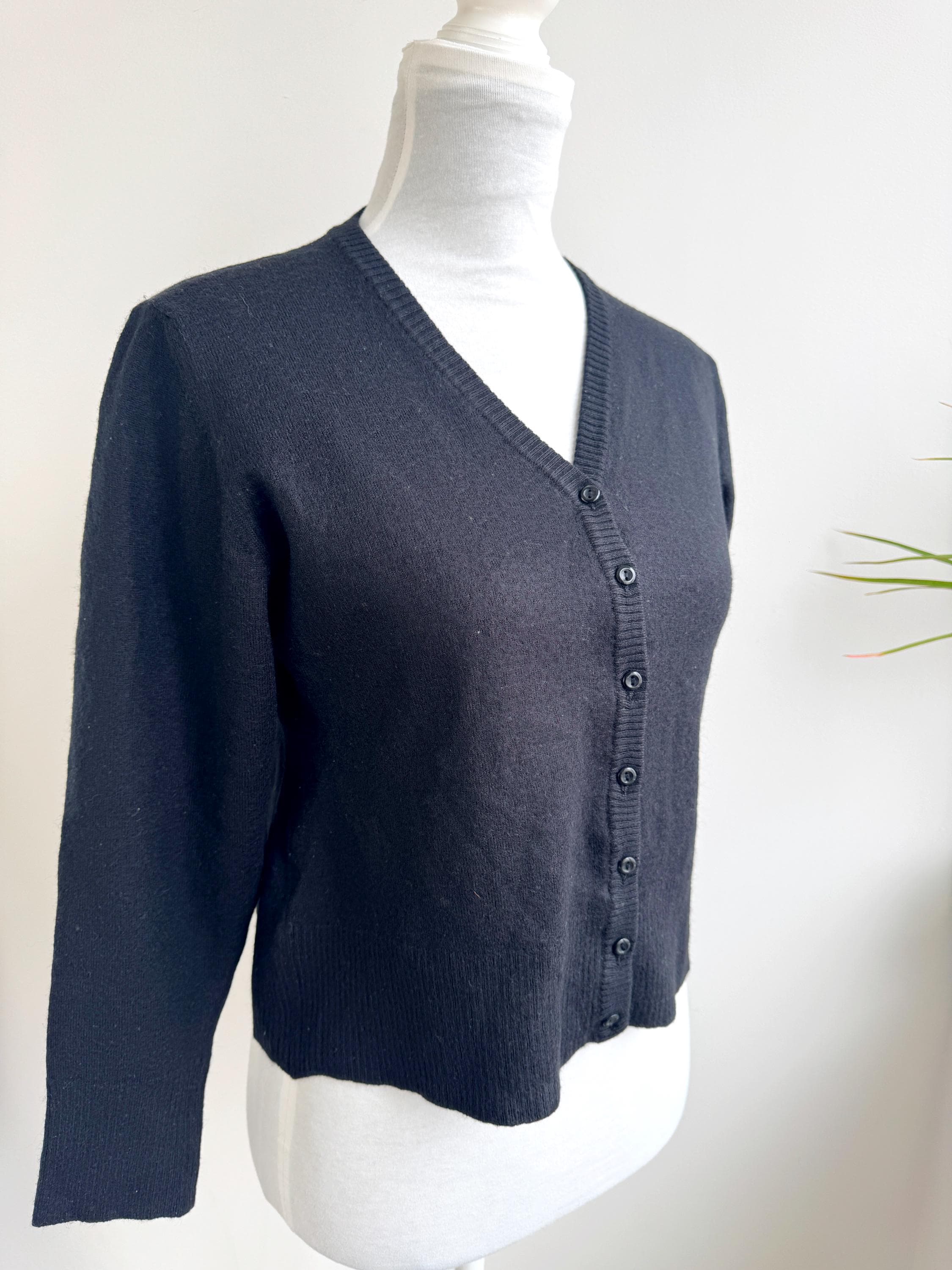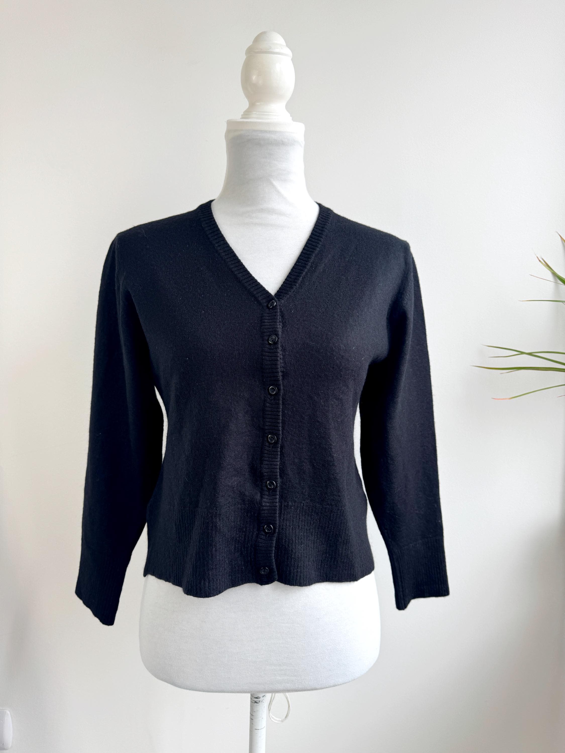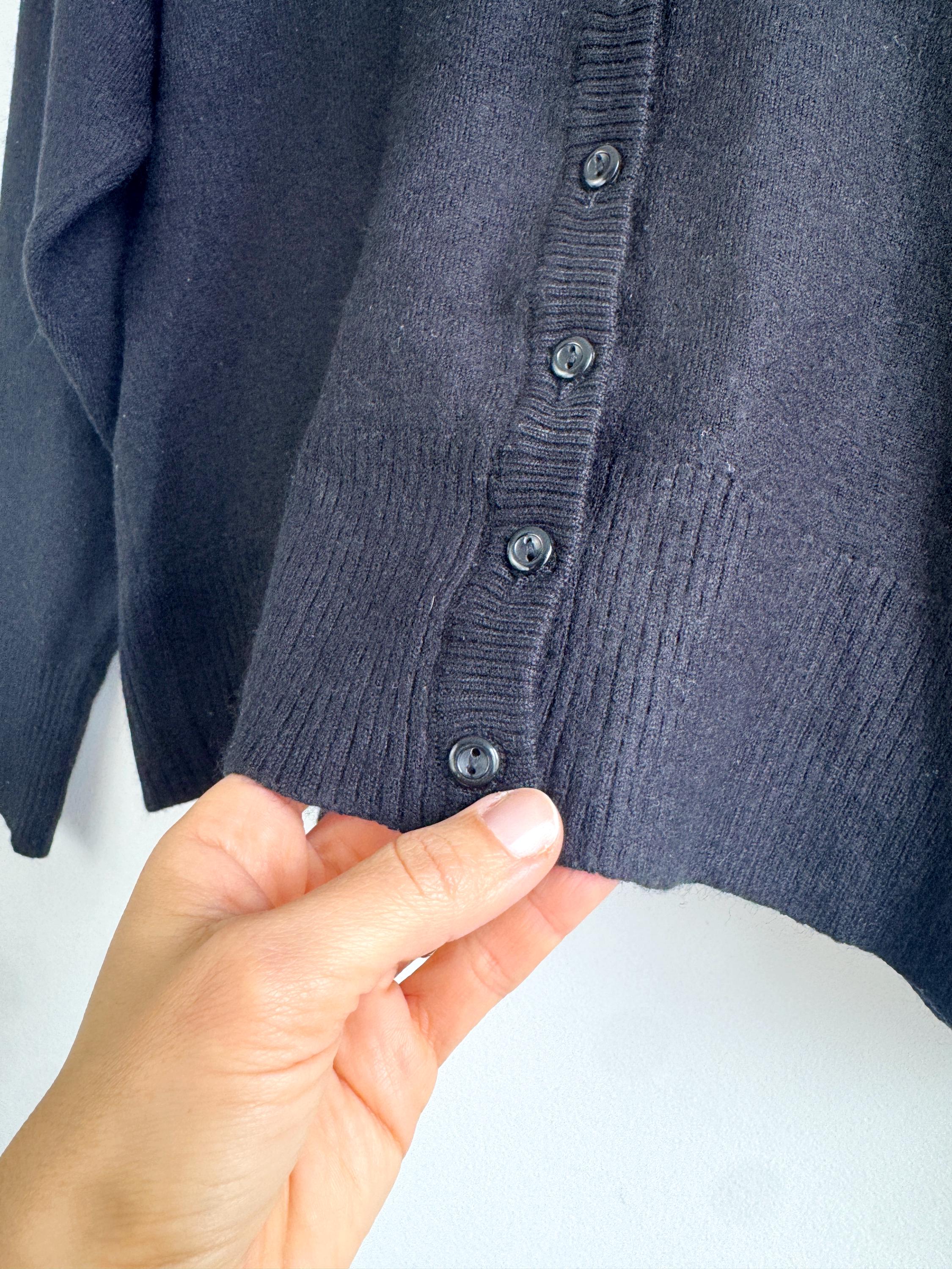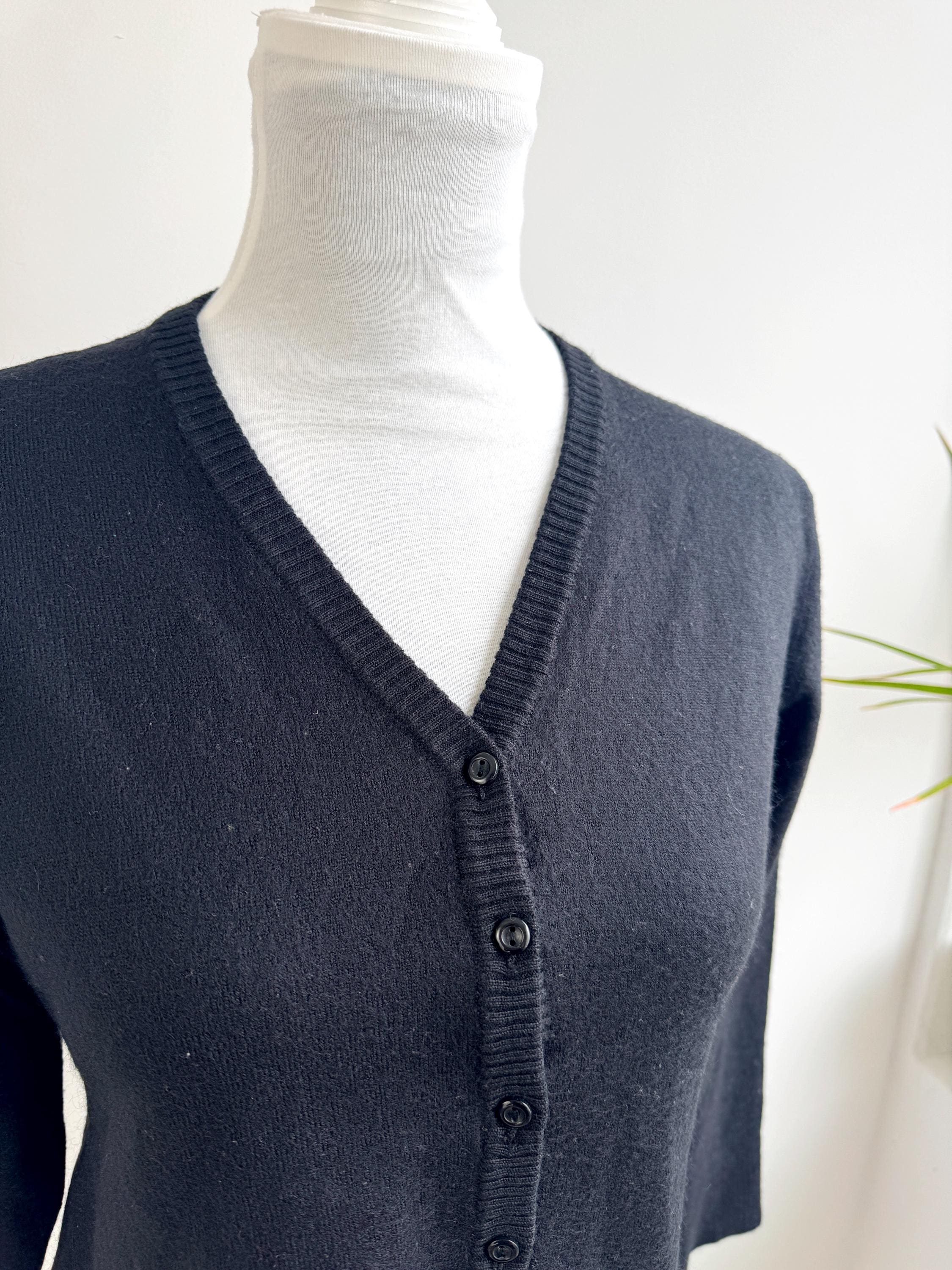 The classic black hue and understated button-down front make this a versatile "capsule wardrobe" essential. Whether you’re channeling a dark academia aesthetic or looking for a sophisticated office layer, this vintage wool cardigan delivers that timeless European quality that modern fast fashion often misses.