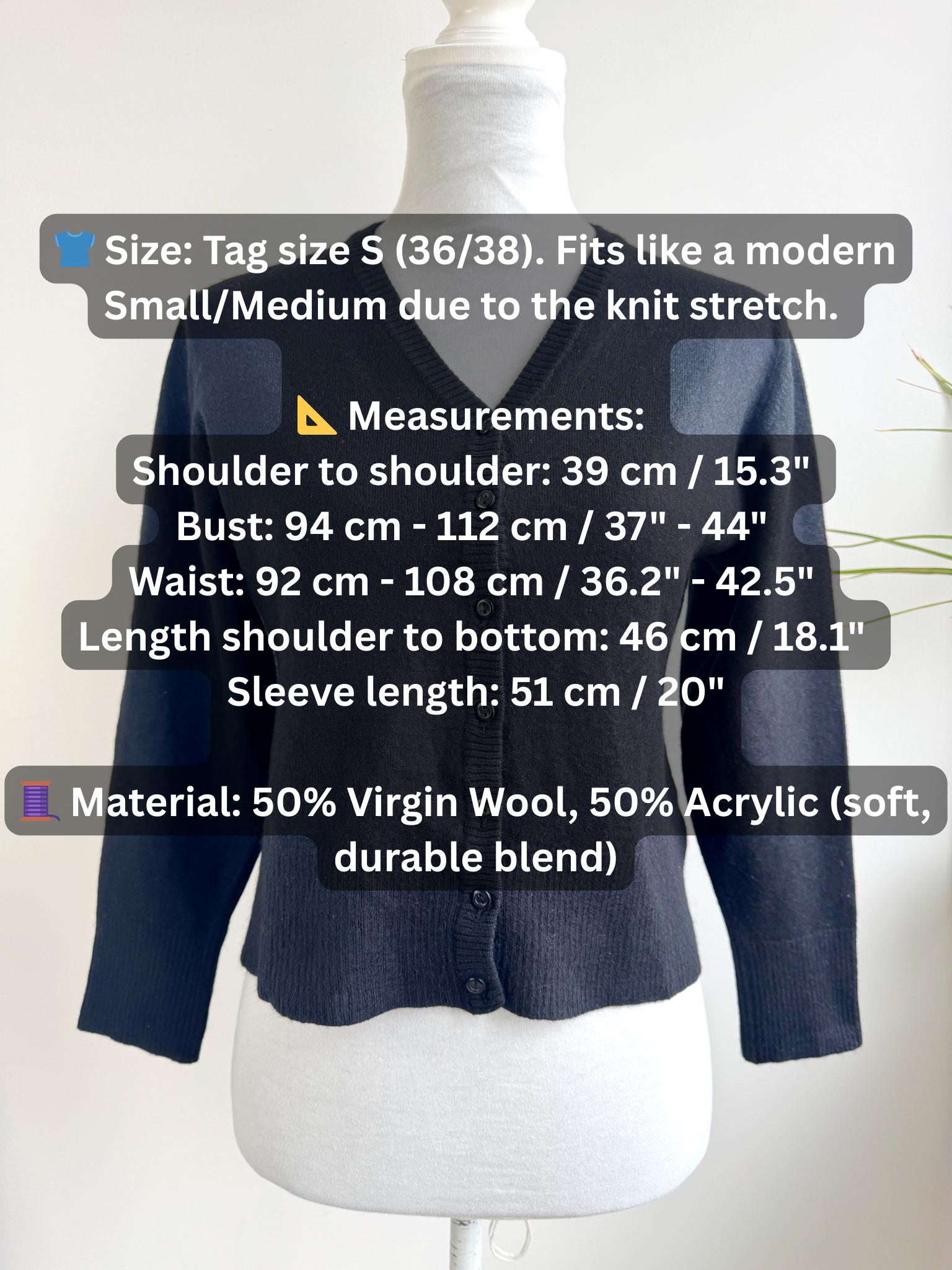 👕 Size: Tag size S (36/38). Fits like a modern Small/Medium due to the knit stretch. Please refer to measurements.