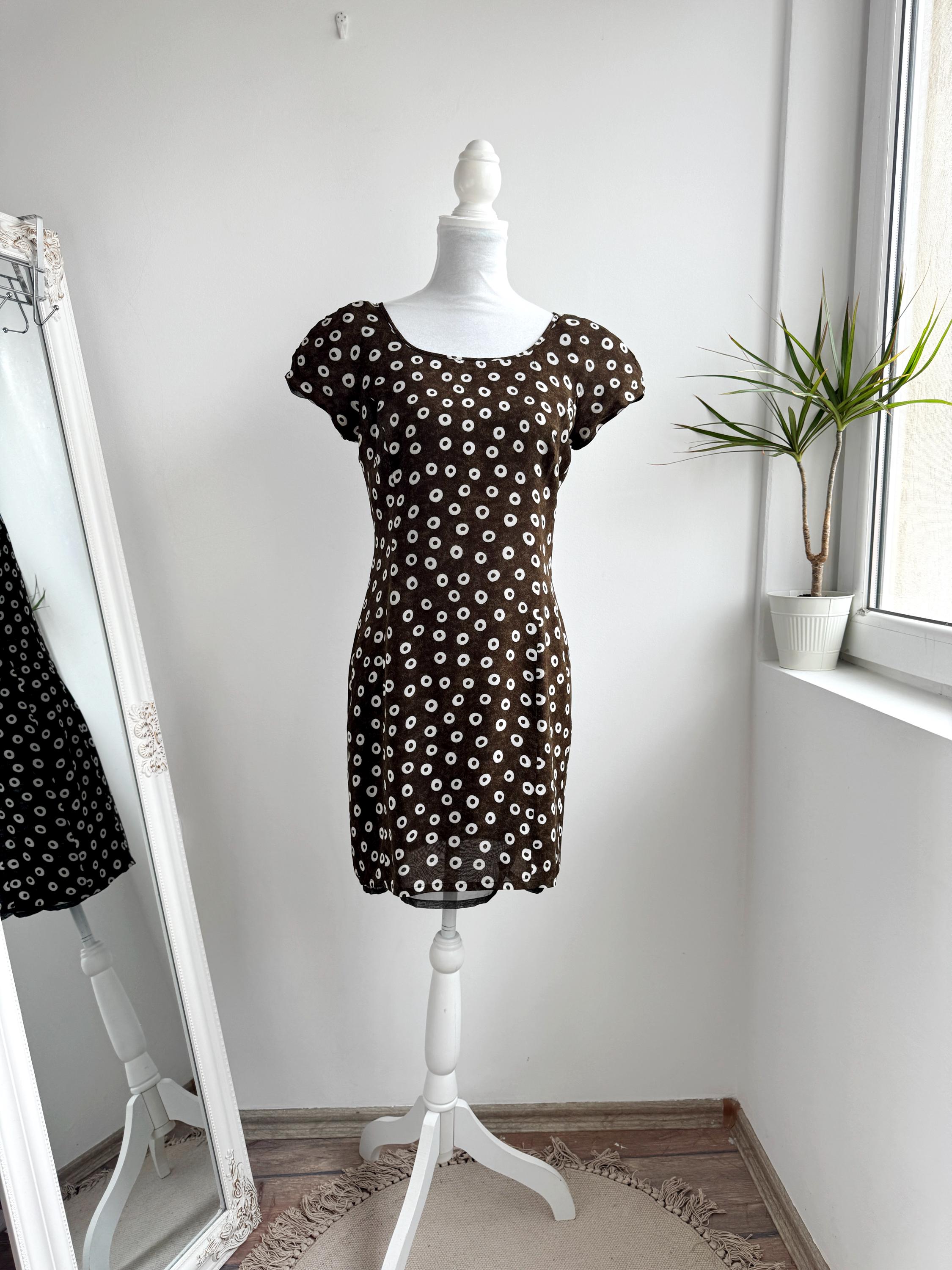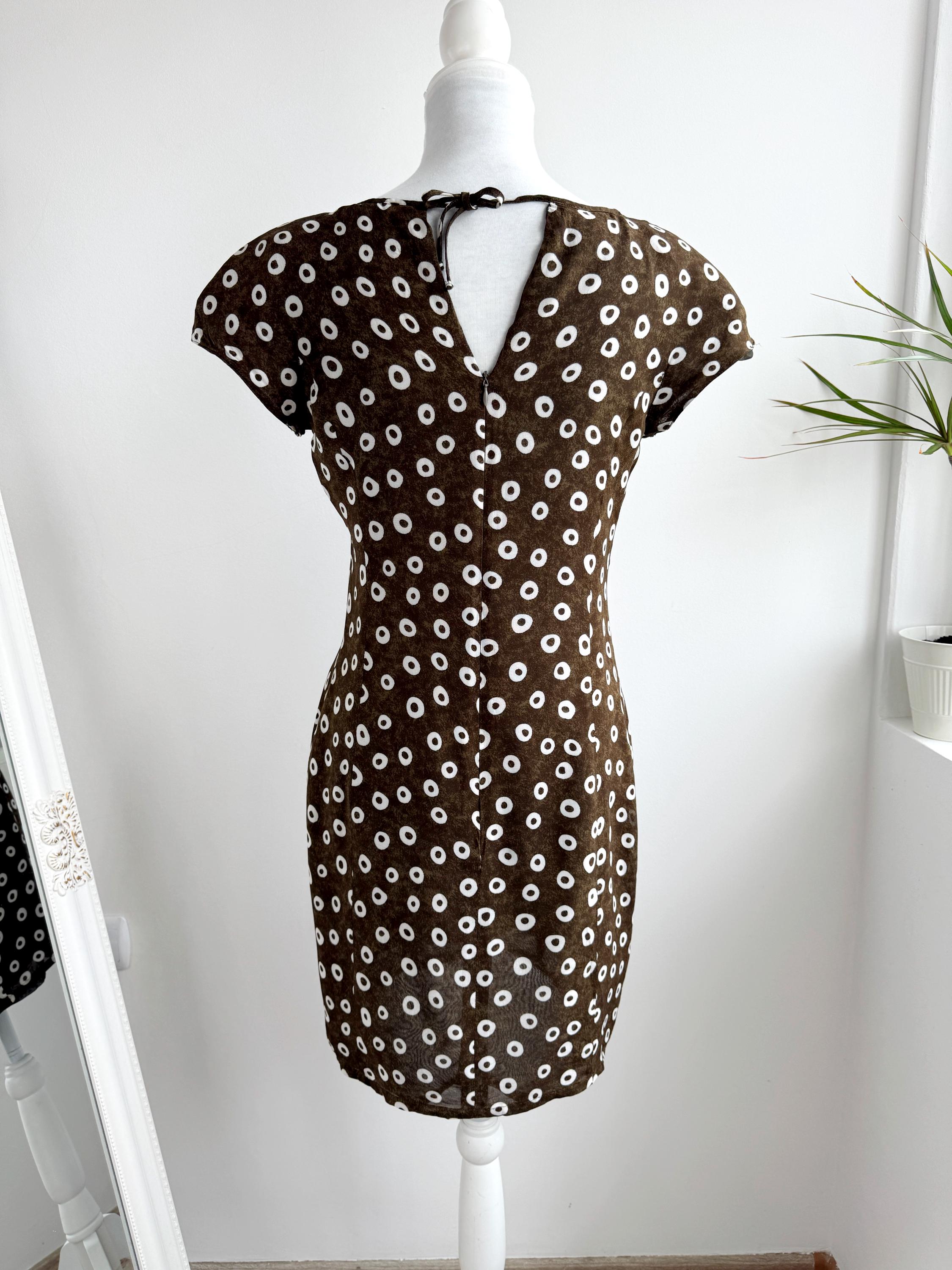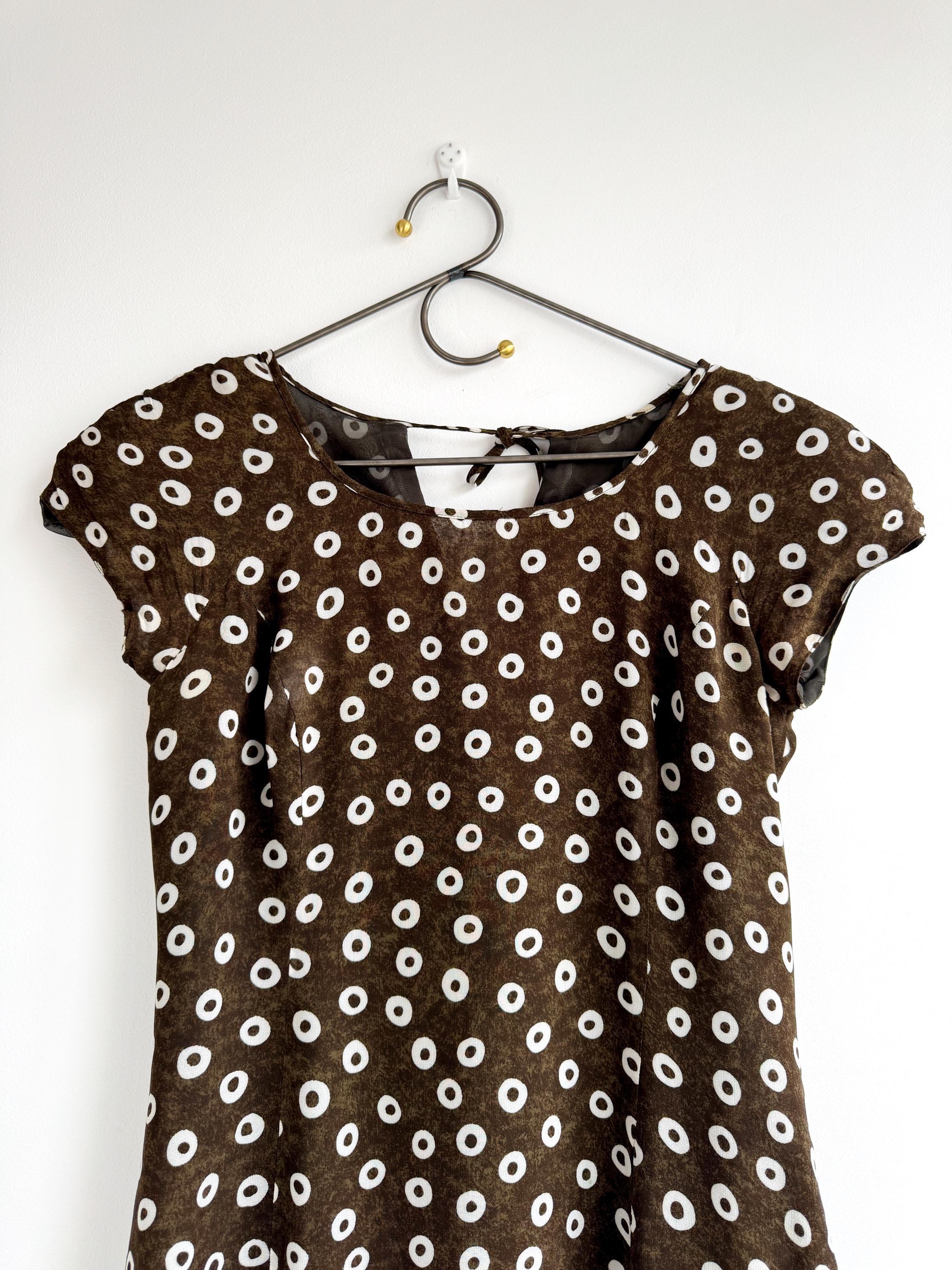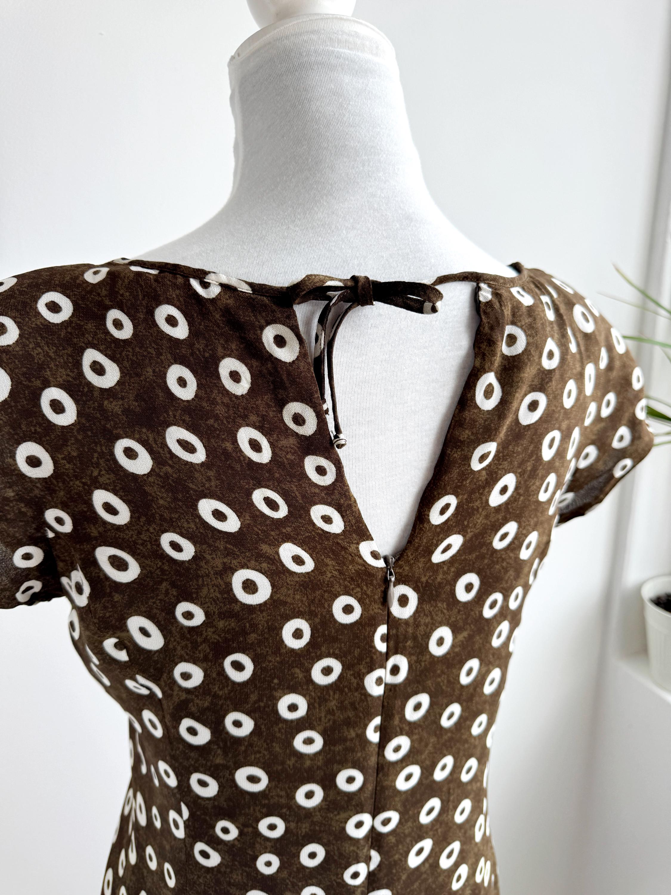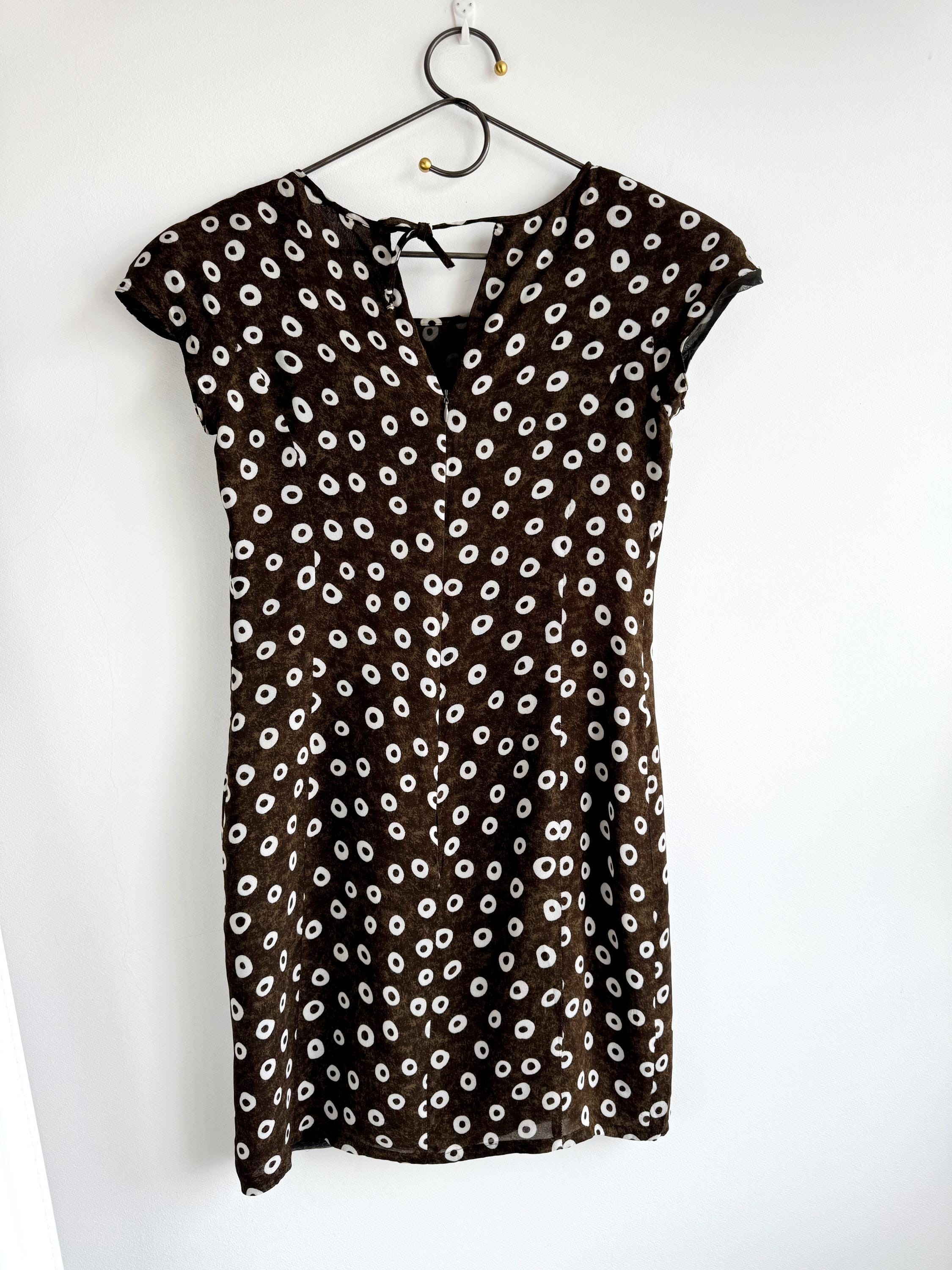 Add a touch of Italian chic to your wardrobe with this stunning vintage L'Equipe shift dress. Made in Italy, this deep olive green dress is crafted from a lightweight, polyester fabric that drapes beautifully. The sophisticated olive green tone paired with the repeating white circle motif creates a timeless retro aesthetic. Designed with a classic scoop neck and a discreet back zipper for a tailored fit, it's a versatile retro style shift dress that pairs perfectly with boots for a mod look or sleek heels for a contemporary ensemble.