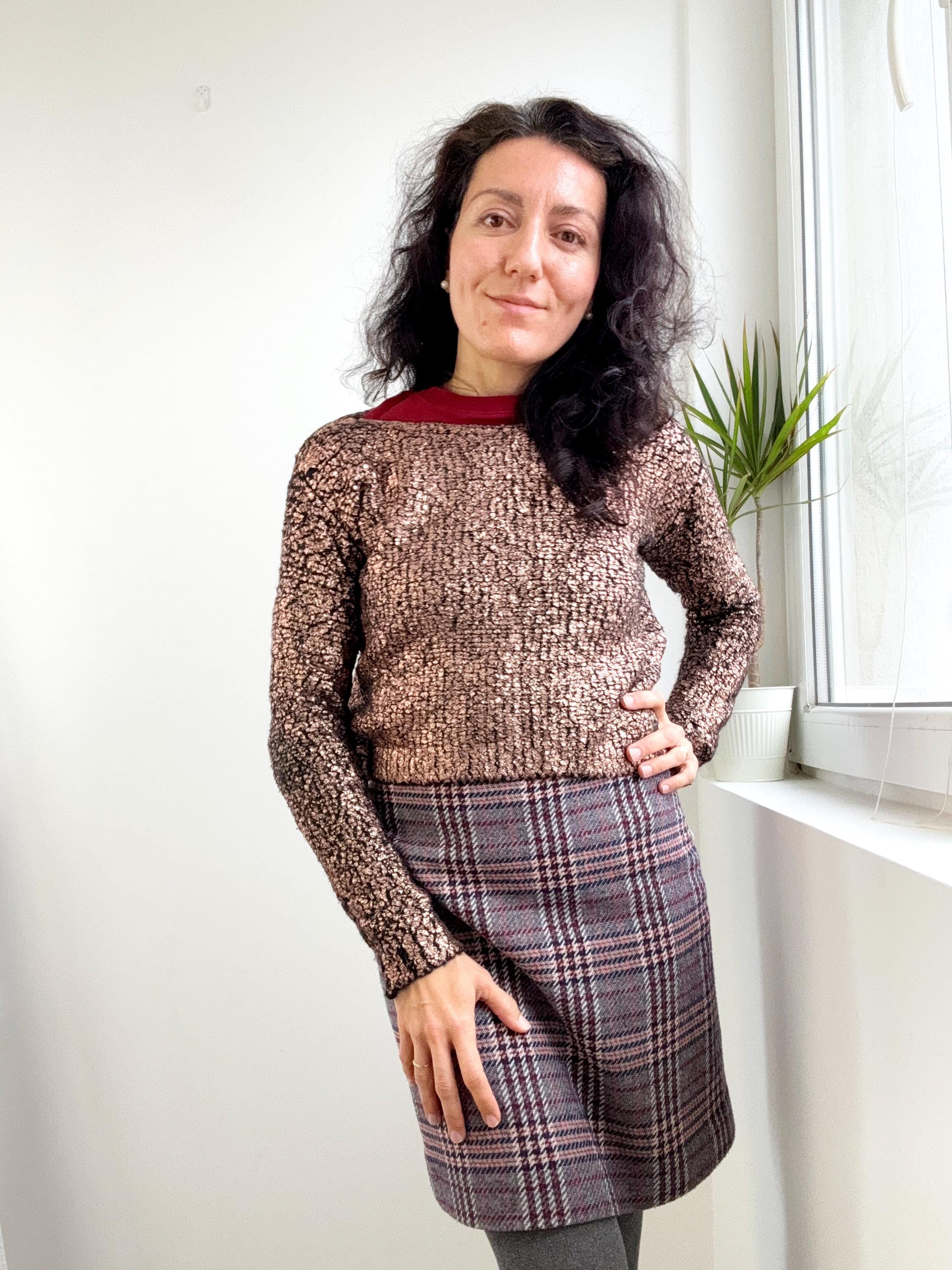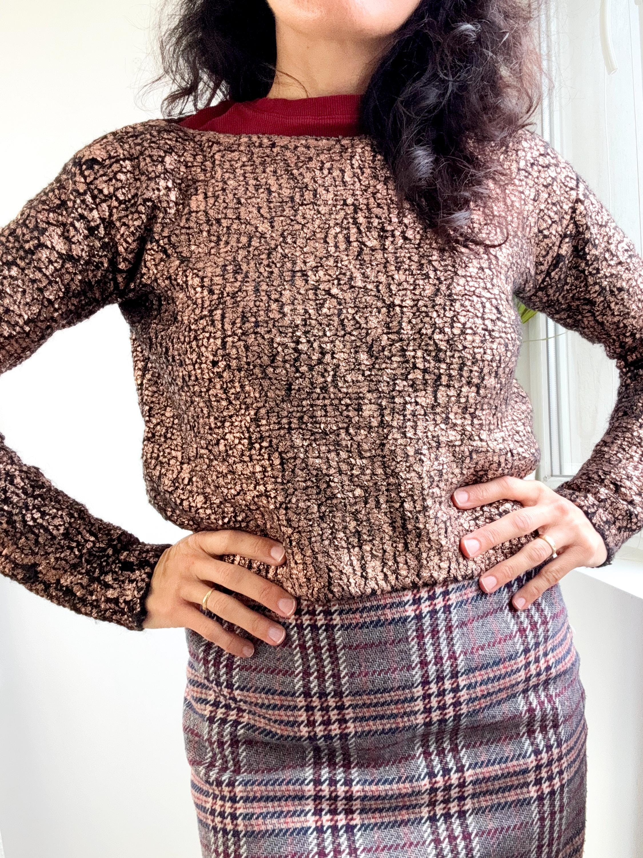 👕 Size: Tagged Size S (Has stretch, please check measurements). I am modelling the sweater, I wear size S, US 6, EUR 36, UK 10