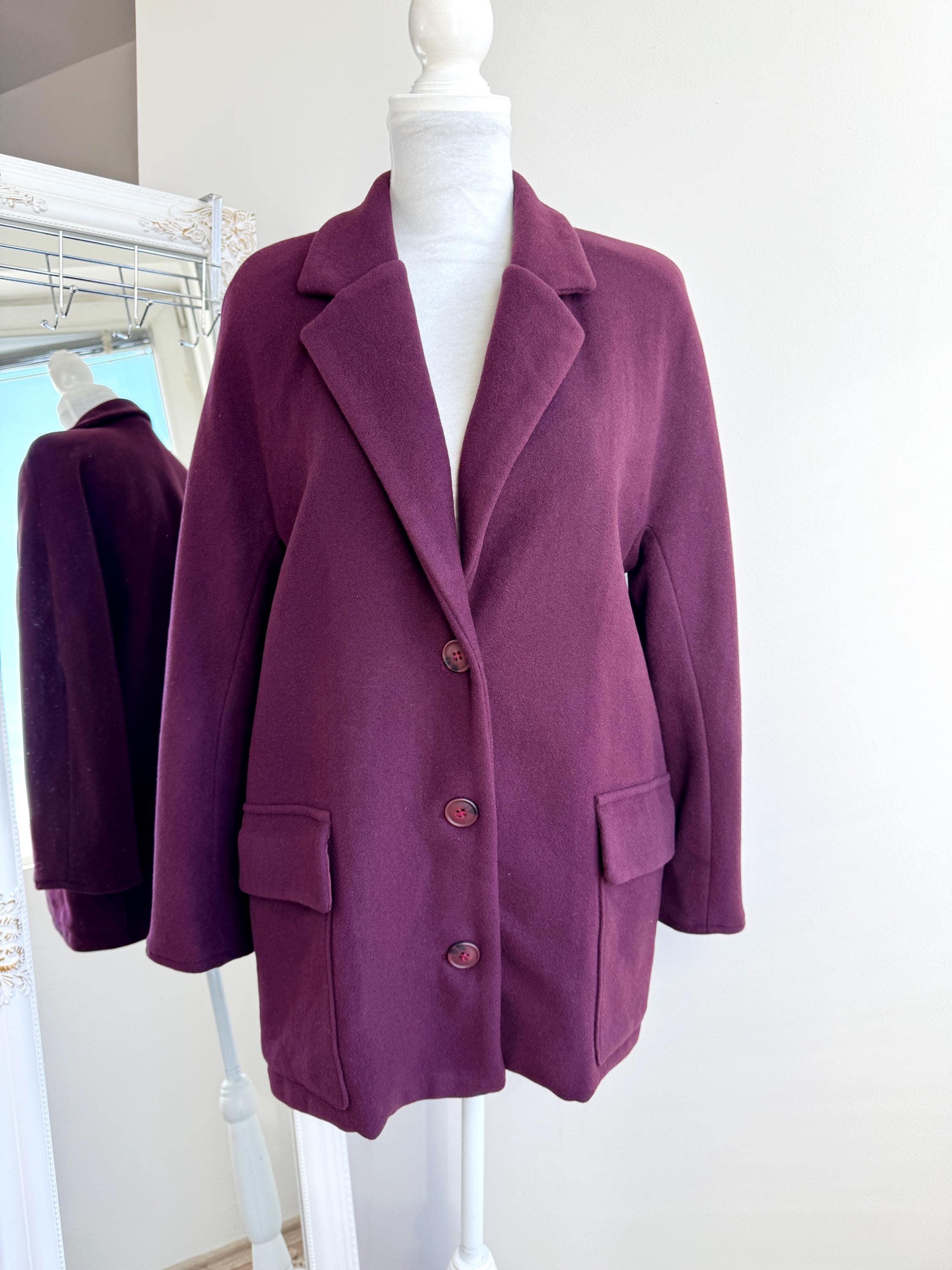 👕 Size: Tagged 44 (IT), fits like a modern Large or Oversized Medium. Please check measurements below. I am modelling the coat, I normally wear size small S/ EUR 36 / US 6 / UK 10
