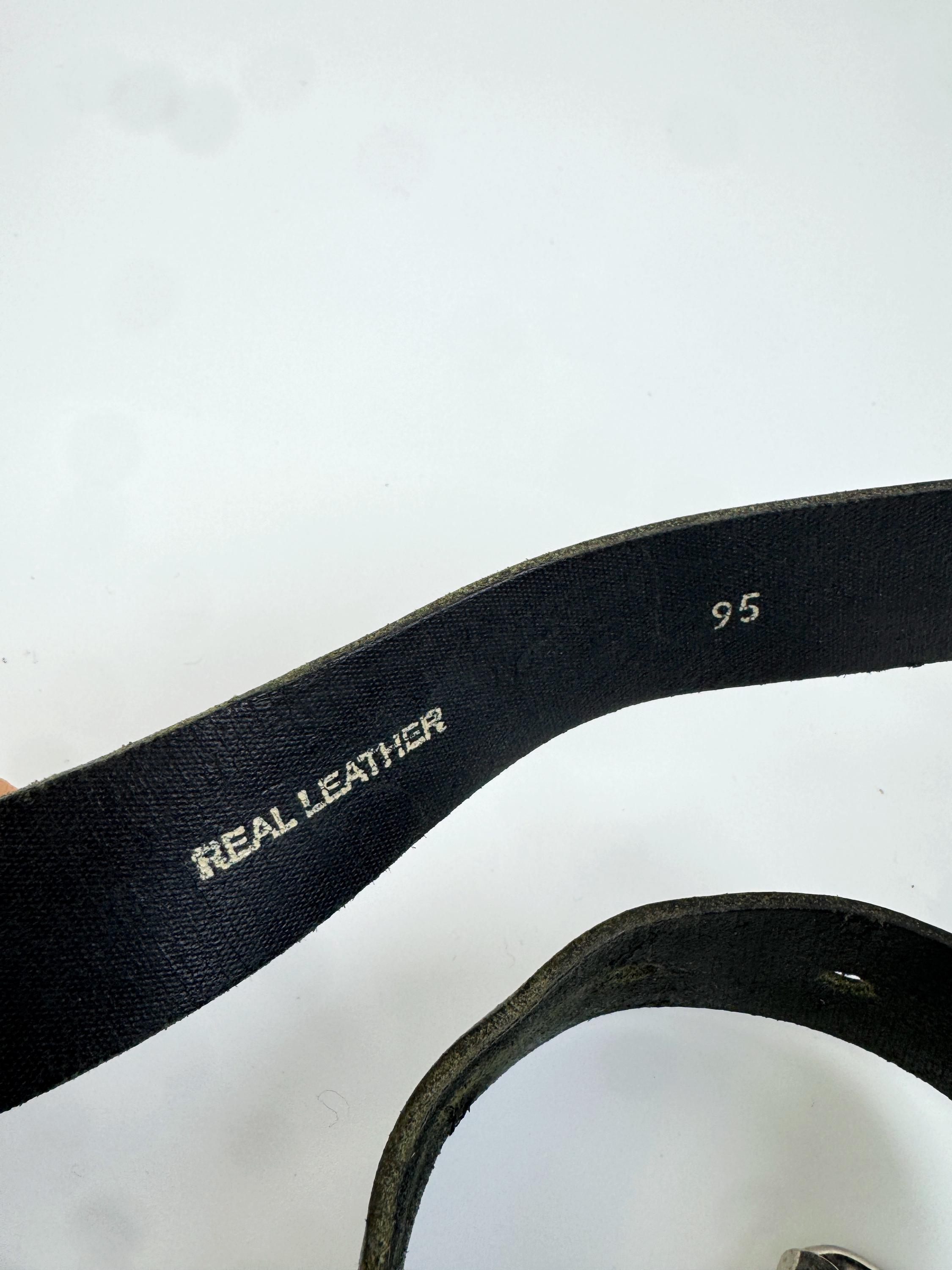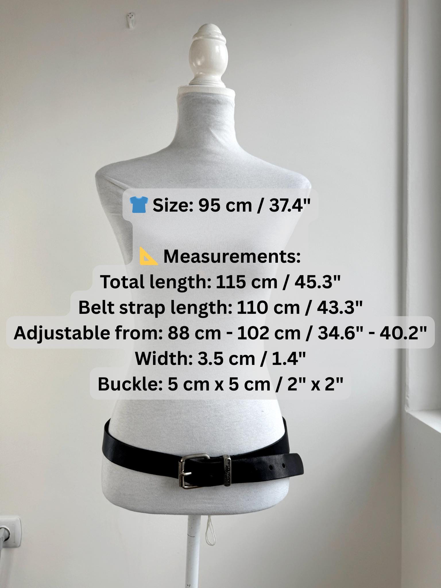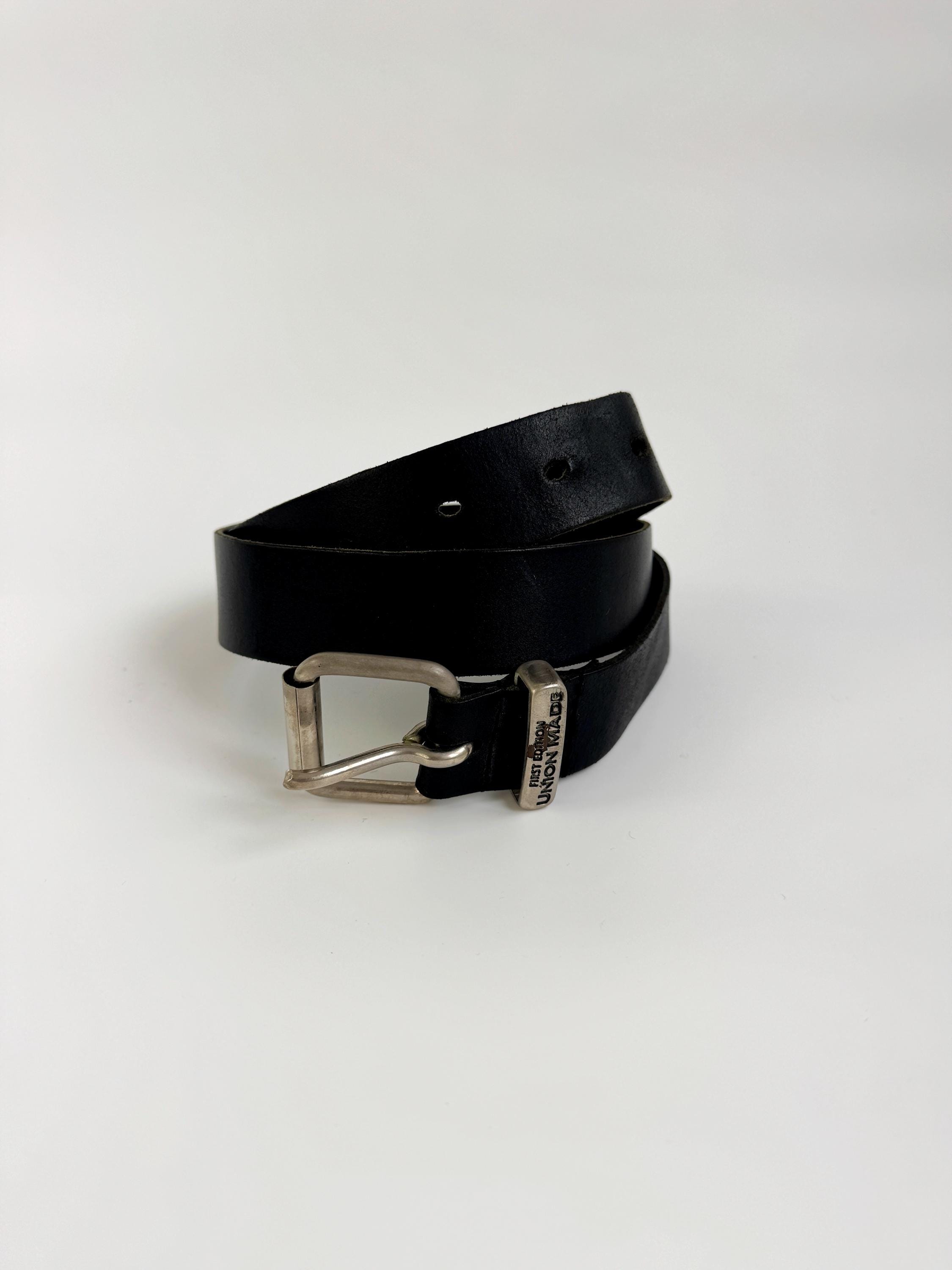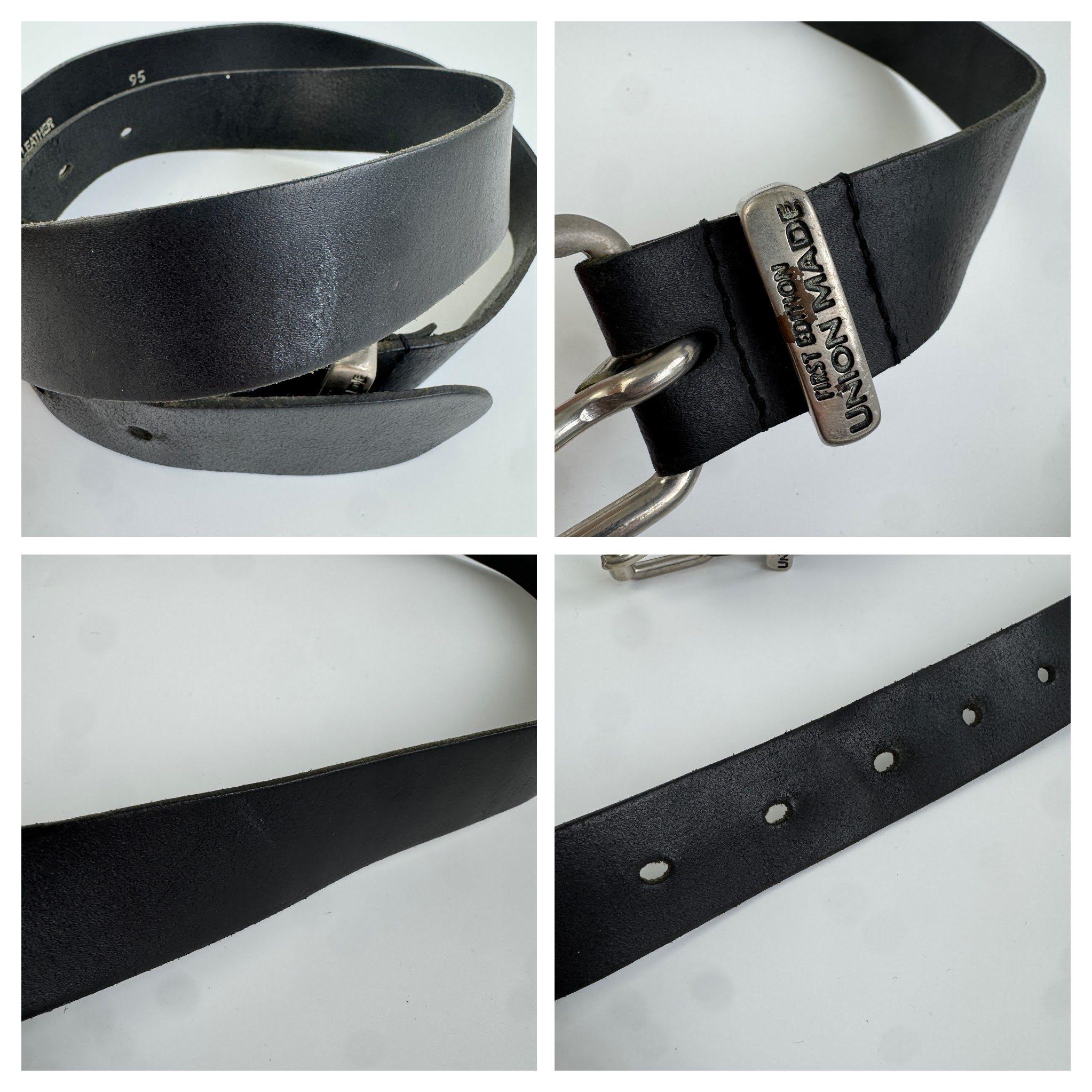 This vintage 90s black leather belt is a quintessential wardrobe staple that balances rugged durability with a timeless, minimalist aesthetic. Crafted from thick, high-quality real leather, this black waist belt features a heavy-duty silver-tone buckle and a distinctive "First Edition Union Made" metal buckle. Whether you’re cinching a pair of classic denim jeans or layering it over a flowy boho dress, this real leather belt offers that coveted "lived-in" vintage character.