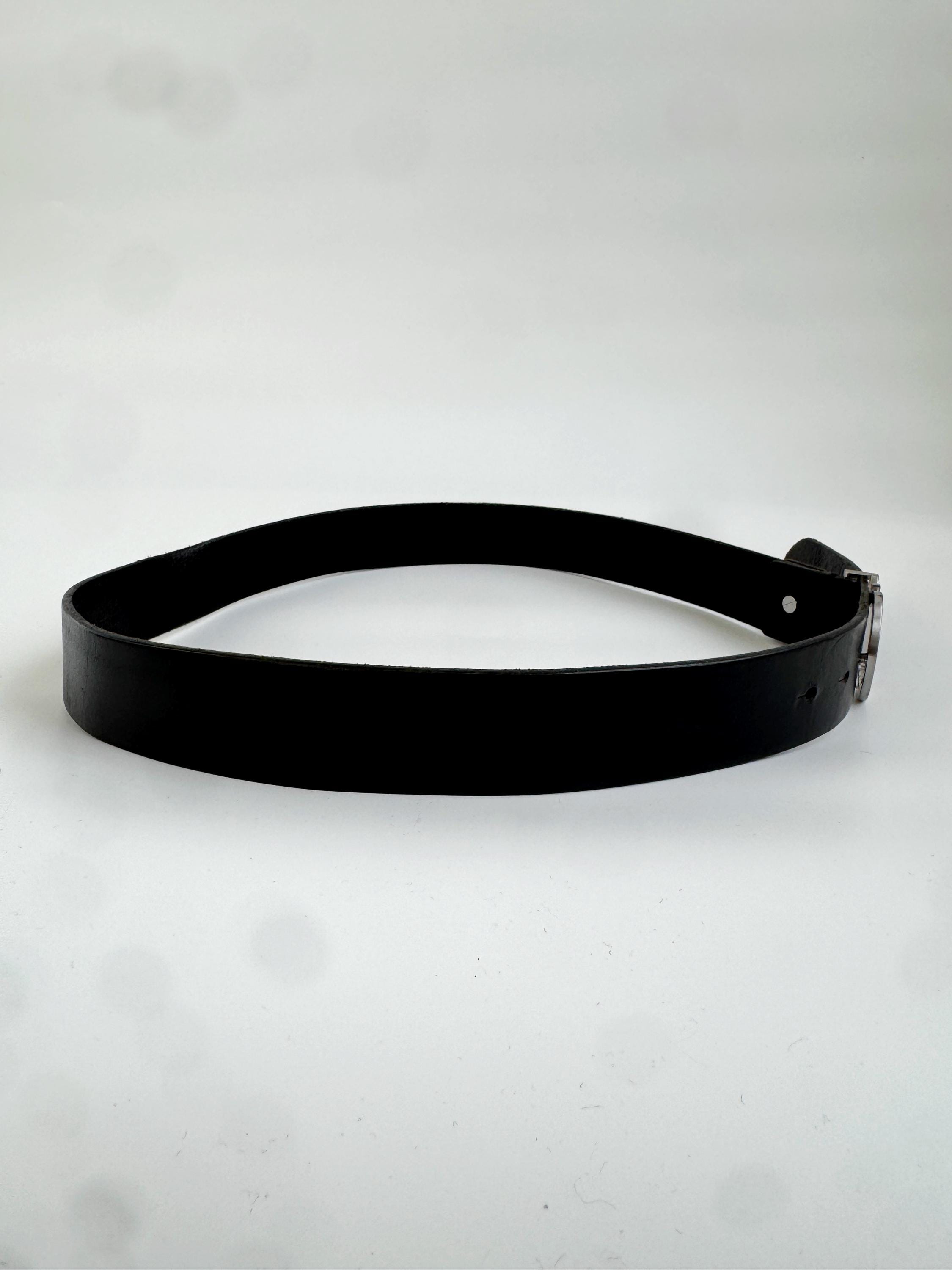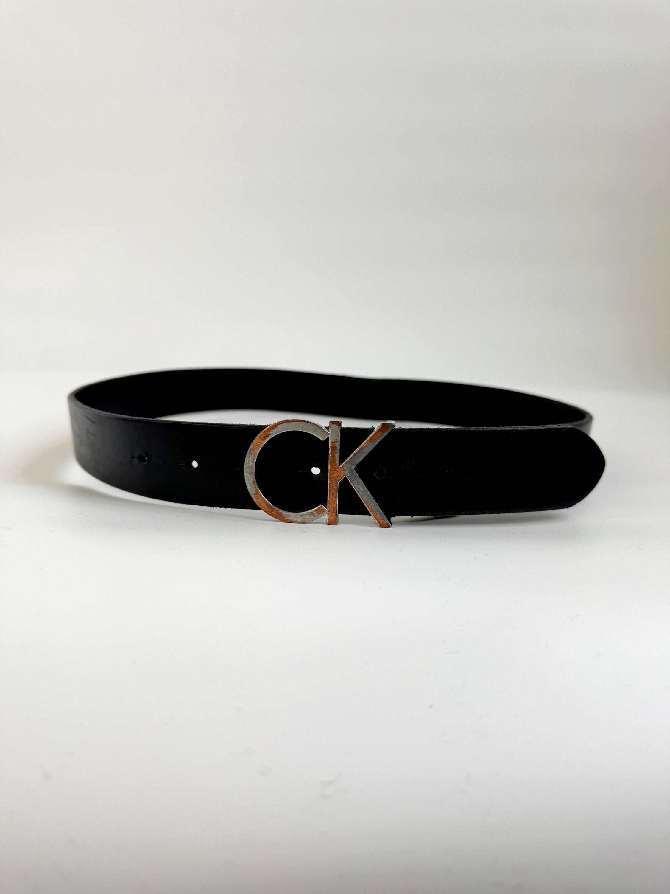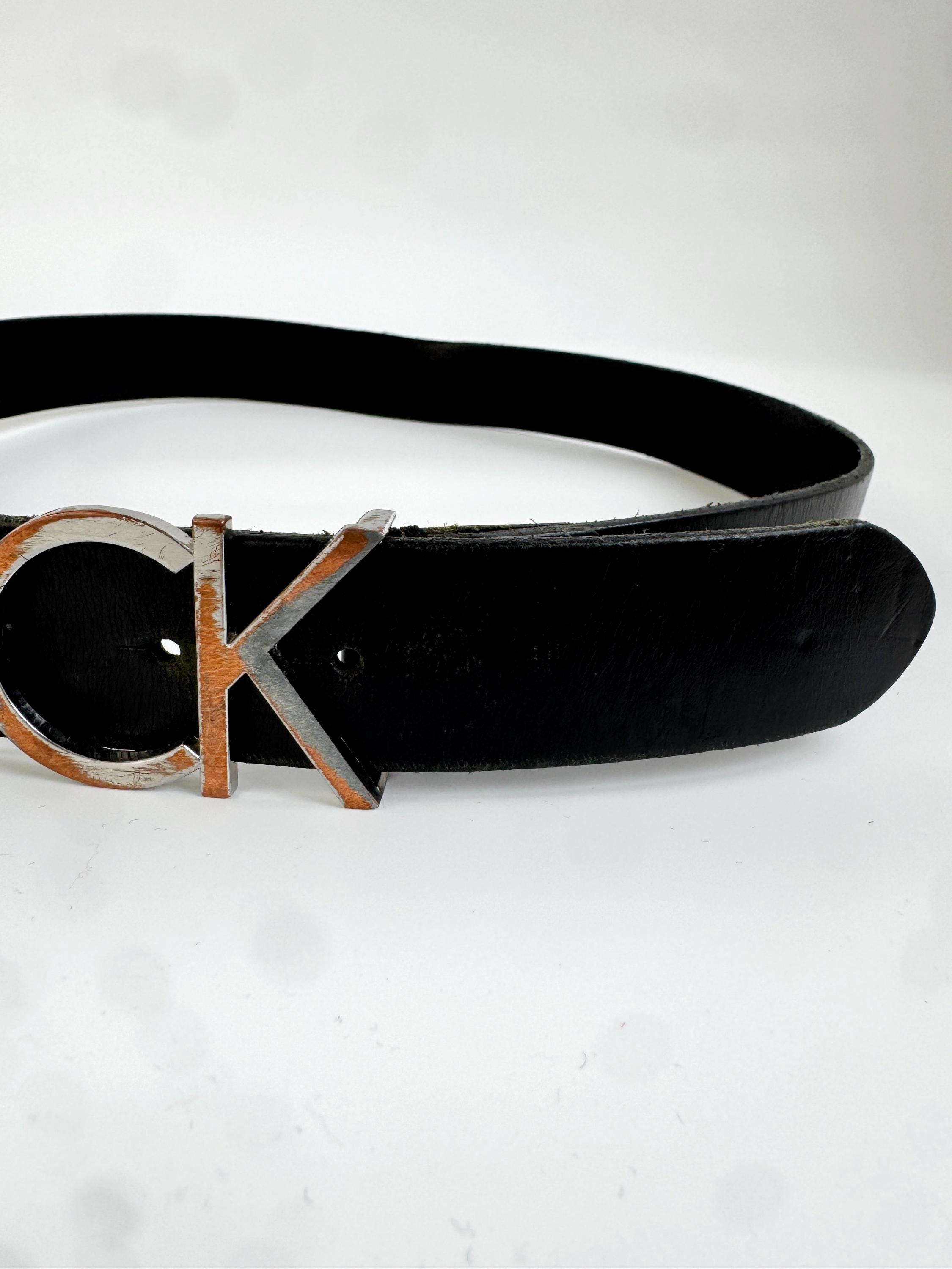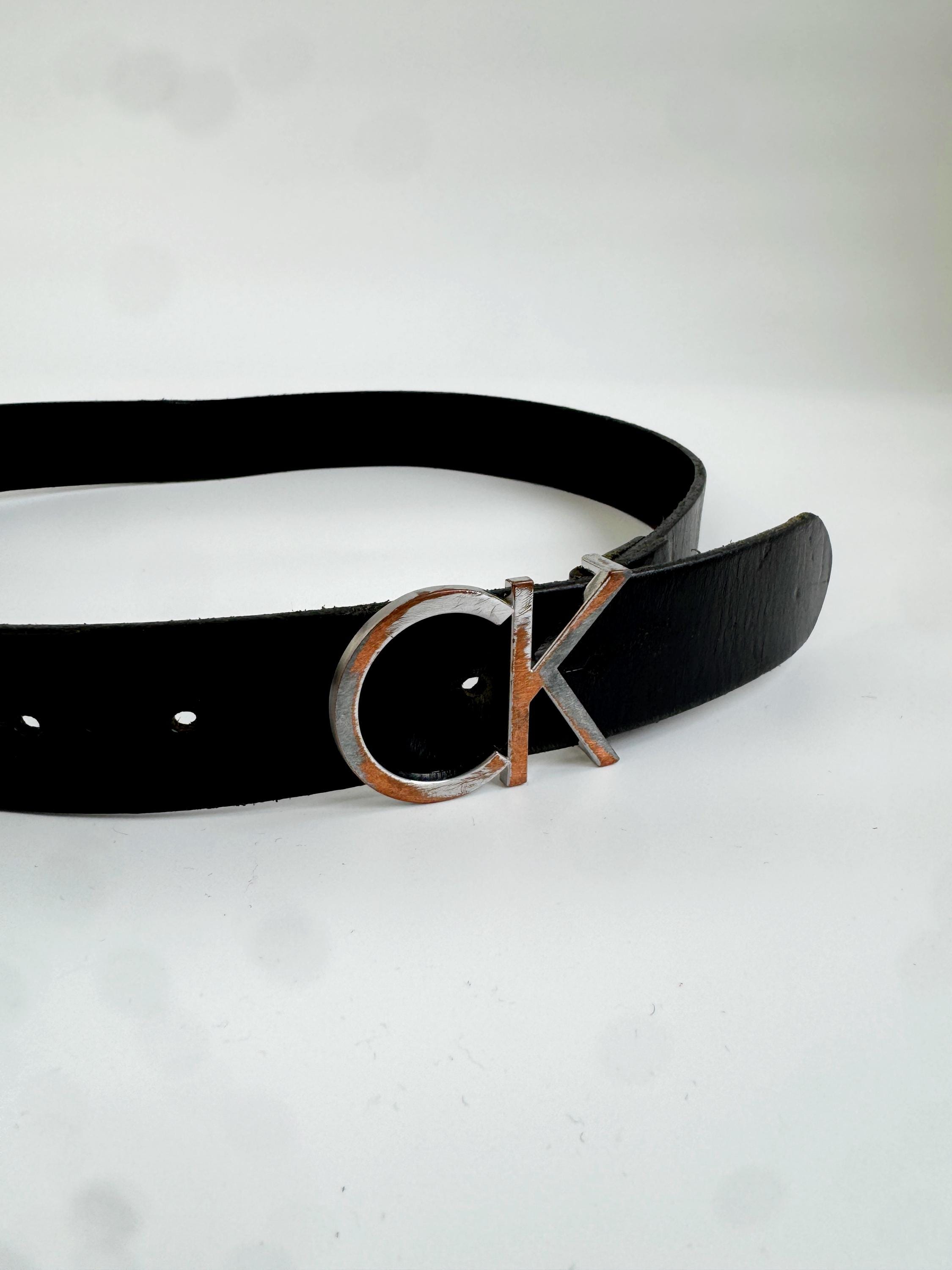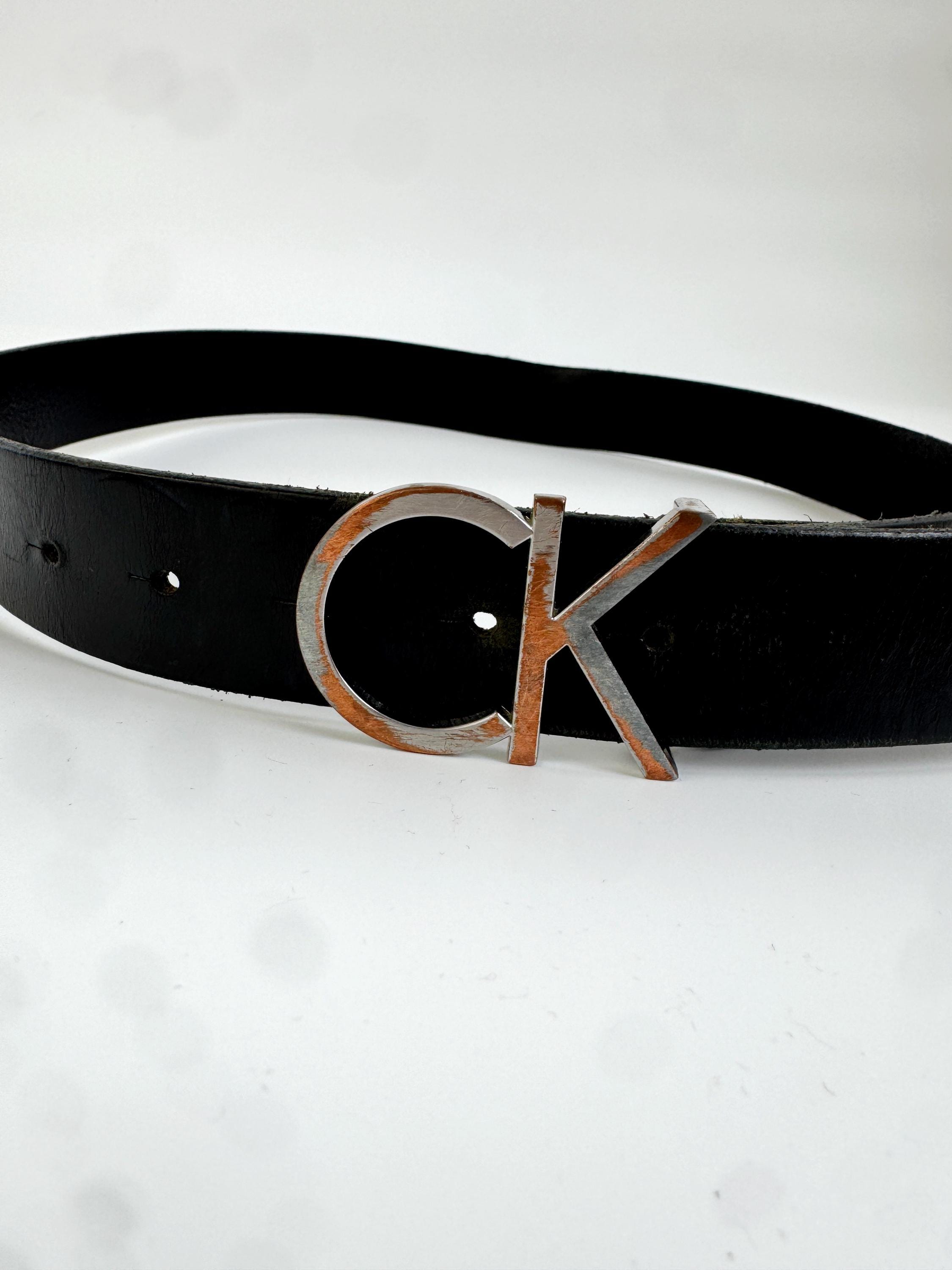 This is a vintage Calvin Klein black leather belt in size 85 cm / 34" - a quintessential 90s statement piece that effortlessly blends minimalism with bold branding. Crafted from high-quality genuine leather in Romania, this black waist belt features the iconic oversized "CK" monogram buckle. The metal hardware has developed a unique, distressed patina over time, giving it a rugged, industrial edge that perfectly complements the sleek black leather strap. Whether you’re cinching a pair of high-waisted vintage denim or adding a designer touch to a modern oversized blazer, this real leather belt will be the perfect choise.
