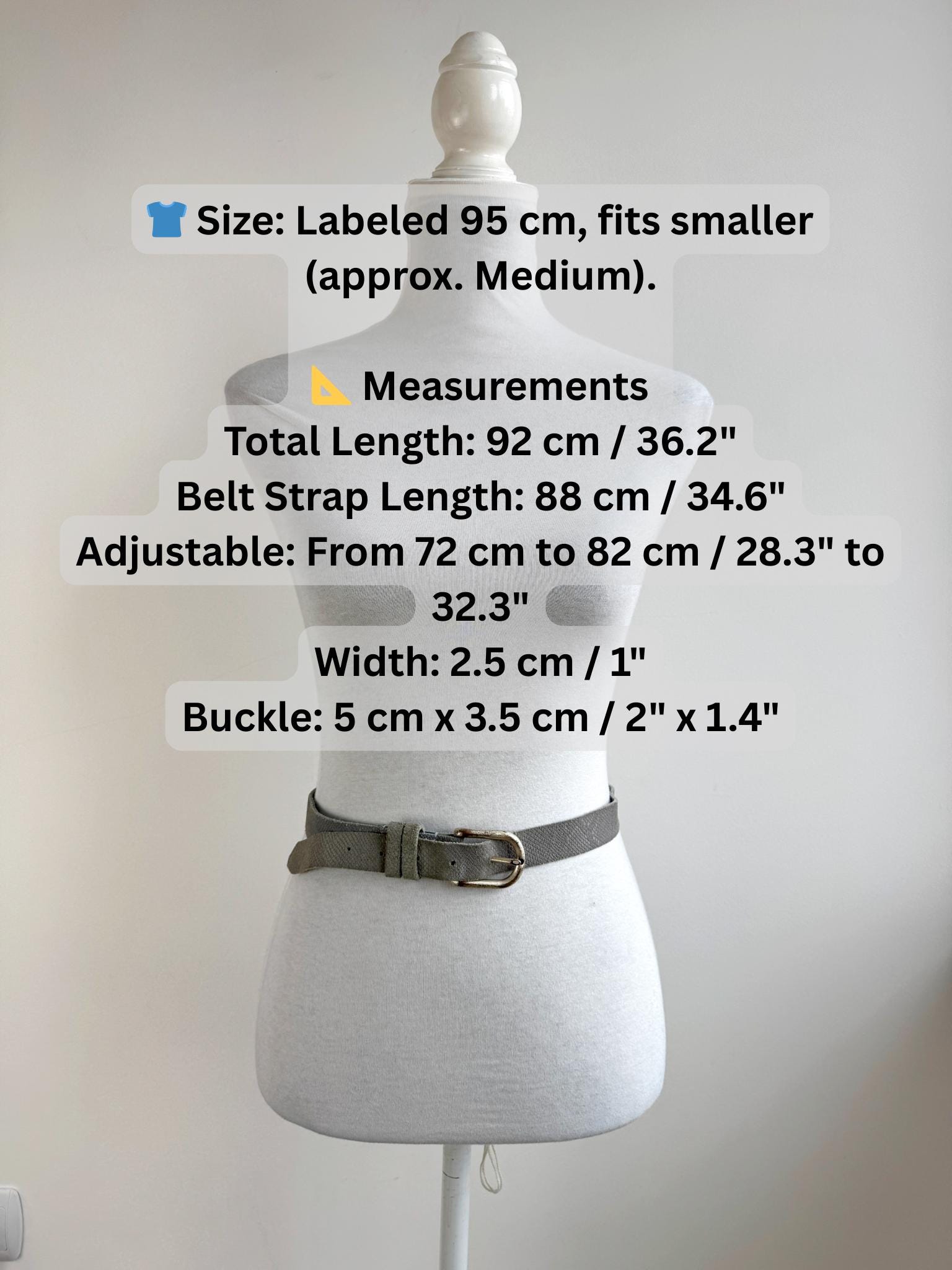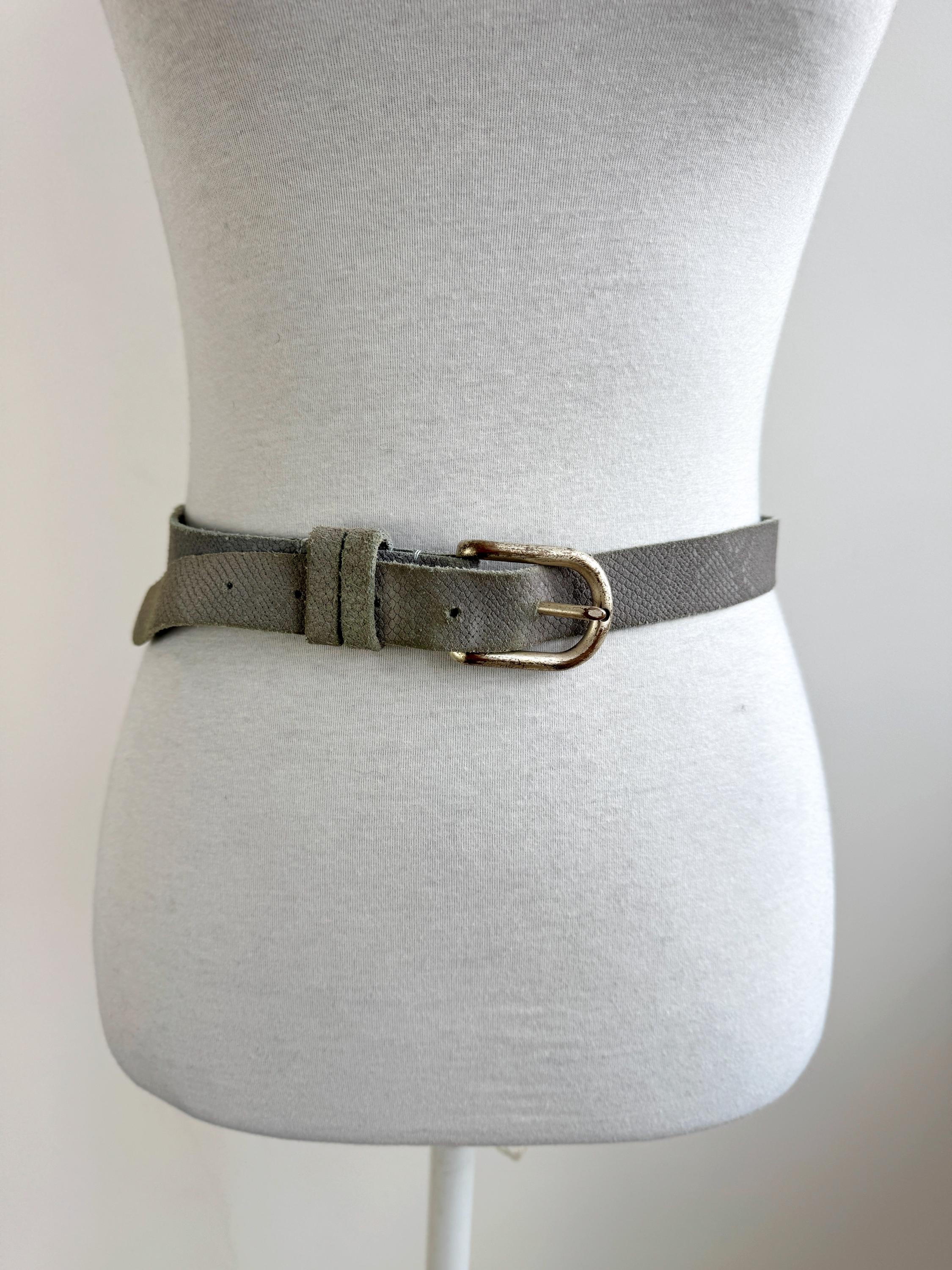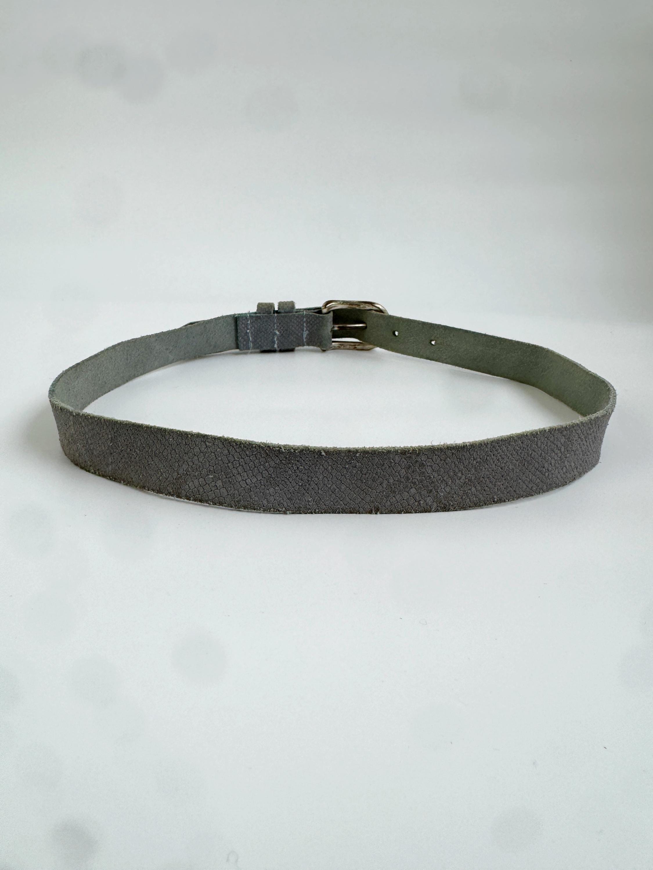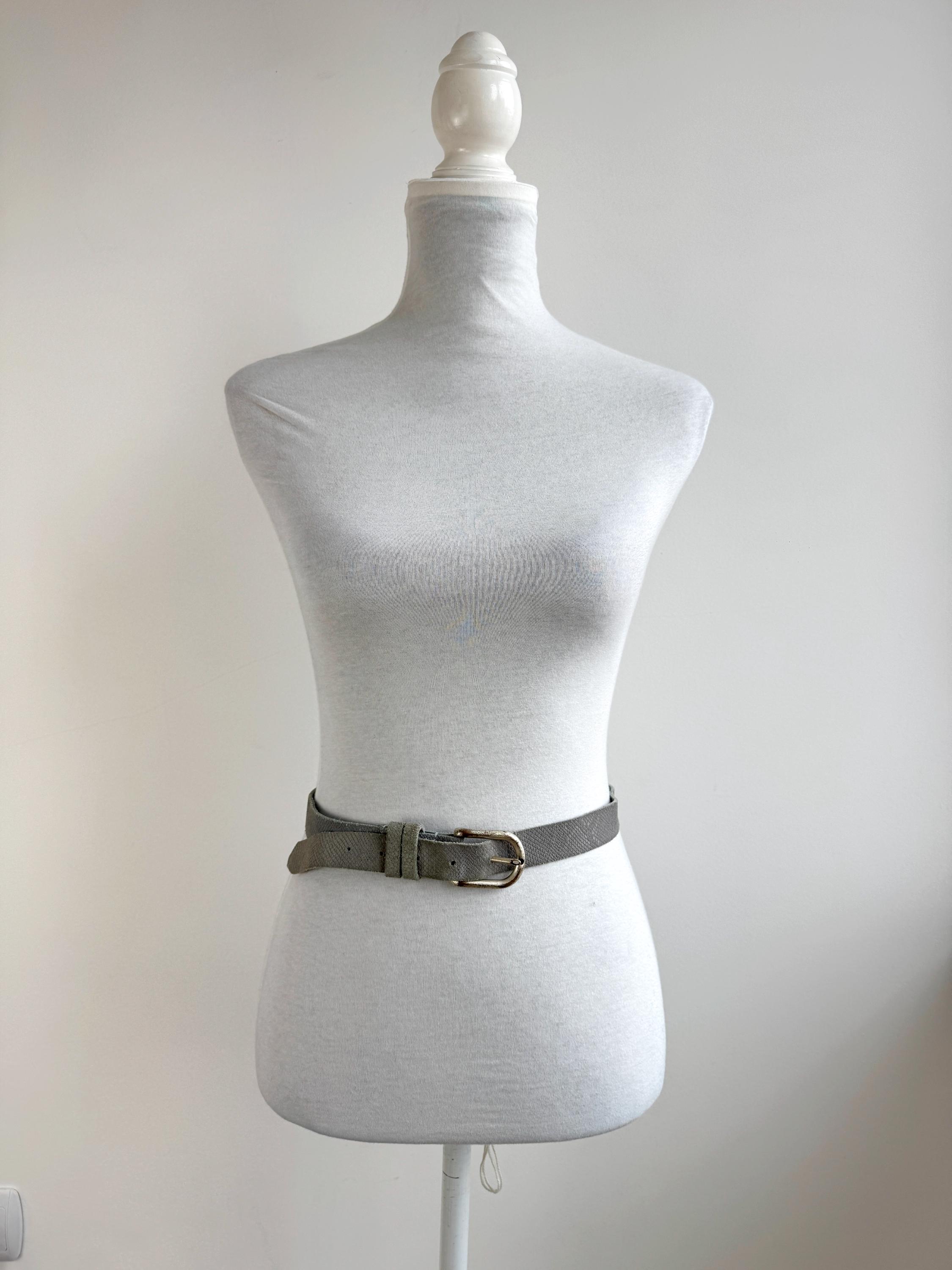 This is a vintage Y2K YAYA Women grey suede leather belt. Featuring a subtle yet sophisticated reptile-embossed texture, this leather accessory perfectly captures the minimalist aesthetic of the late 90s to early 2000s. The soft, muted grey tone and slim profile make it an incredibly versatile piece, whether you are cinching a flowy bohemian dress or adding a refined touch to high-waisted denim.