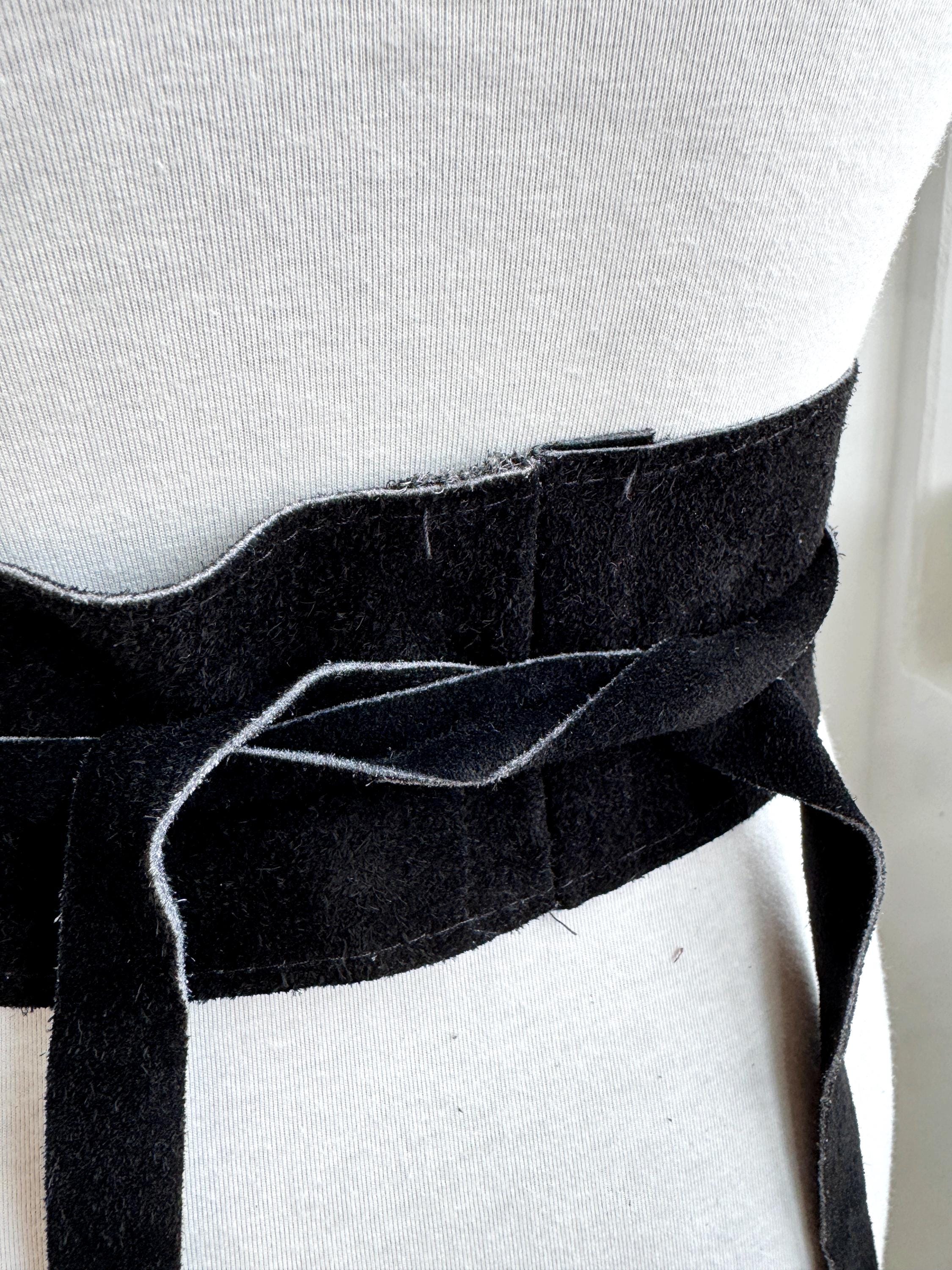 This is a simple black genuine suede leather obi belt with long ties. This real leather obi belt is made of super soft suede leather. Perfect double wrap kimono belt that will make a great accessory for your dress, shirt or tunic.