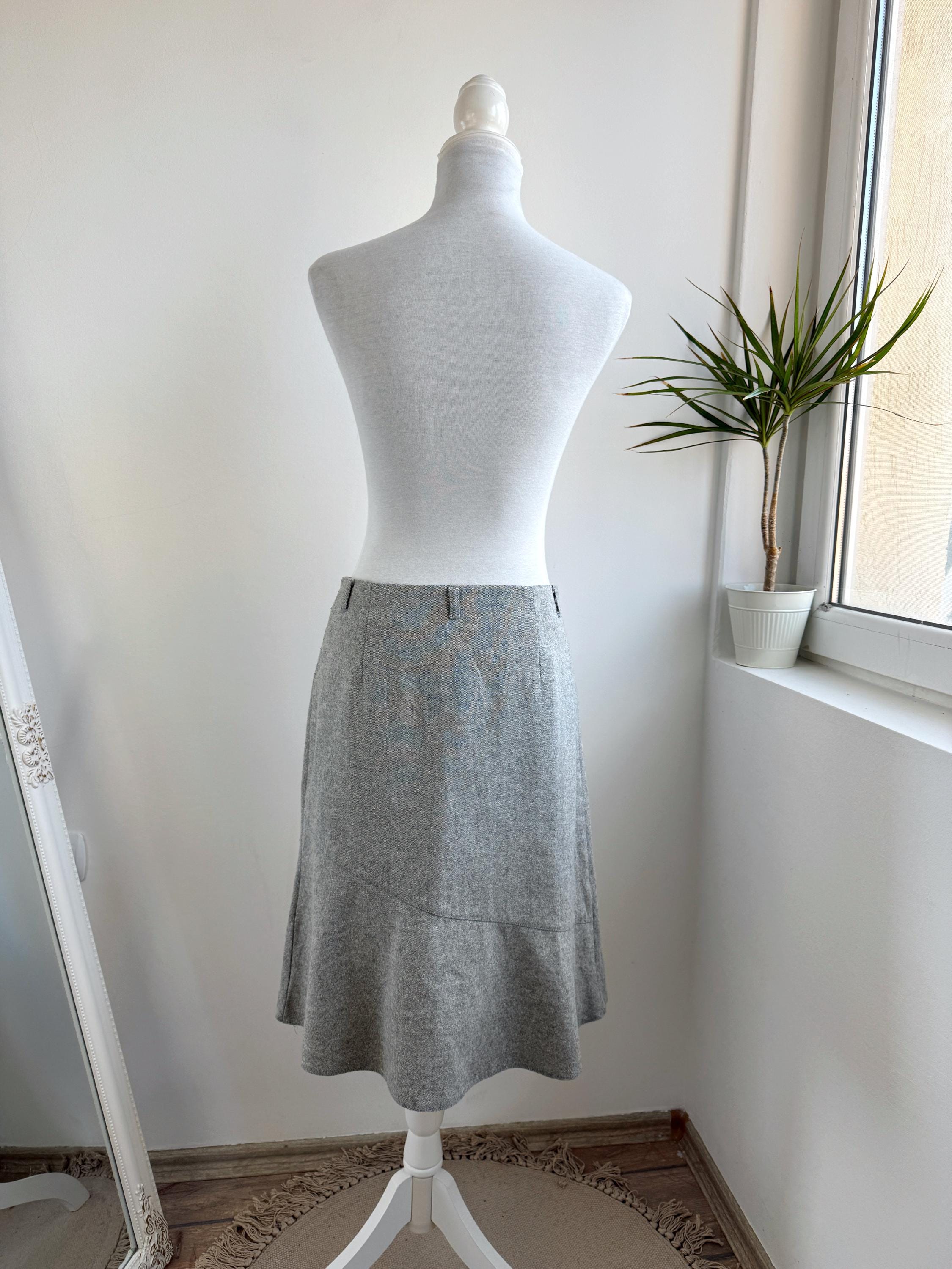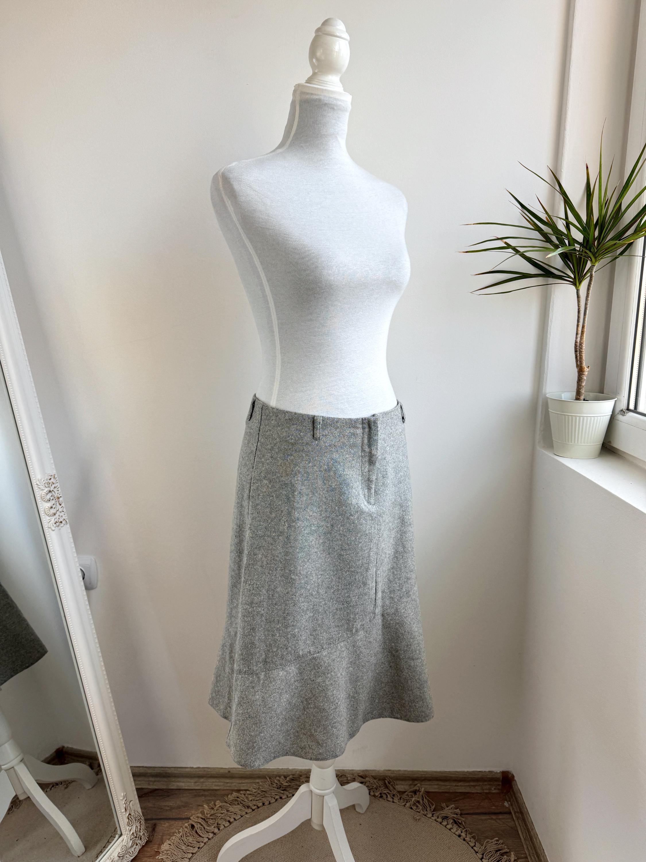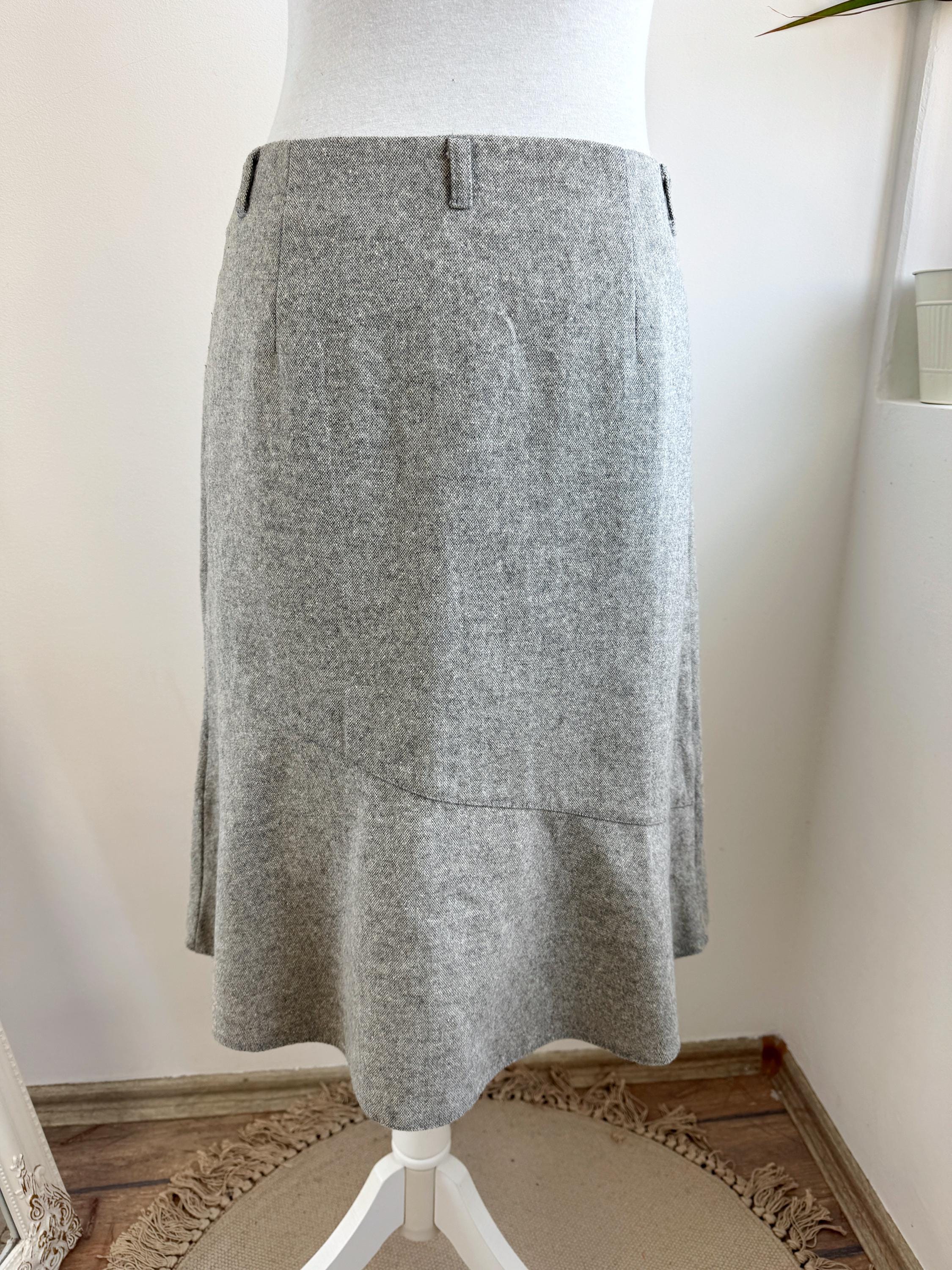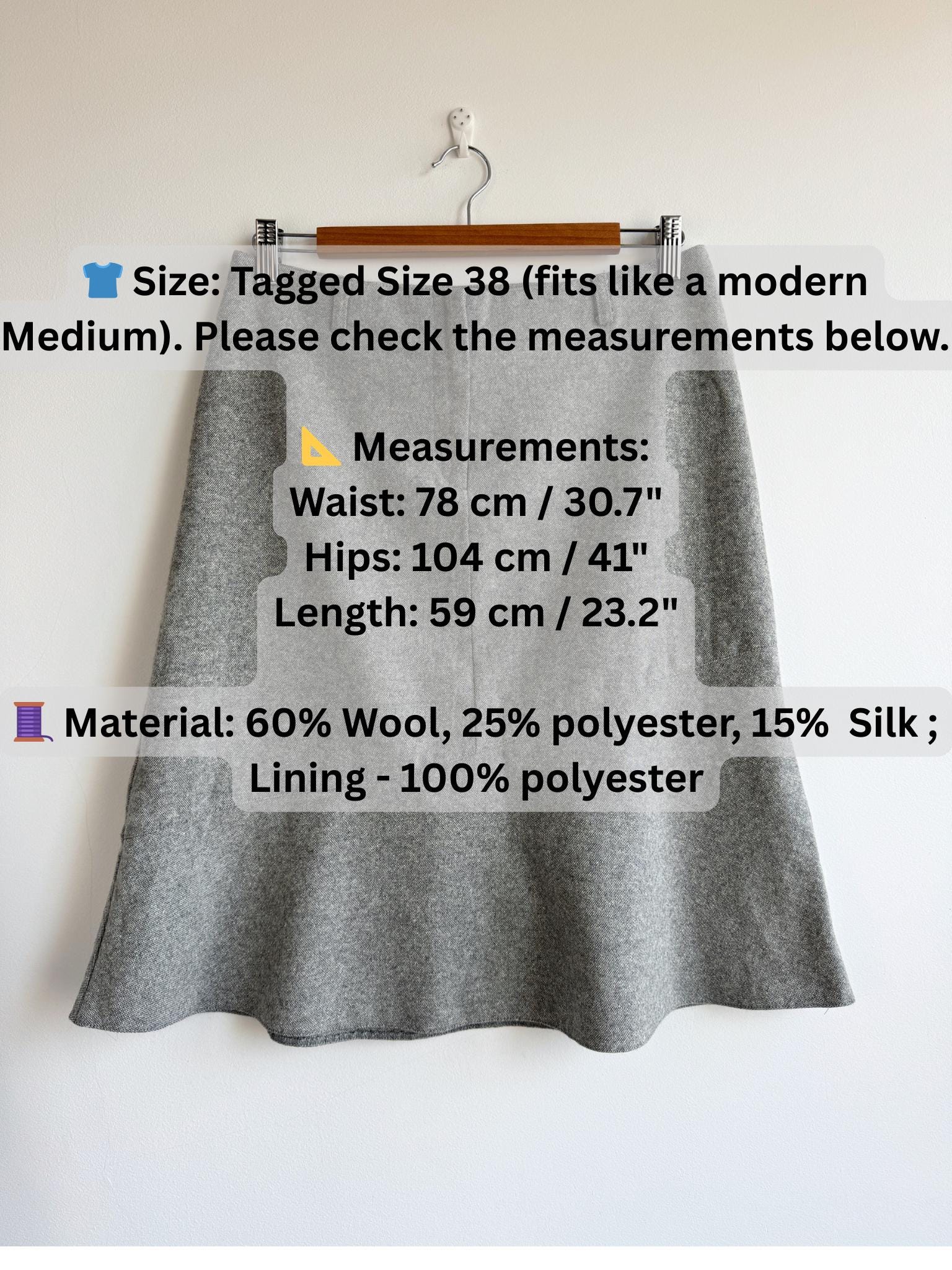 Beautiful vintage wool and silk blend pencil flared skirt with zip up front closure and full lining in size EUR 38 which fits like Medium (please check measurements below). This lovely grey tweed midi skirt is made of soft and cozy fabric made of 60% wool, 25% polyester and 15% silk, the lining is made of 100% polyester.
