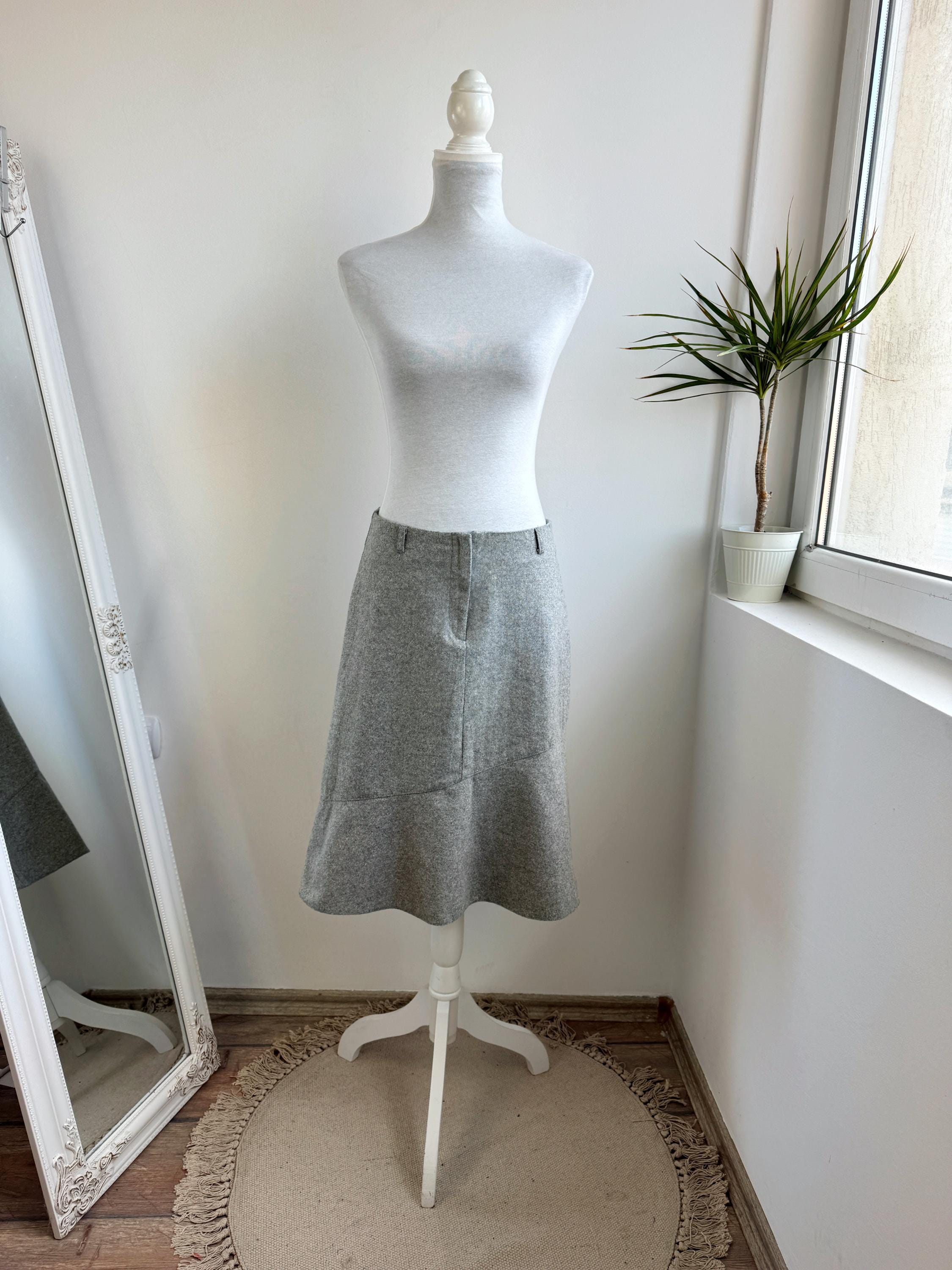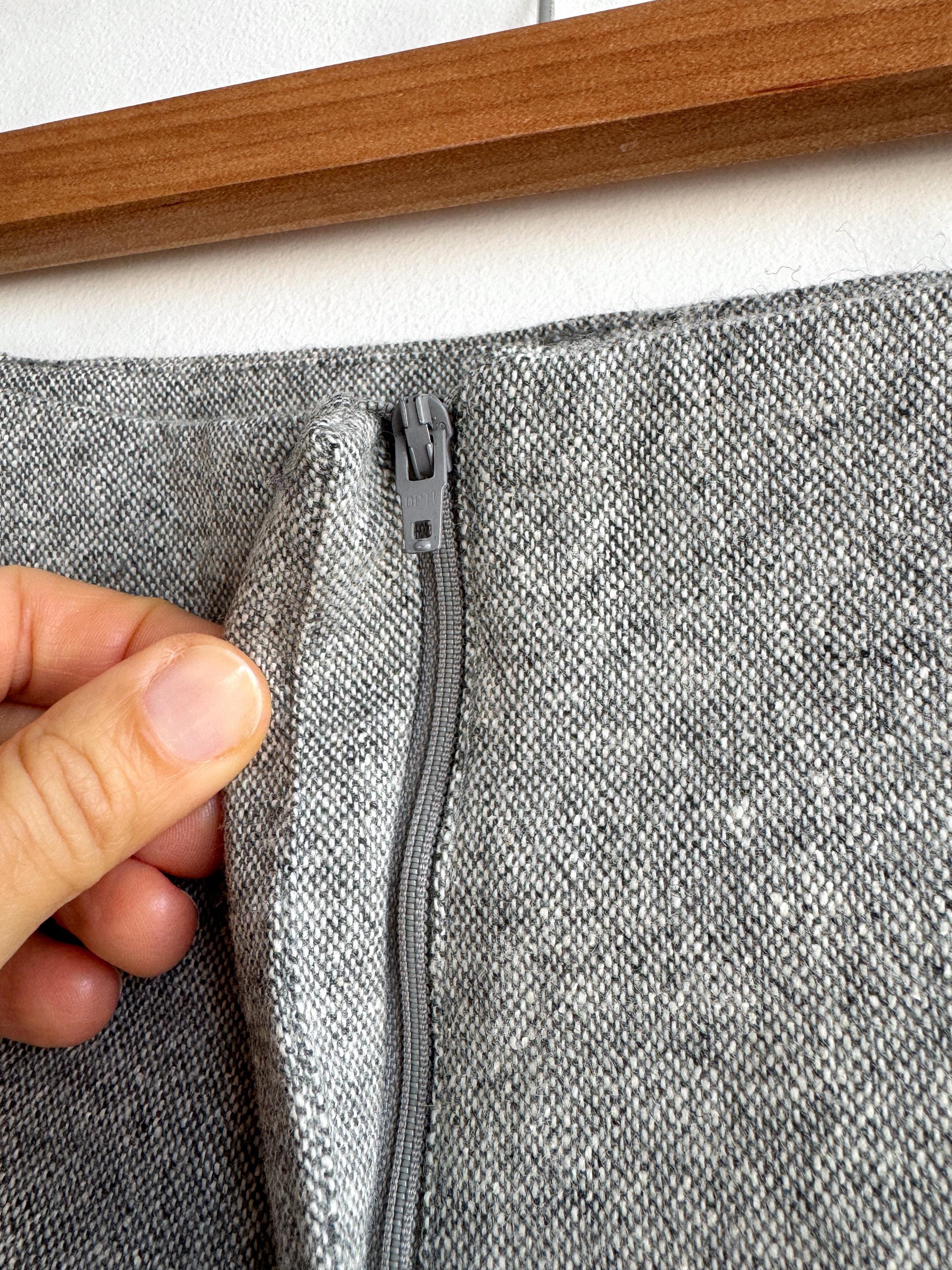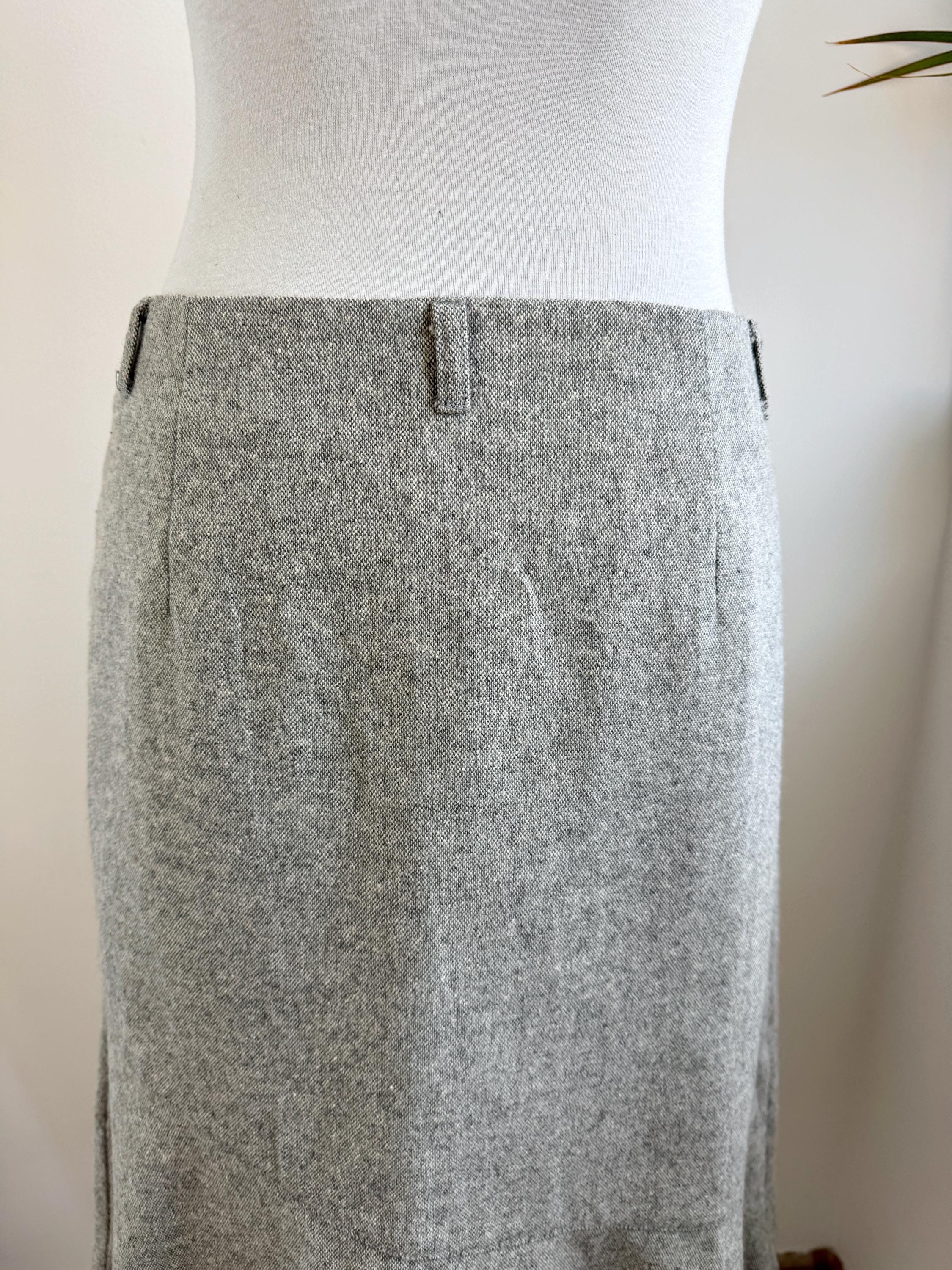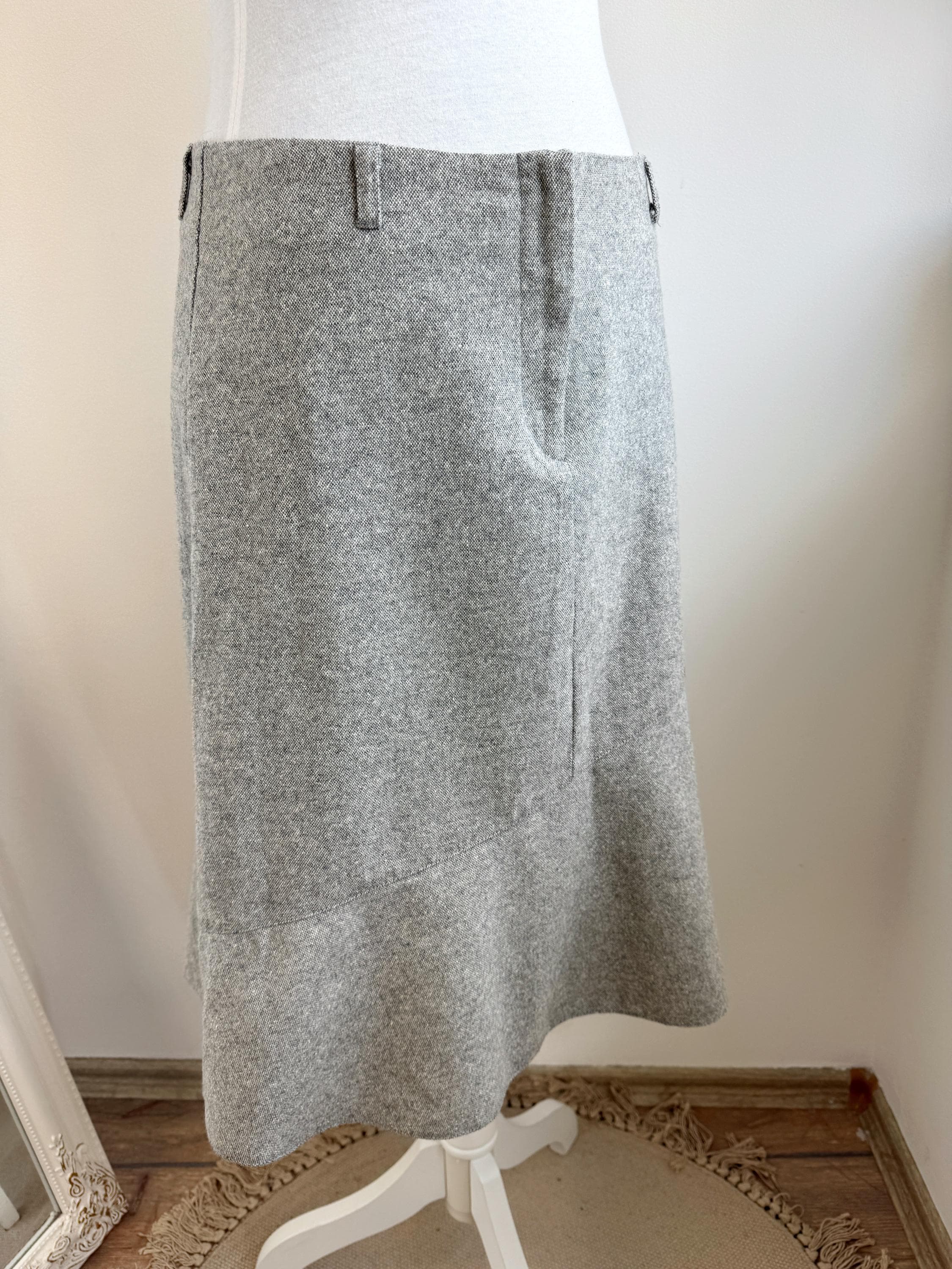 Beautiful vintage wool and silk blend pencil flared skirt with zip up front closure and full lining in size EUR 38 which fits like Medium (please check measurements below). This lovely grey tweed midi skirt is made of soft and cozy fabric made of 60% wool, 25% polyester and 15% silk, the lining is made of 100% polyester.