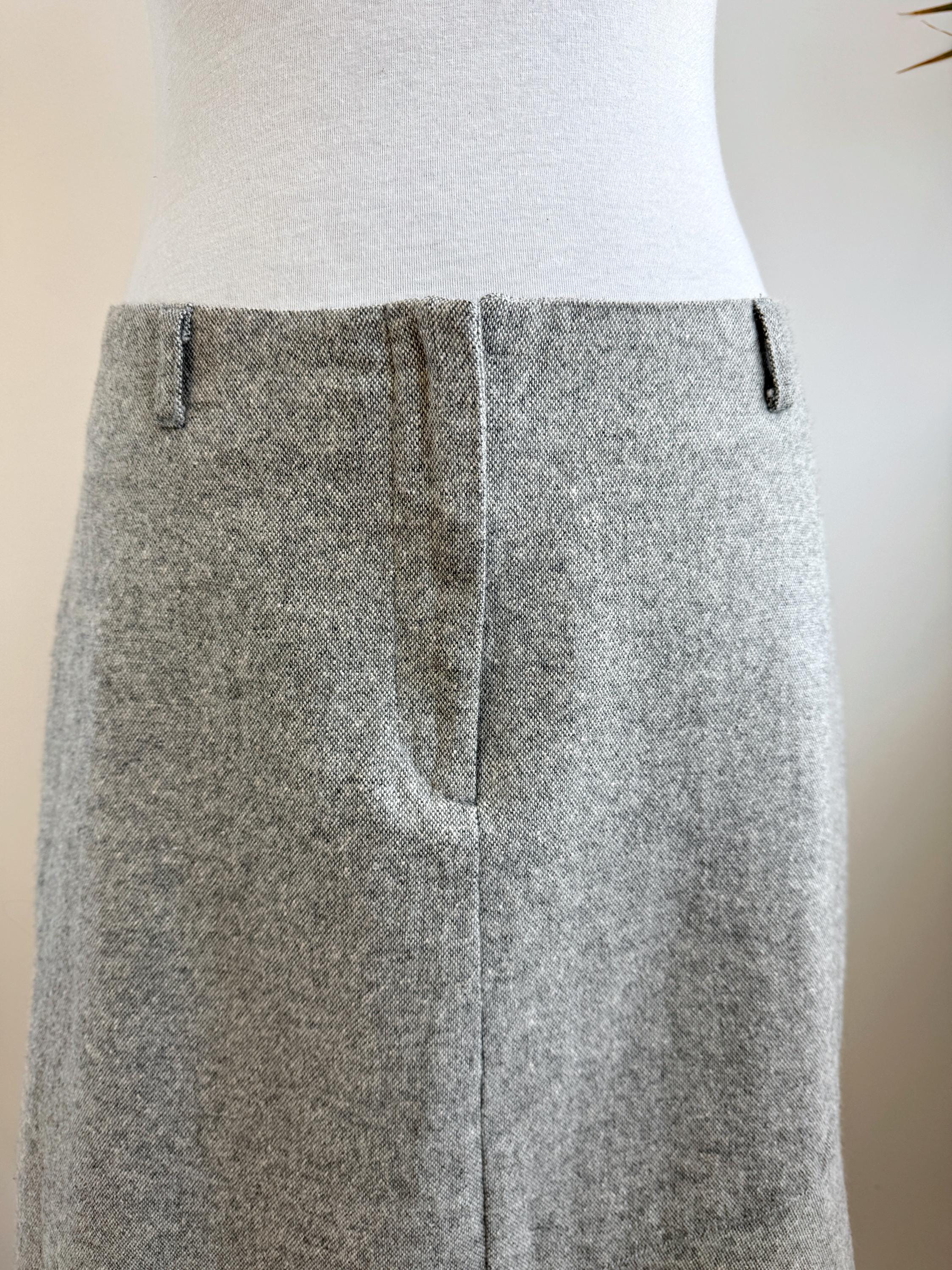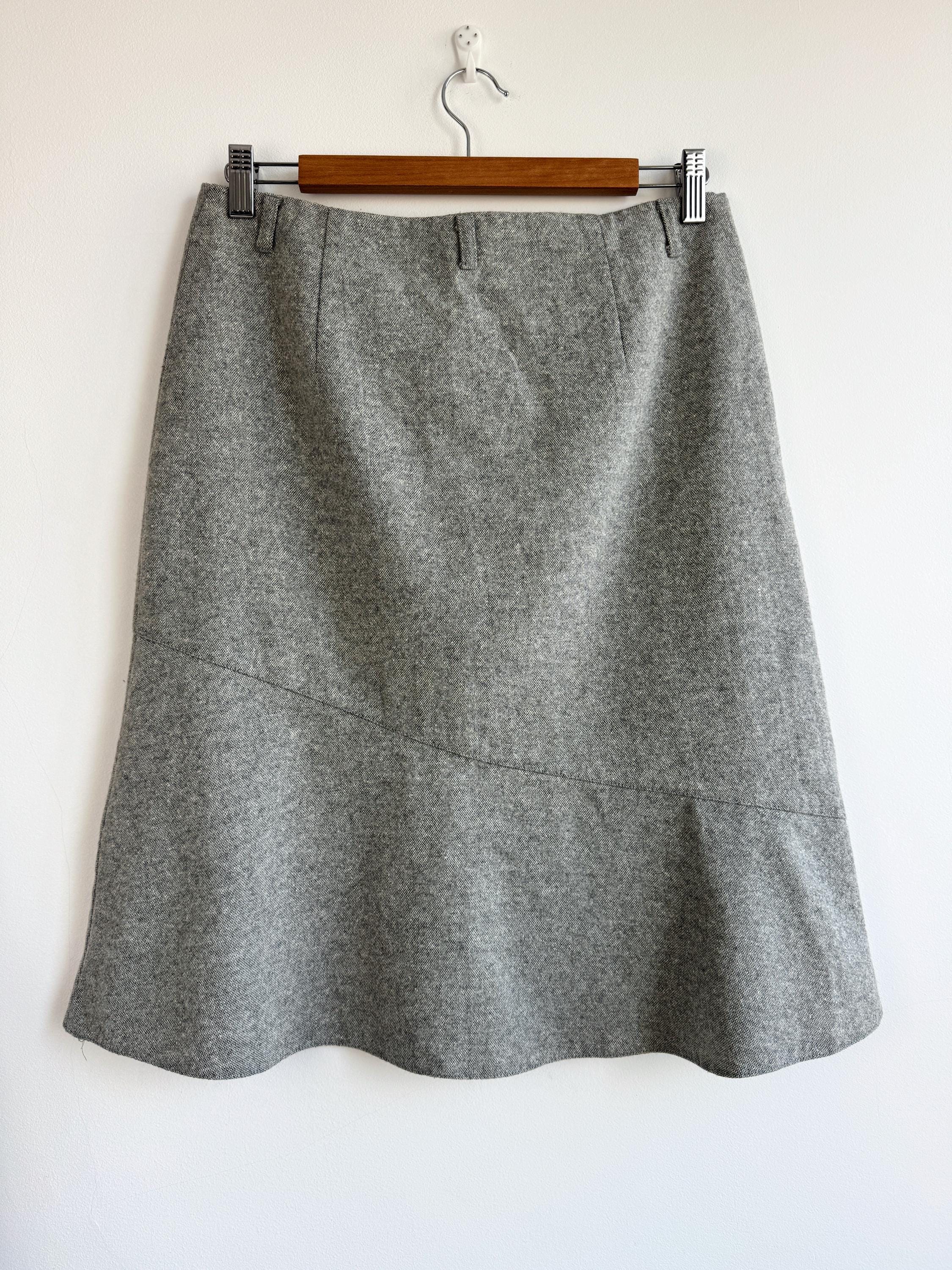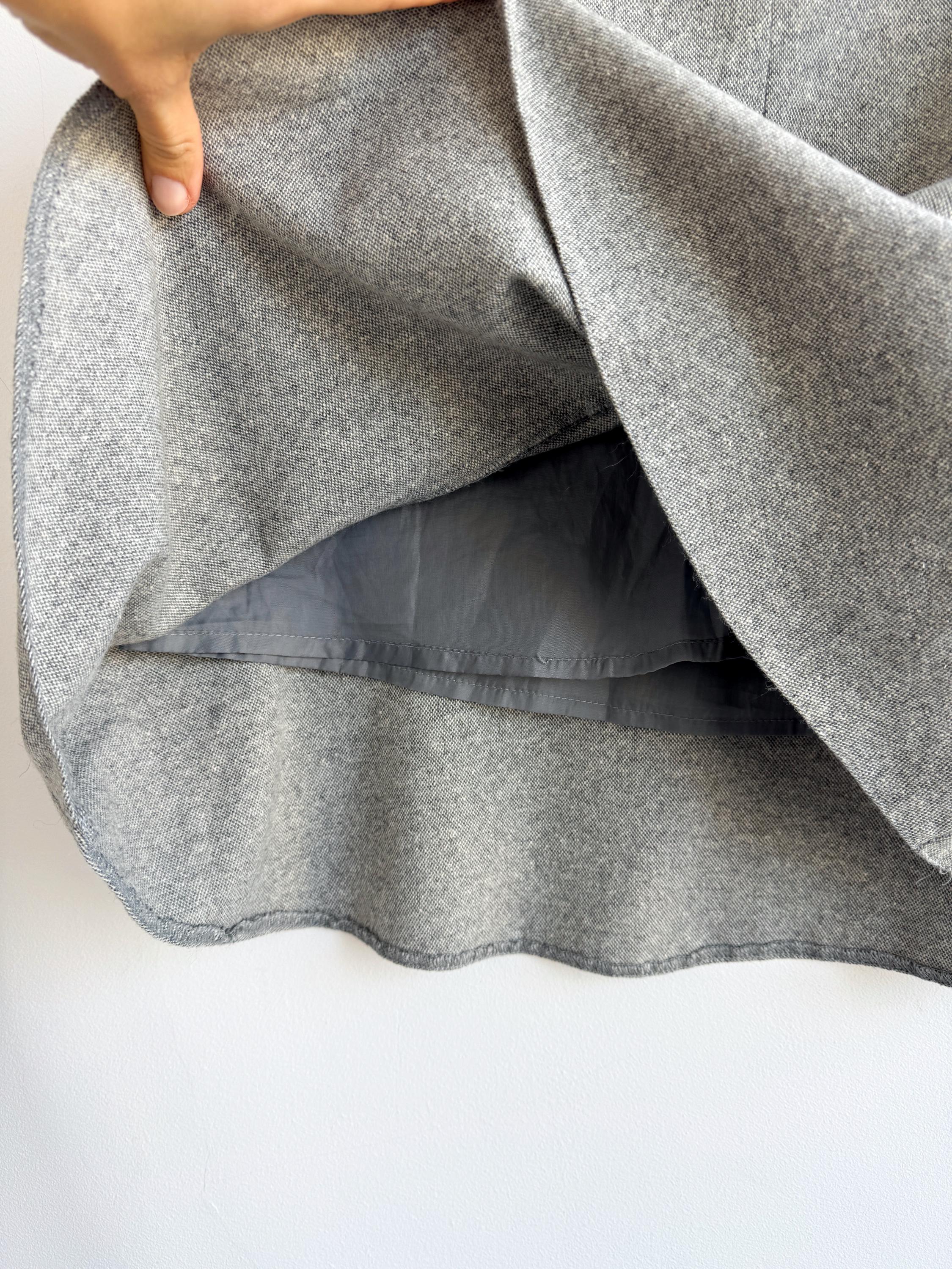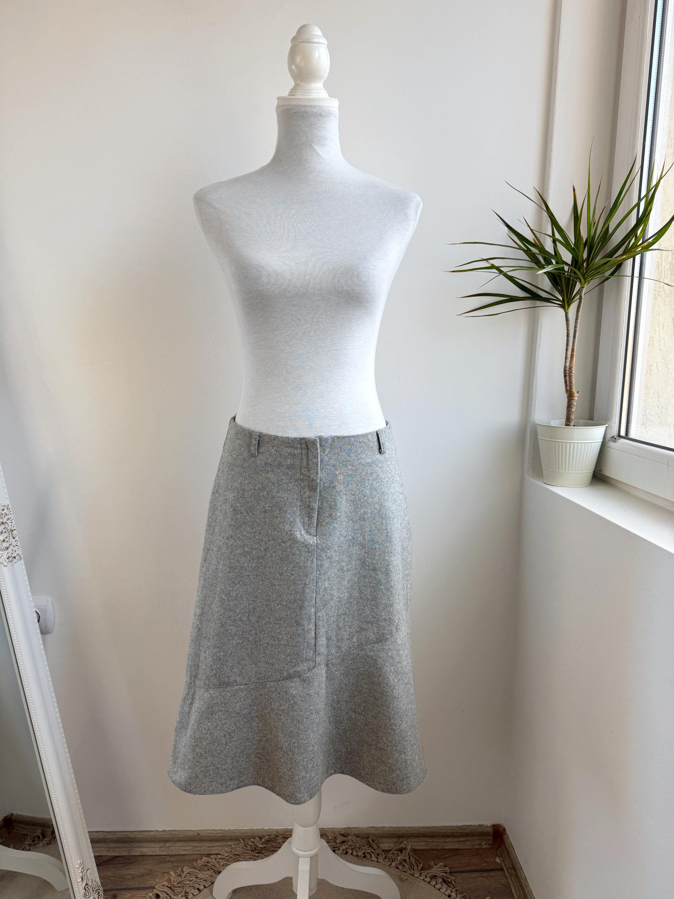 Beautiful vintage wool and silk blend pencil flared skirt with zip up front closure and full lining in size EUR 38 which fits like Medium (please check measurements below). This lovely grey tweed midi skirt is made of soft and cozy fabric made of 60% wool, 25% polyester and 15% silk, the lining is made of 100% polyester.