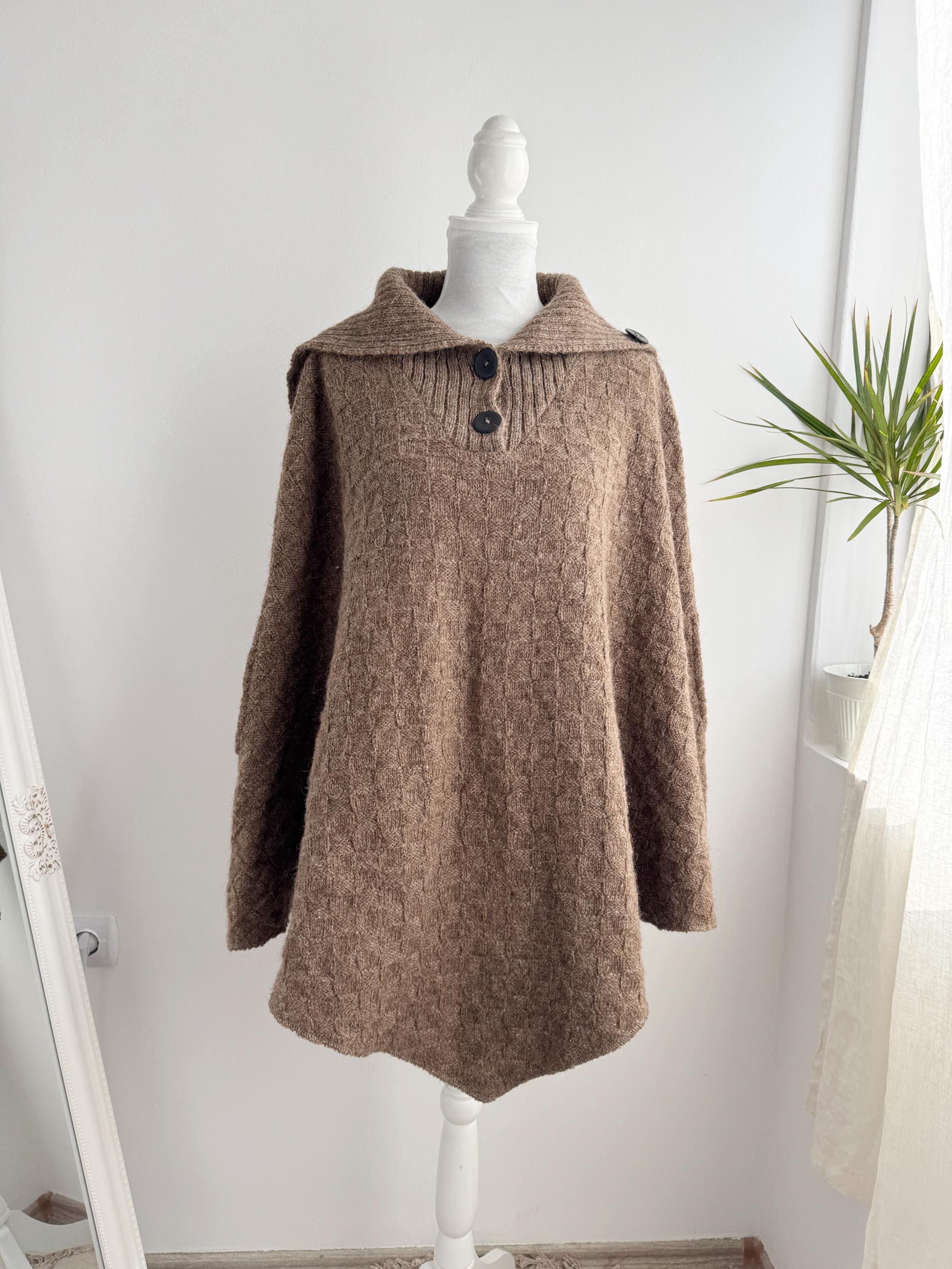 This pure wool ruana isn't just a garment; it’s a piece of heritage. The wool contains natural lanolin, making it naturally water-repellent and exceptionally durable—perfect for crisp autumn walks or cozy winter layering. The design features a versatile oversized collar with chunky button detailing and a flattering draped silhouette that fits a variety of body types. Whether you are a collector of rare knitwear or a lover of sustainable, high-quality fashion, this Faroe Islands poncho is a standout addition to any wardrobe.