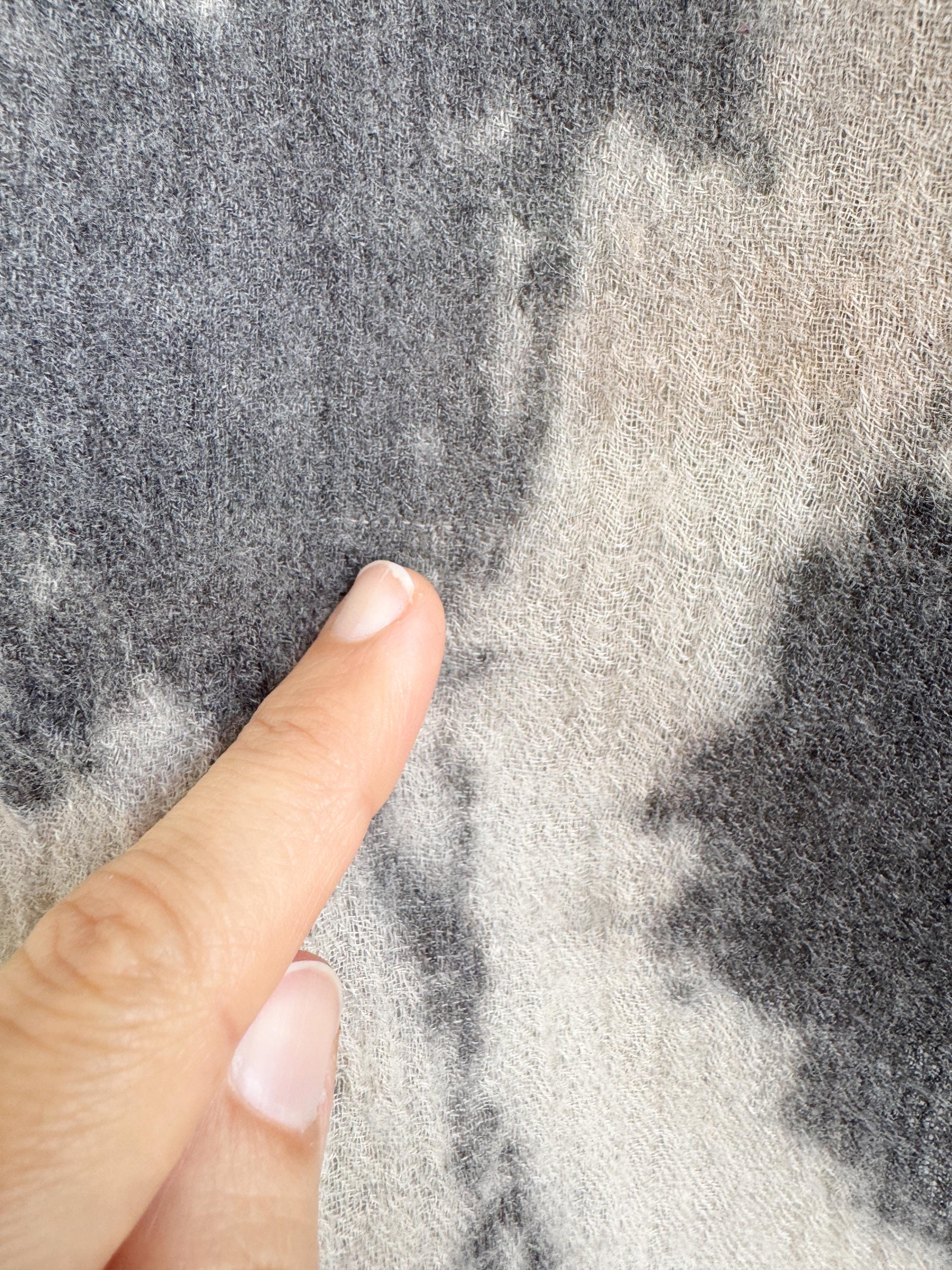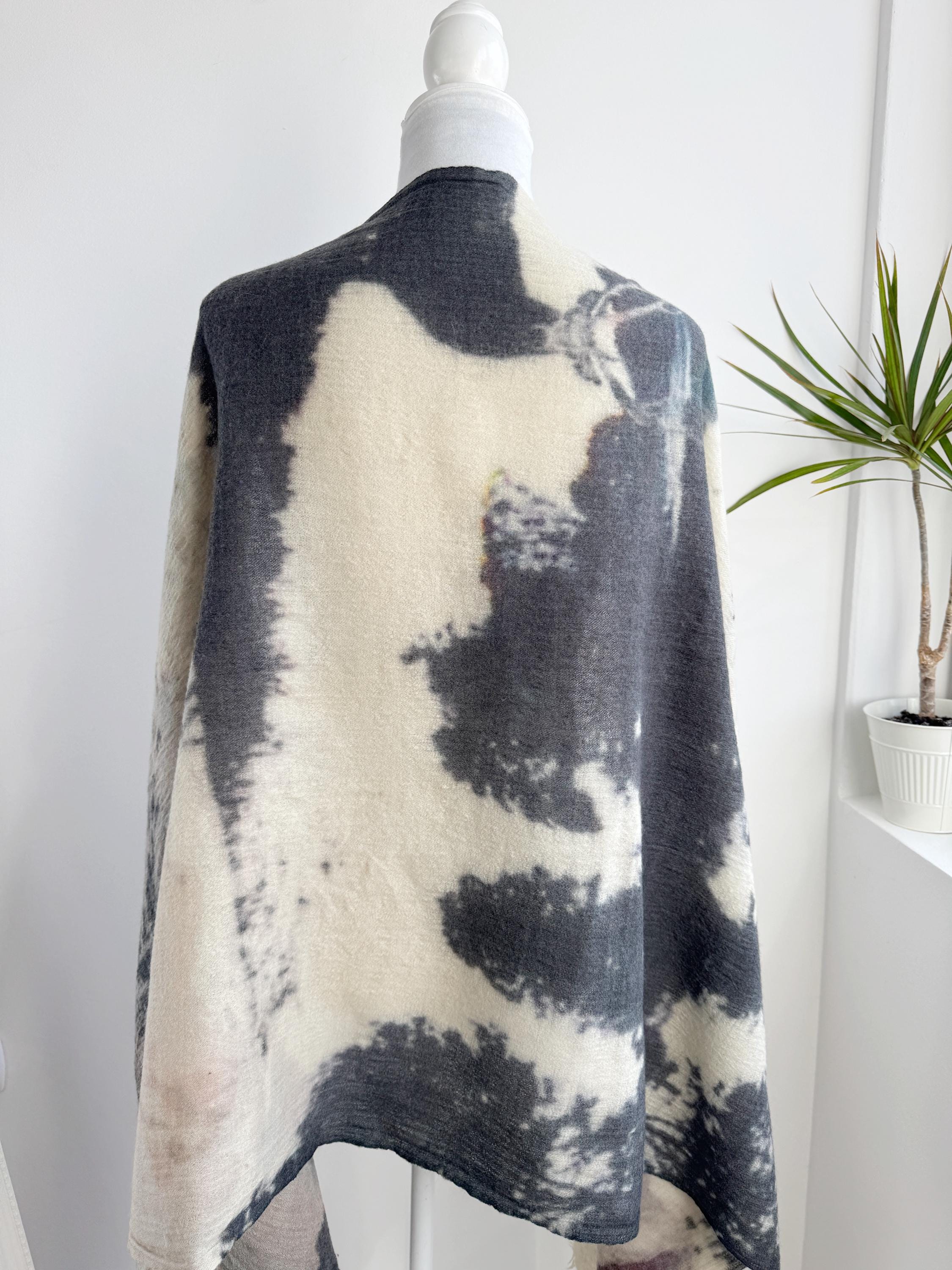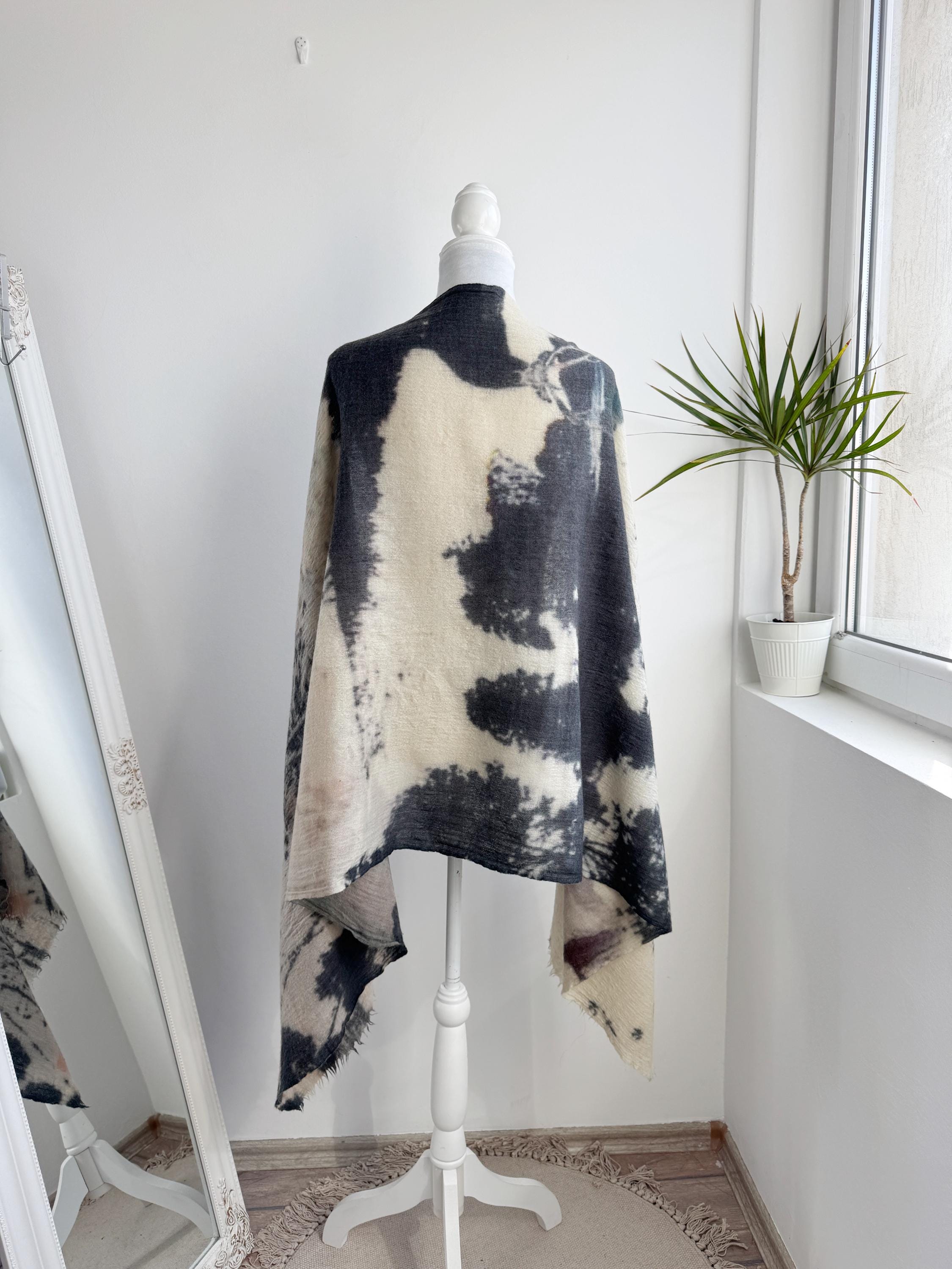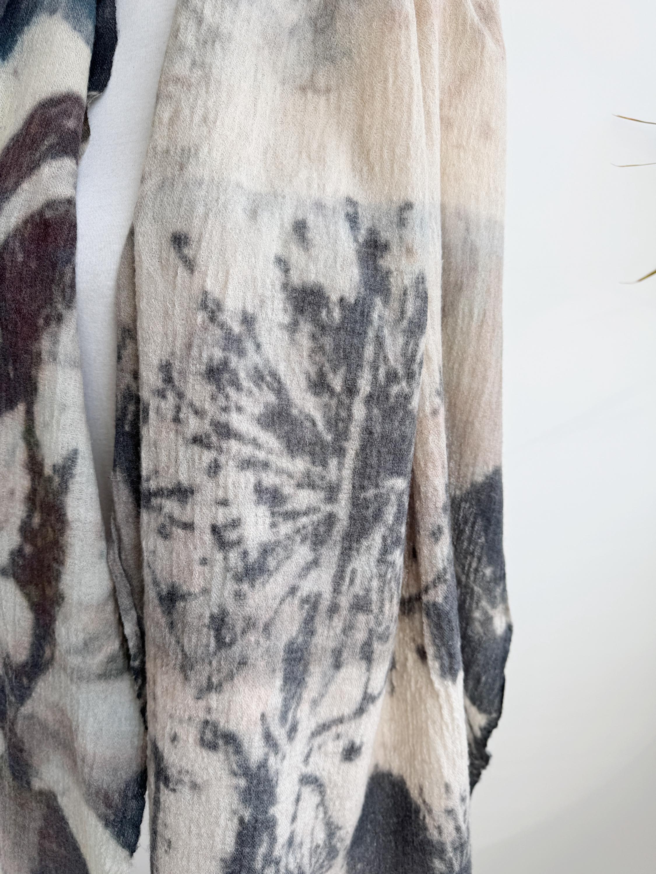 The natural 100% wool fibers offer breathable warmth without the bulk, while the raw, slightly frayed edges give it a modern, bohemian edge. Whether you're layering it over a classic trench coat or a simple black dress, this oversized wrap adds an instant touch of Scandinavian chic to any outfit. It's a timeless, high-quality piece for anyone who appreciates artistic prints and natural materials.