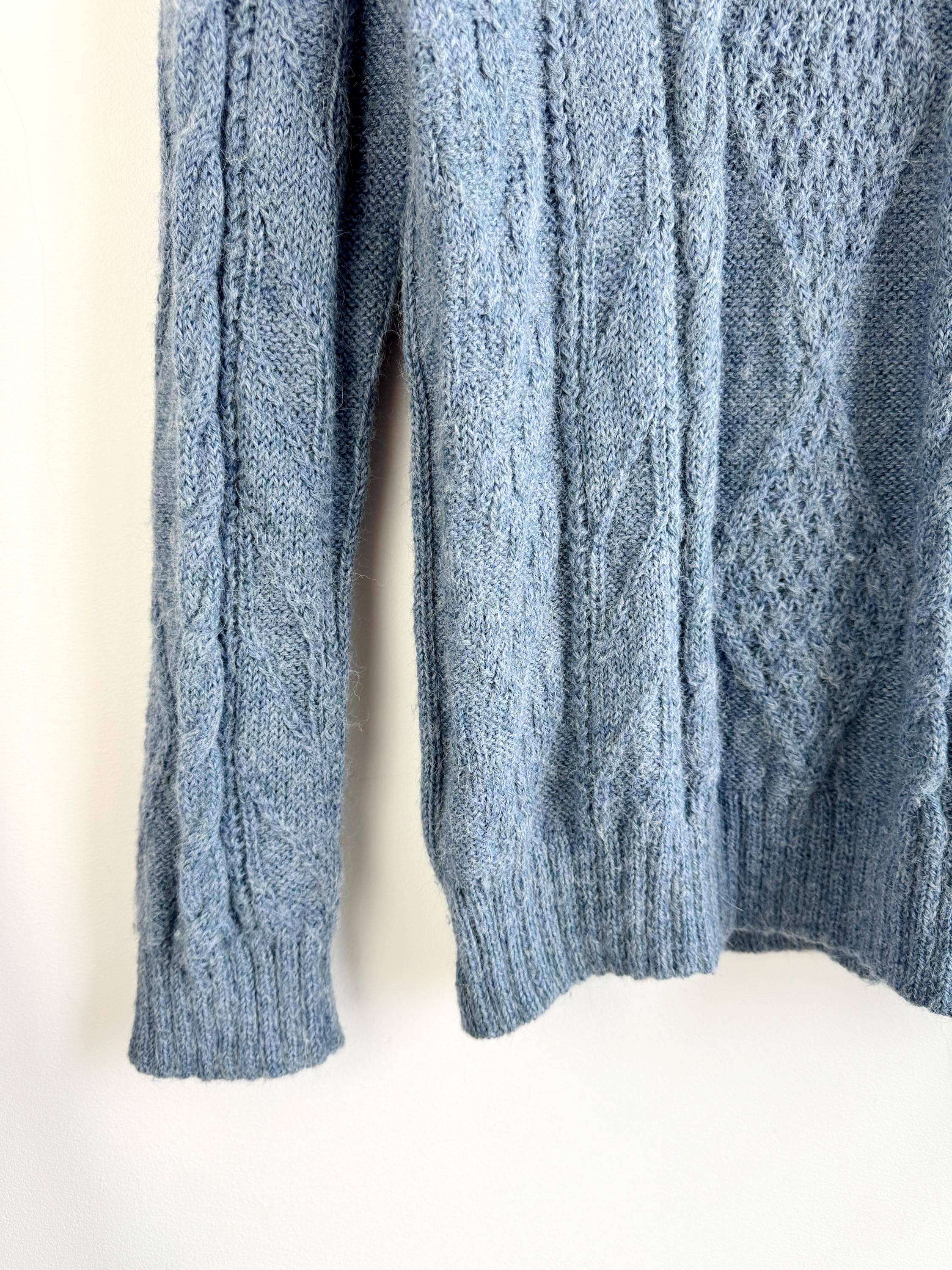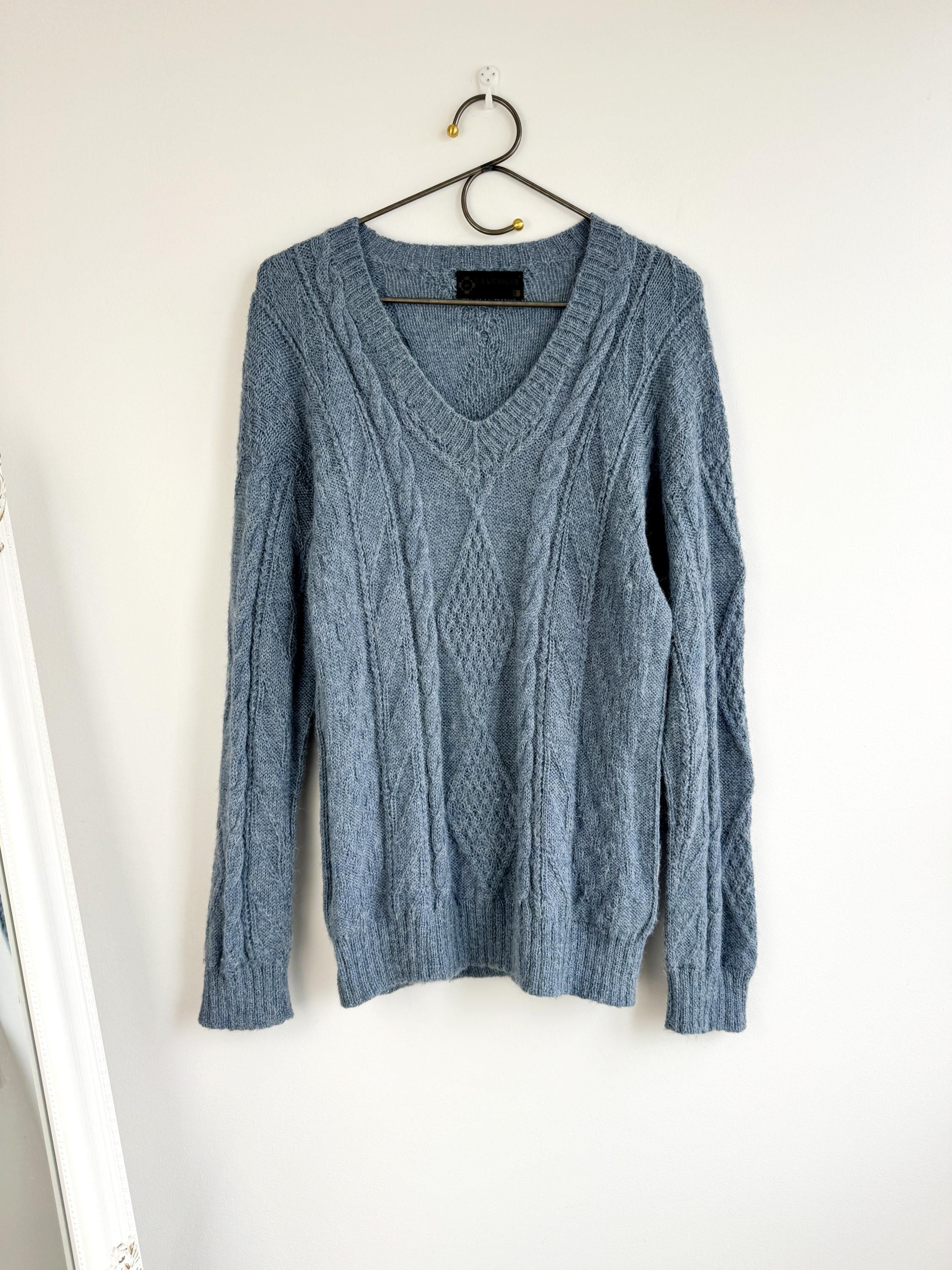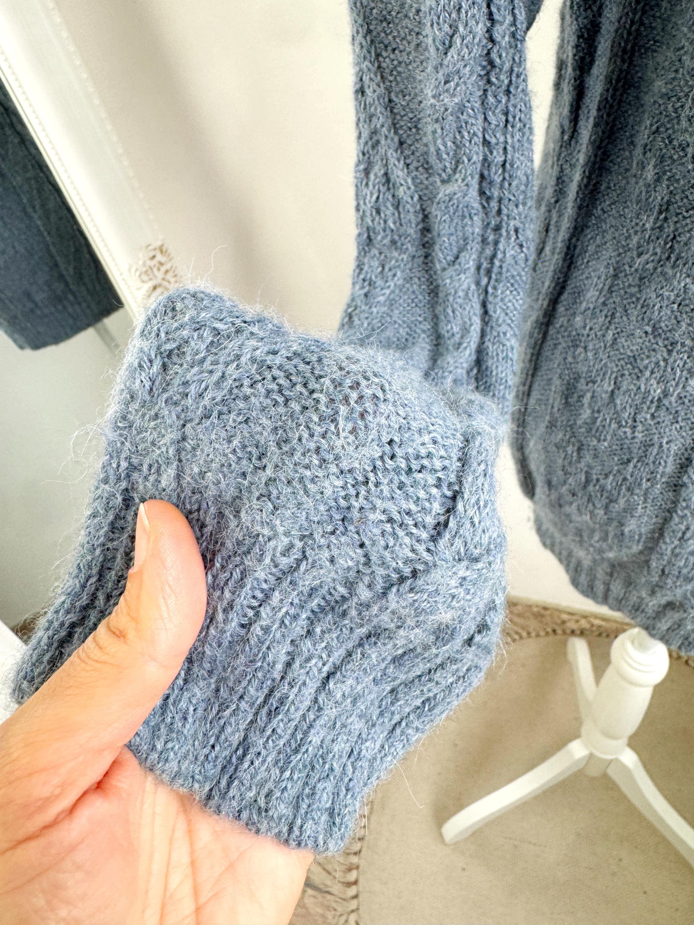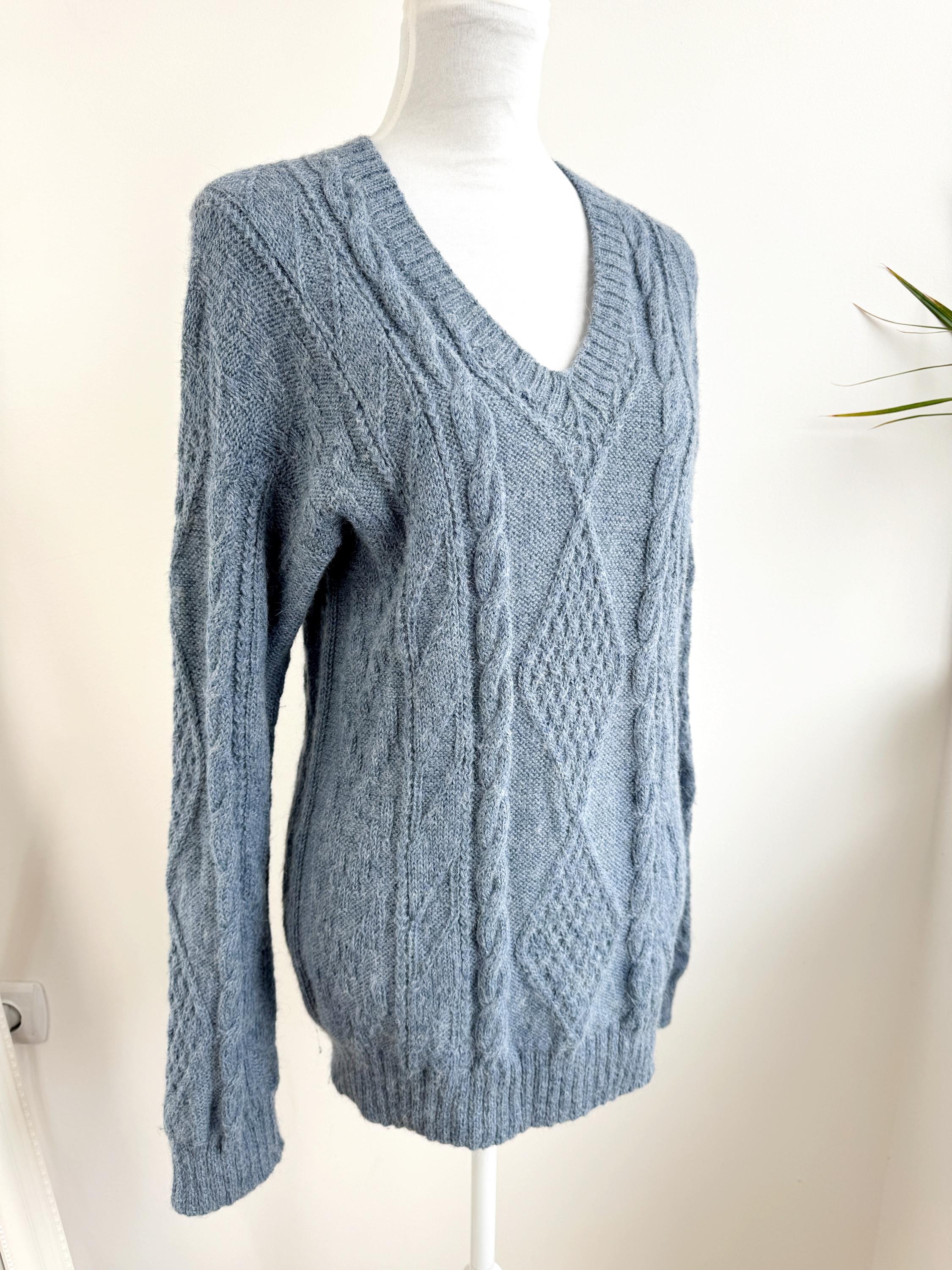 This is increadibly soft 100% baby alpaca Peruvian vintage sweater by La Vicuñita. Expertly crafted from 100% Baby Alpaca by La Vicuñita in Cusco, Peru, this soft baby alpaca pullover features a sophisticated dusty blue hue that pairs perfectly with denim or neutral linens.