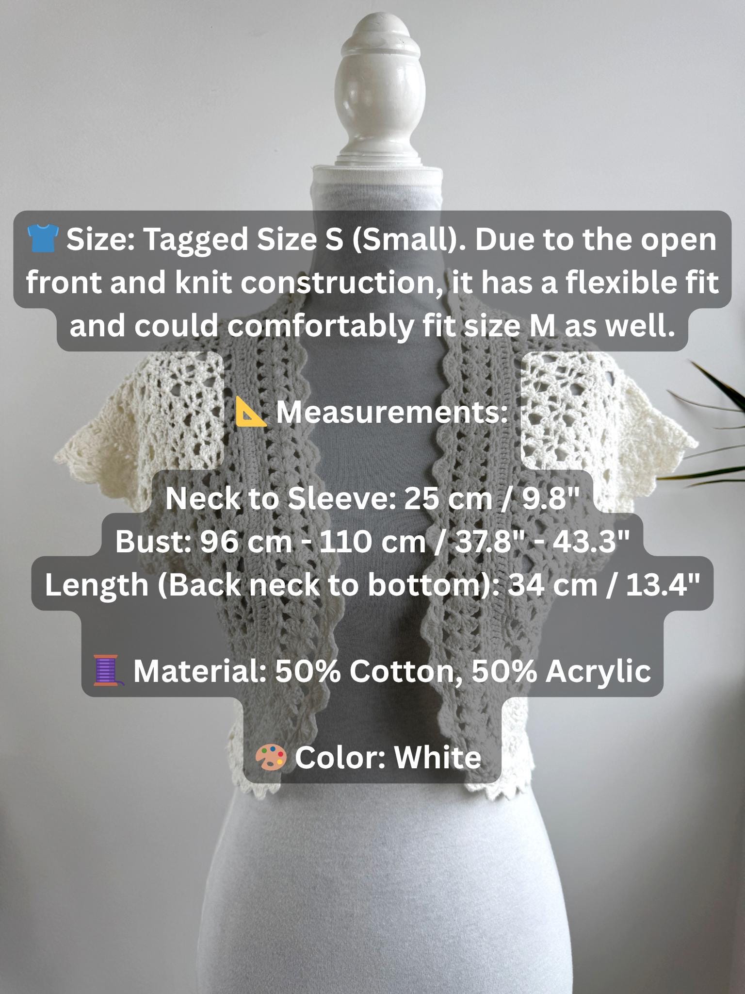 👕 Size: Tagged Size S (Small). Due to the open front and knit construction, it has a flexible fit and could comfortably fit size M as well.