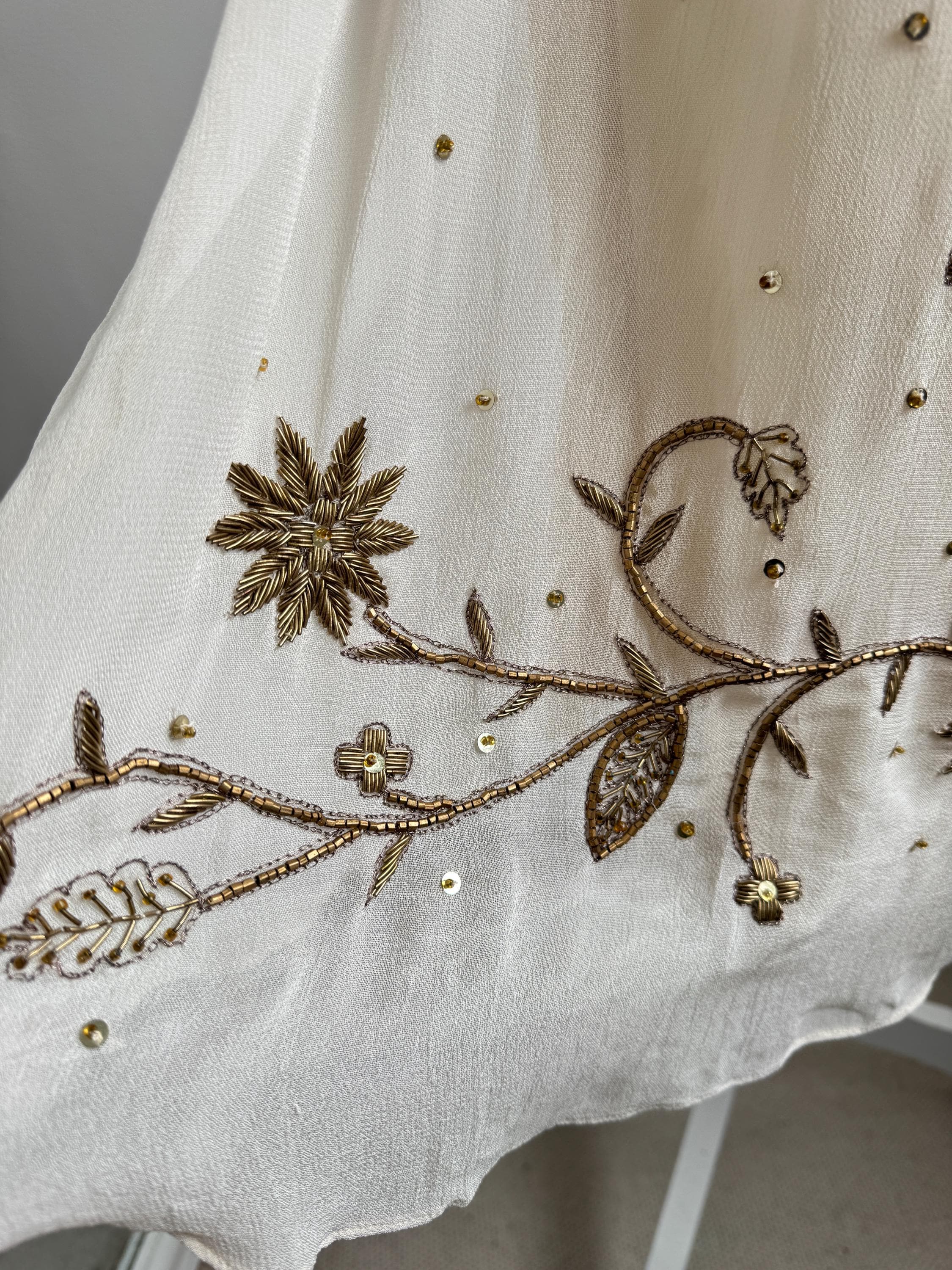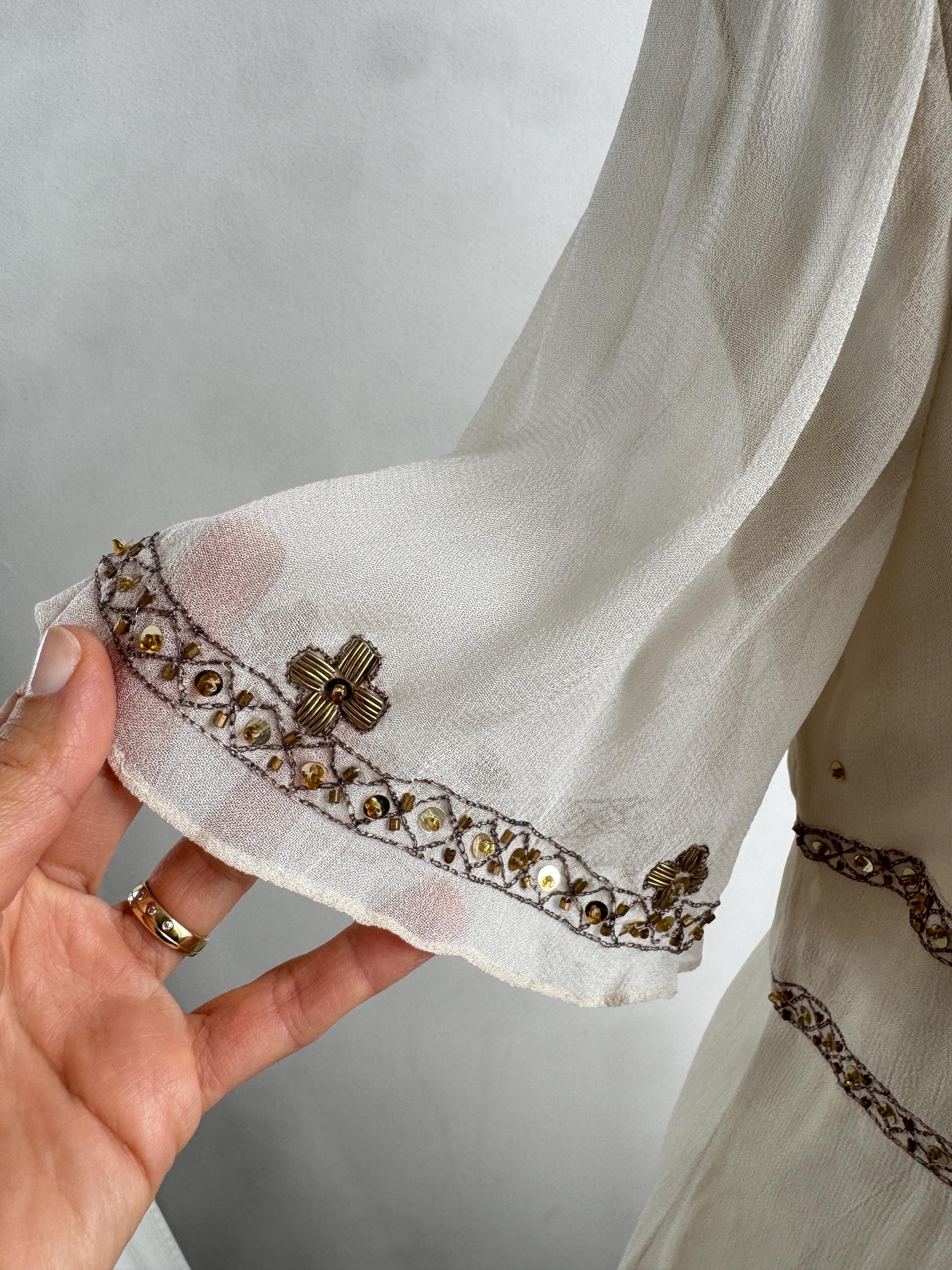 🎨 Color: Beige / Cream / Champagne with Bronze Beading