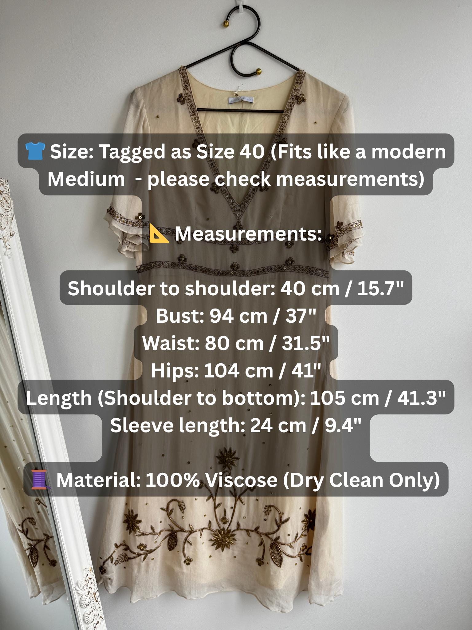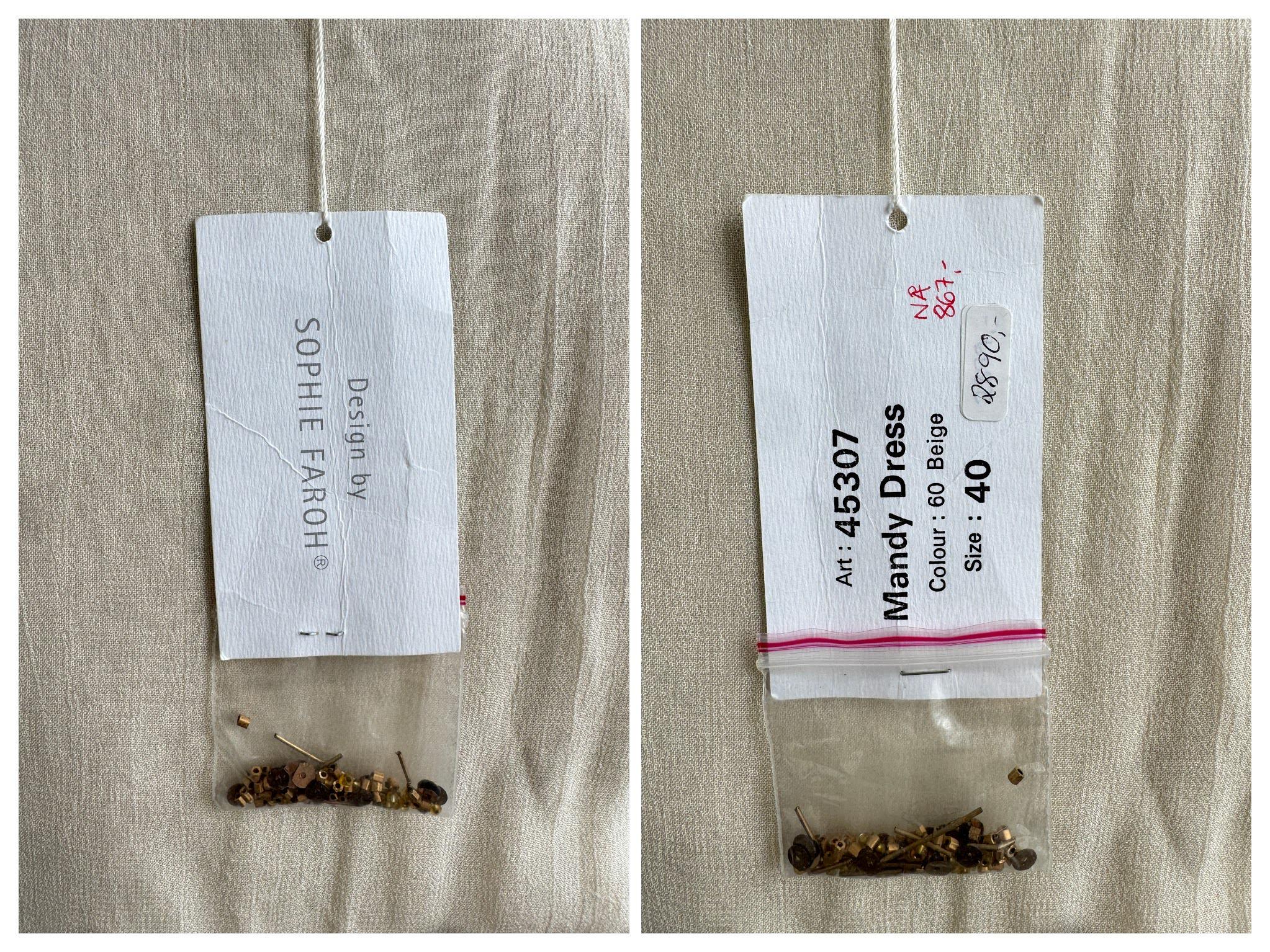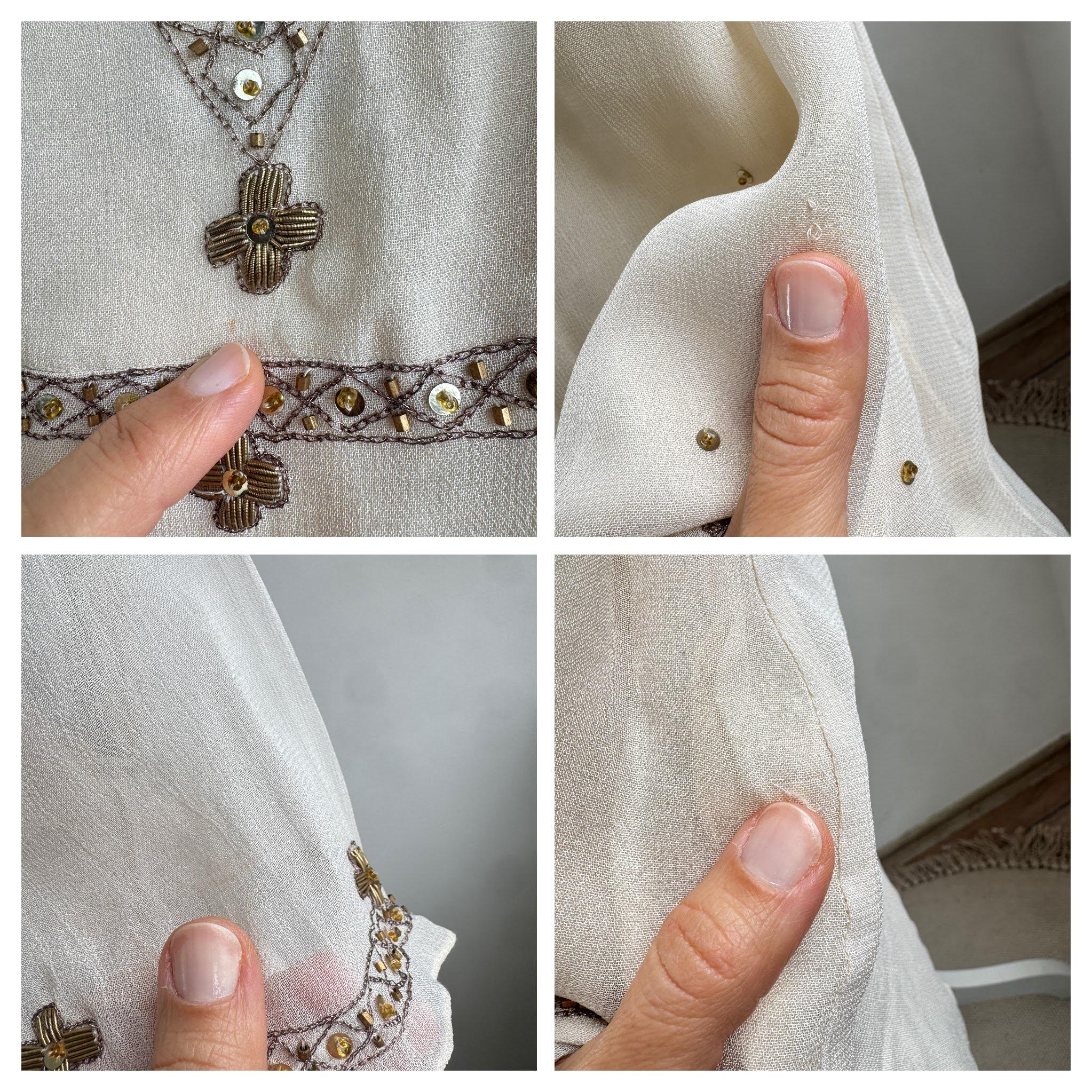 ✨ Condition: Great vintage condition with some signs of wear - there are a couple of missing beads ( Includes a small bag of spare replacement beads still attached to the original tag) and a tiny darker spot at the center of the neckline and the sleeve as shown in the close up photos.