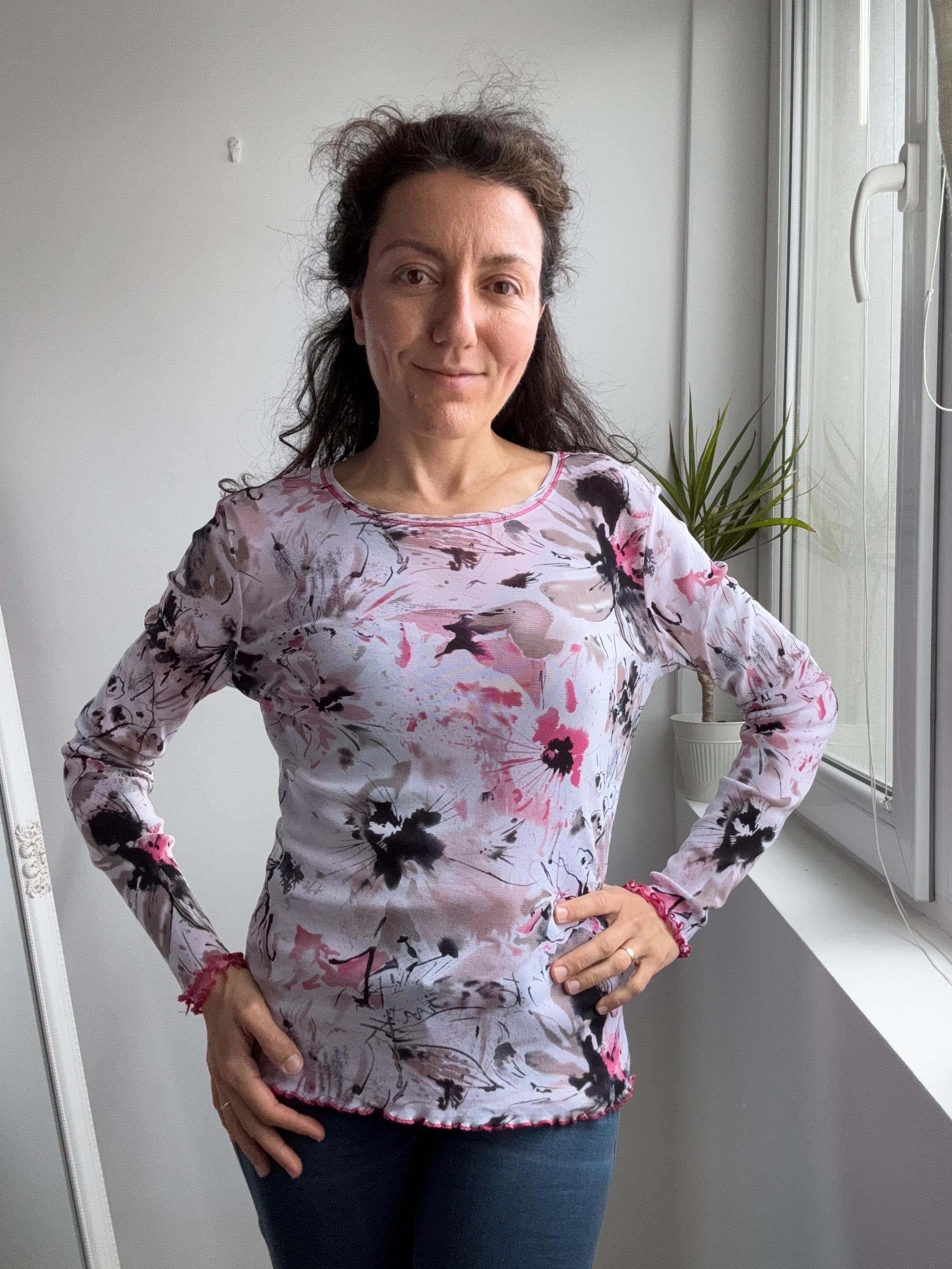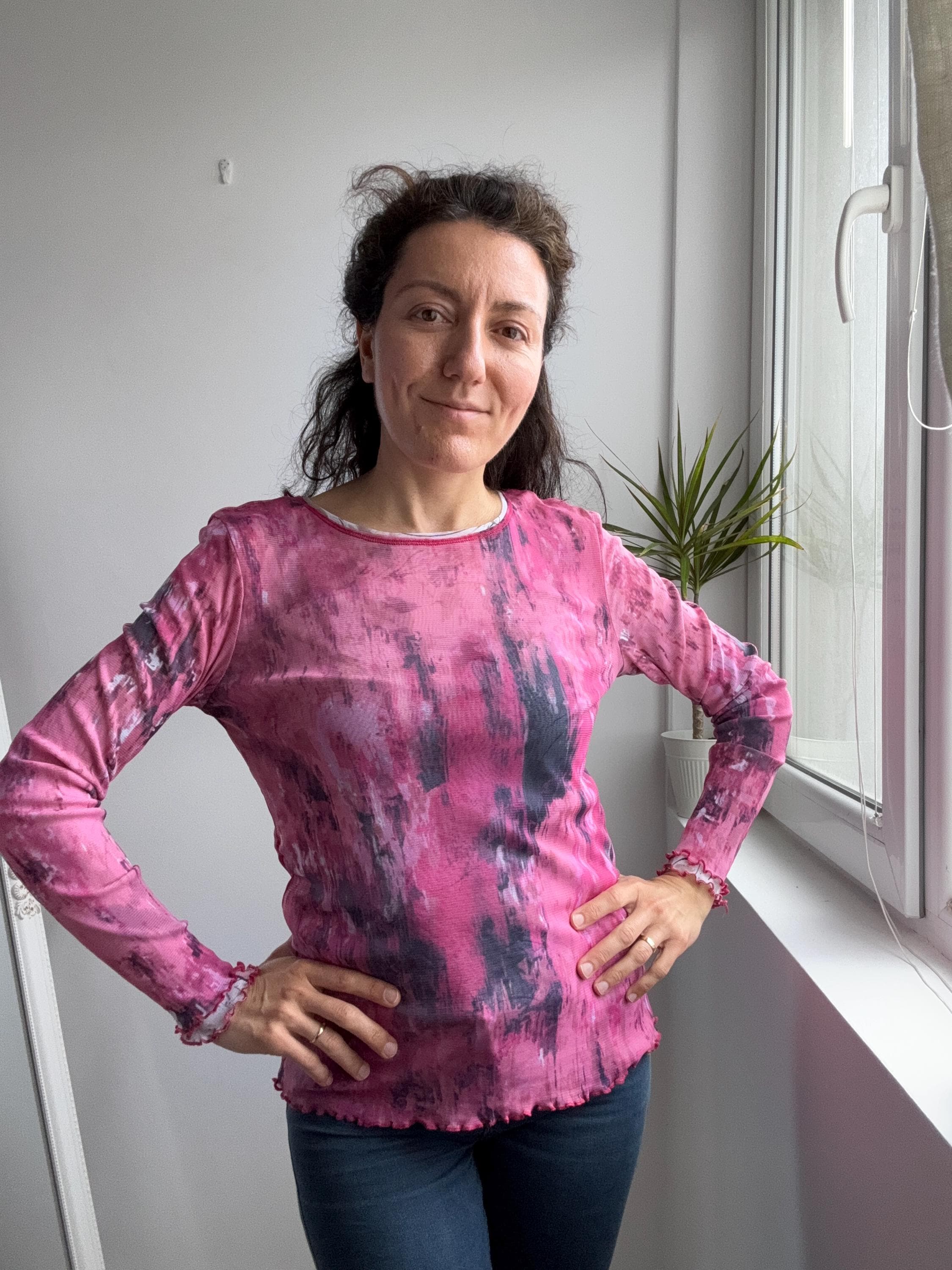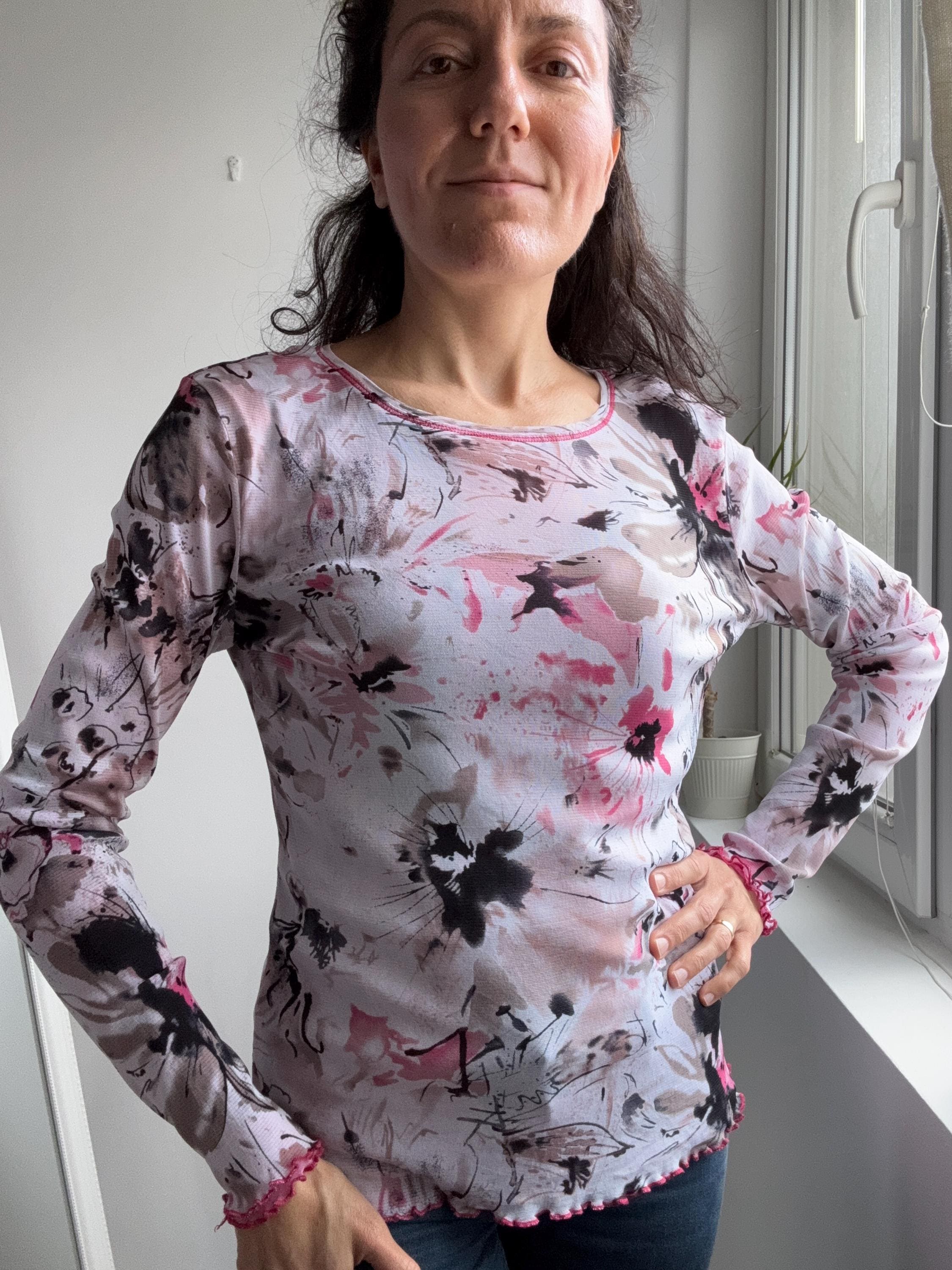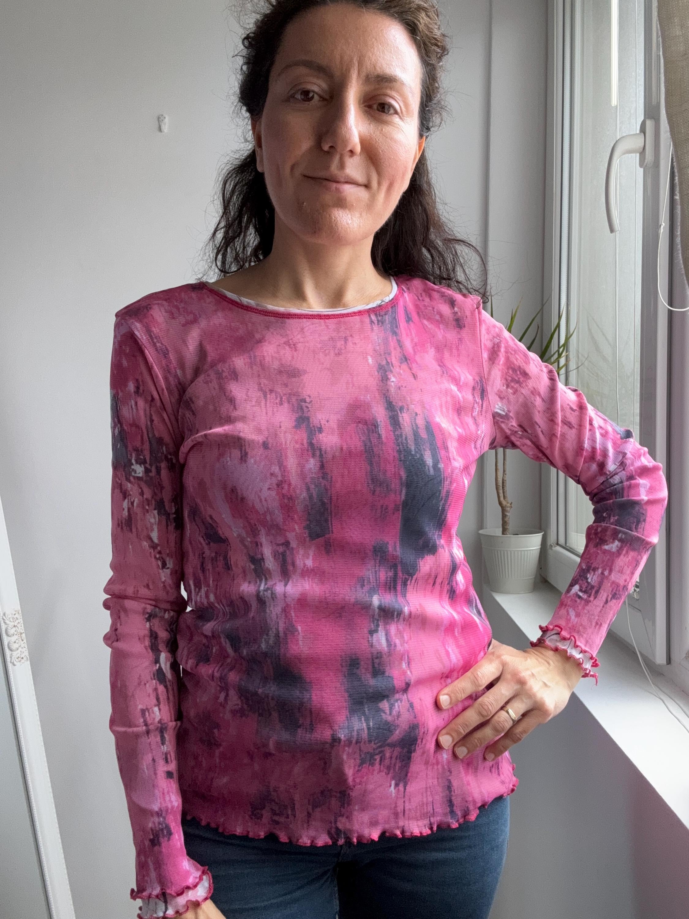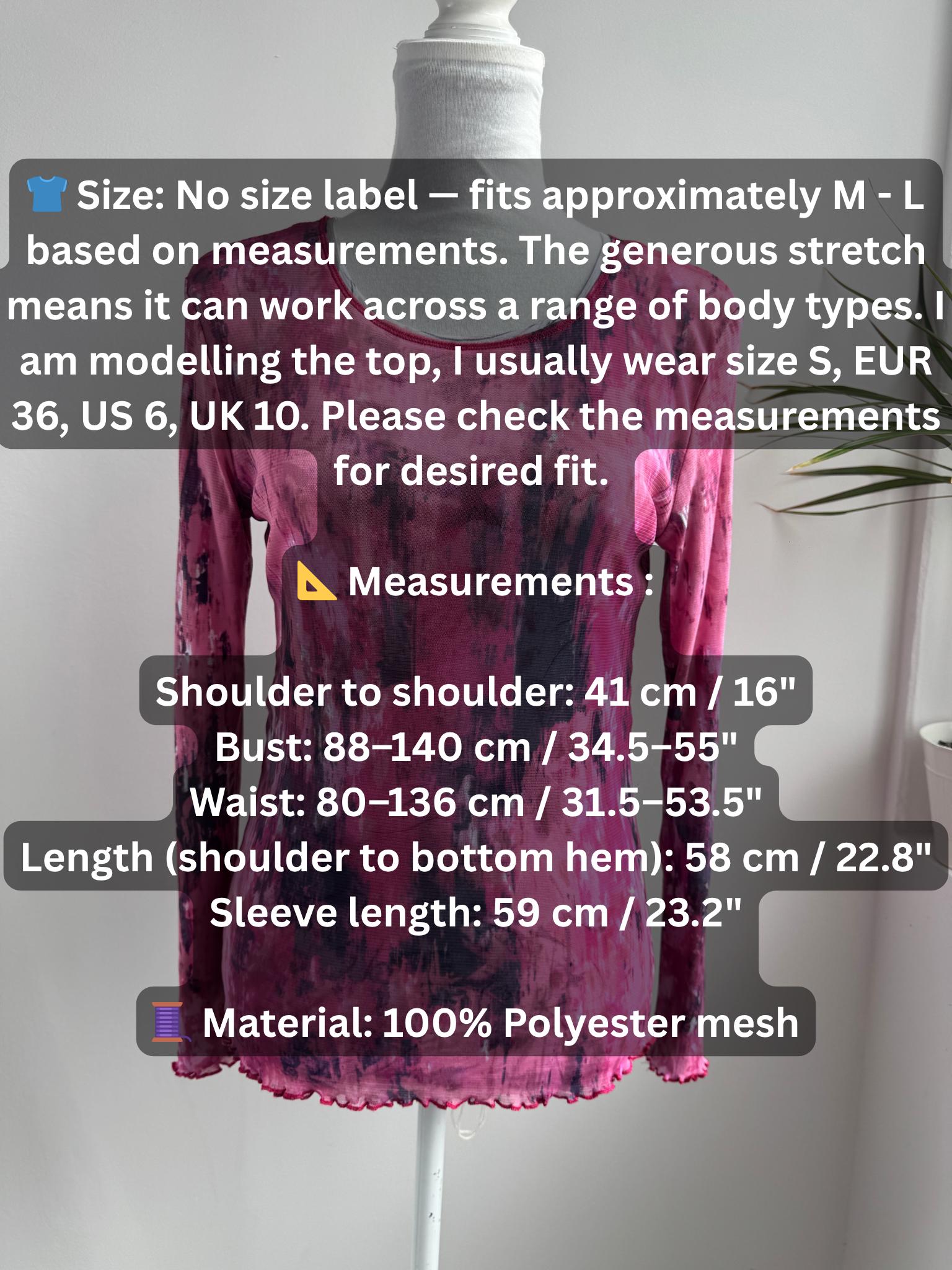 👕 Size: No size label — fits approximately M - L based on measurements. The generous stretch means it can work across a range of body types. I am modelling the top, I usually wear size S, EUR 36, US 6, UK 10. Please check the measurements for desired fit.