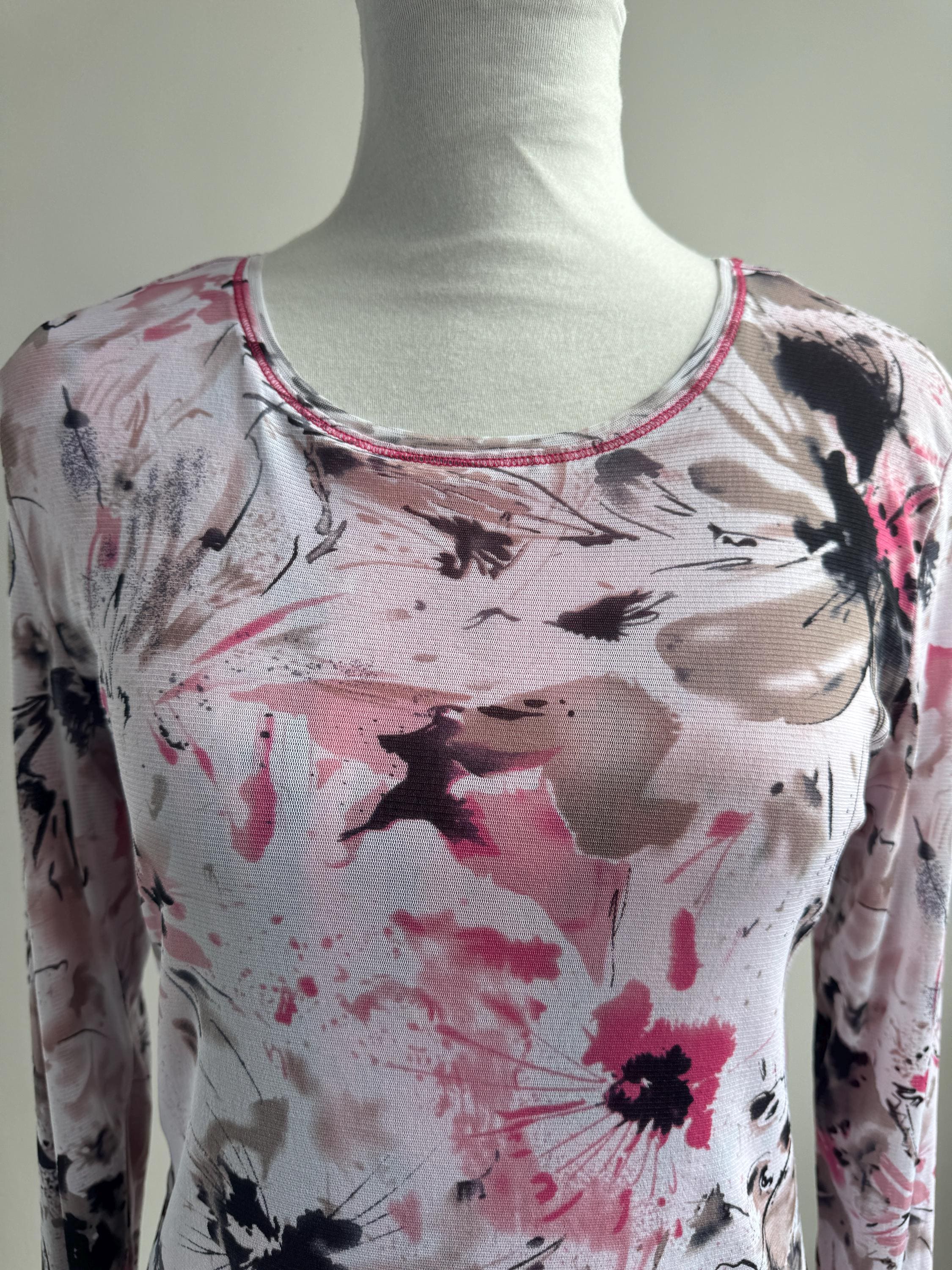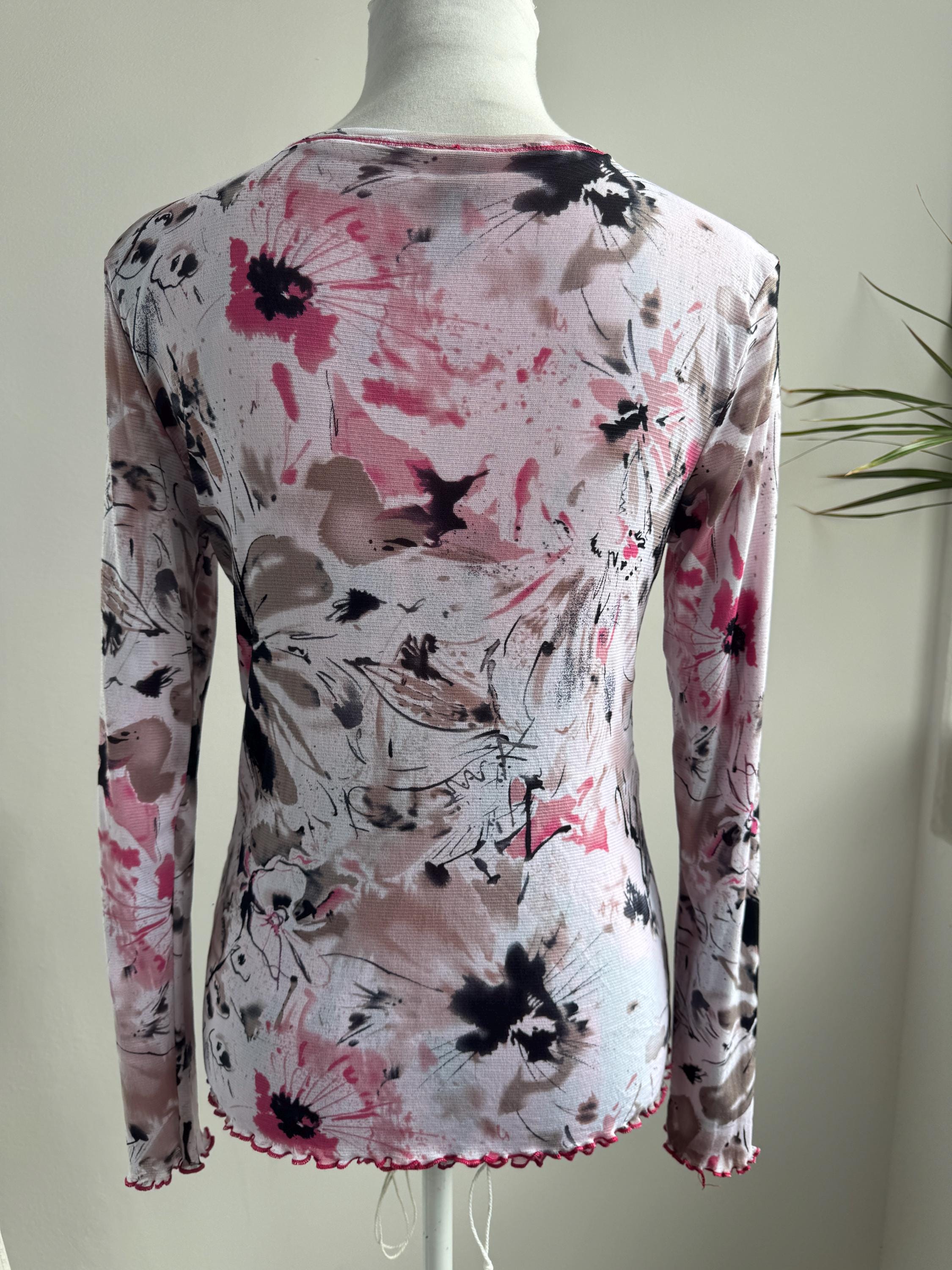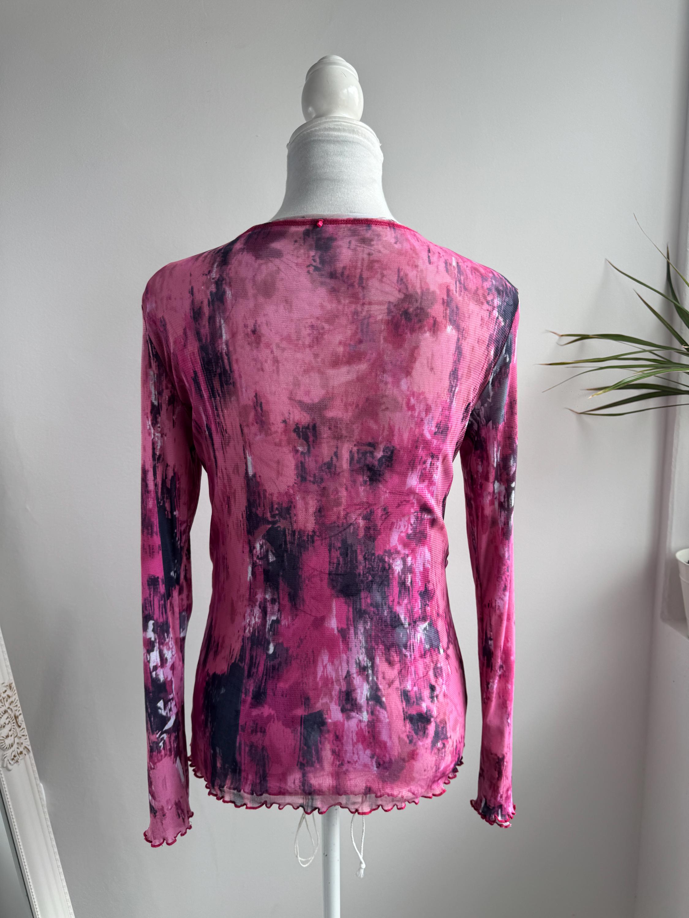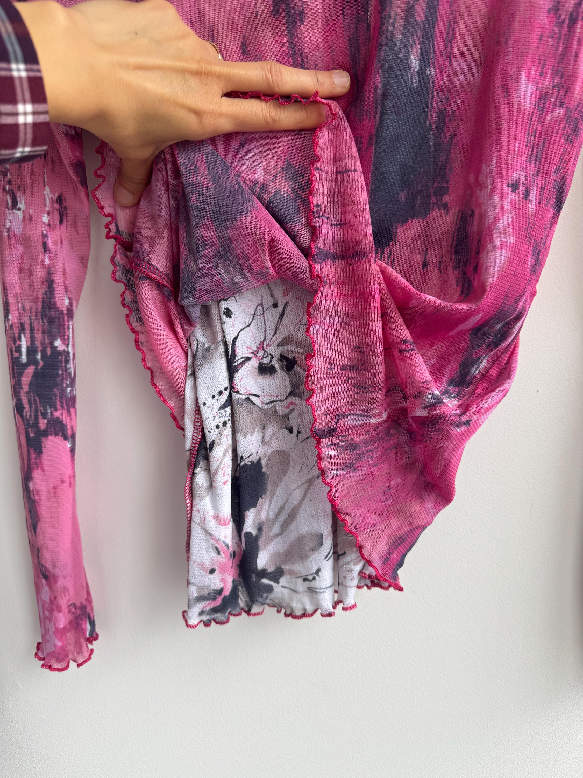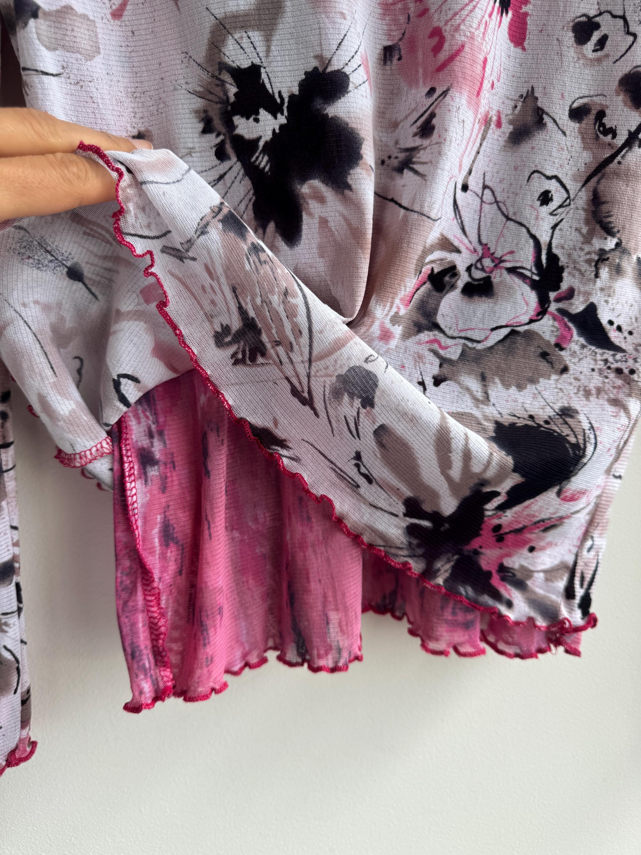 If you've been searching for that one piece that does double the work with twice the personality, this reversible double-sided mesh top is exactly what your wardrobe has been waiting for. Crafted from sheer, stretchy mesh with a beautiful lettuce ruffle hem and cuffs, this top features two completely different prints — flip it inside out and you've got an entirely new look.