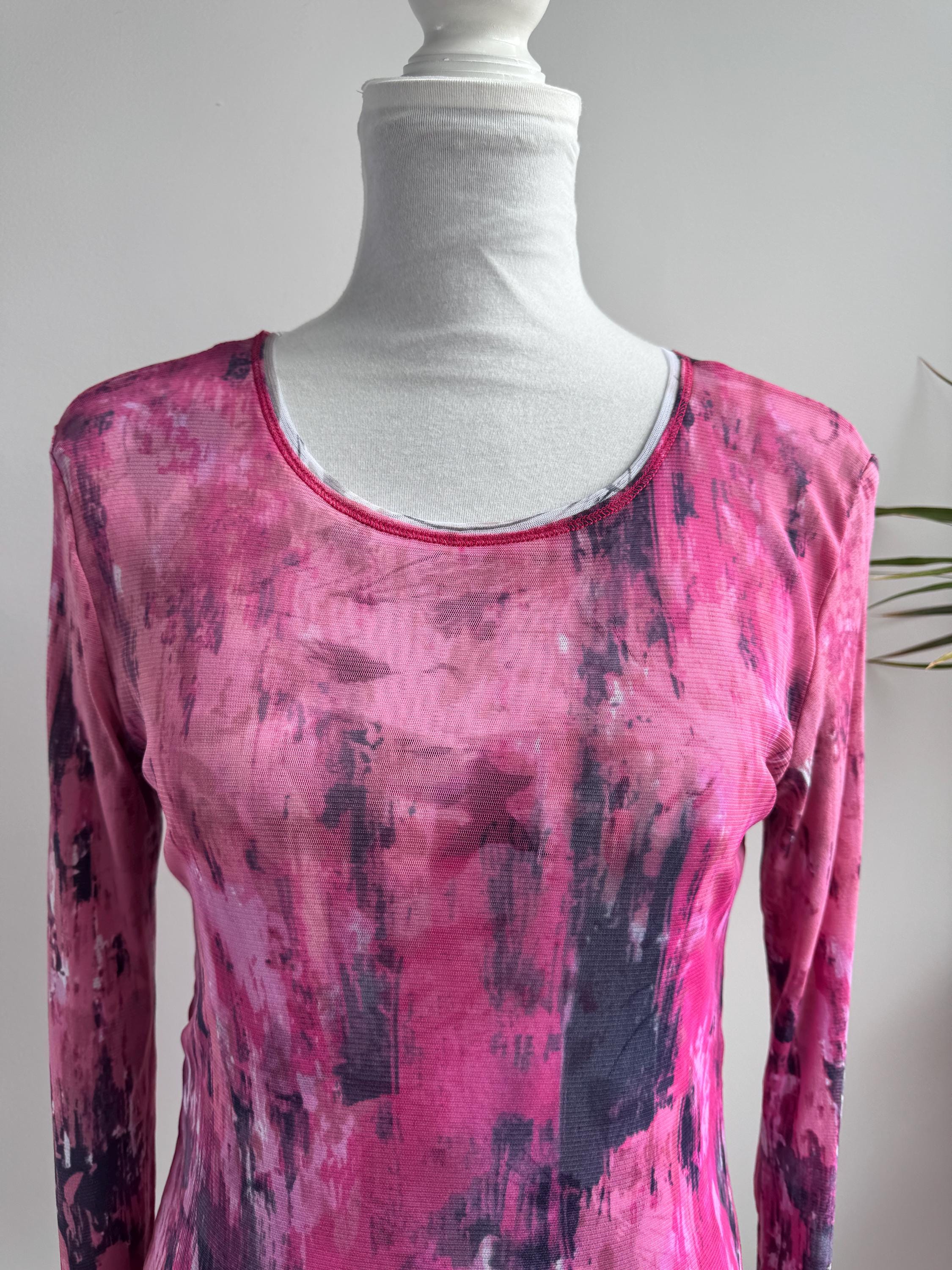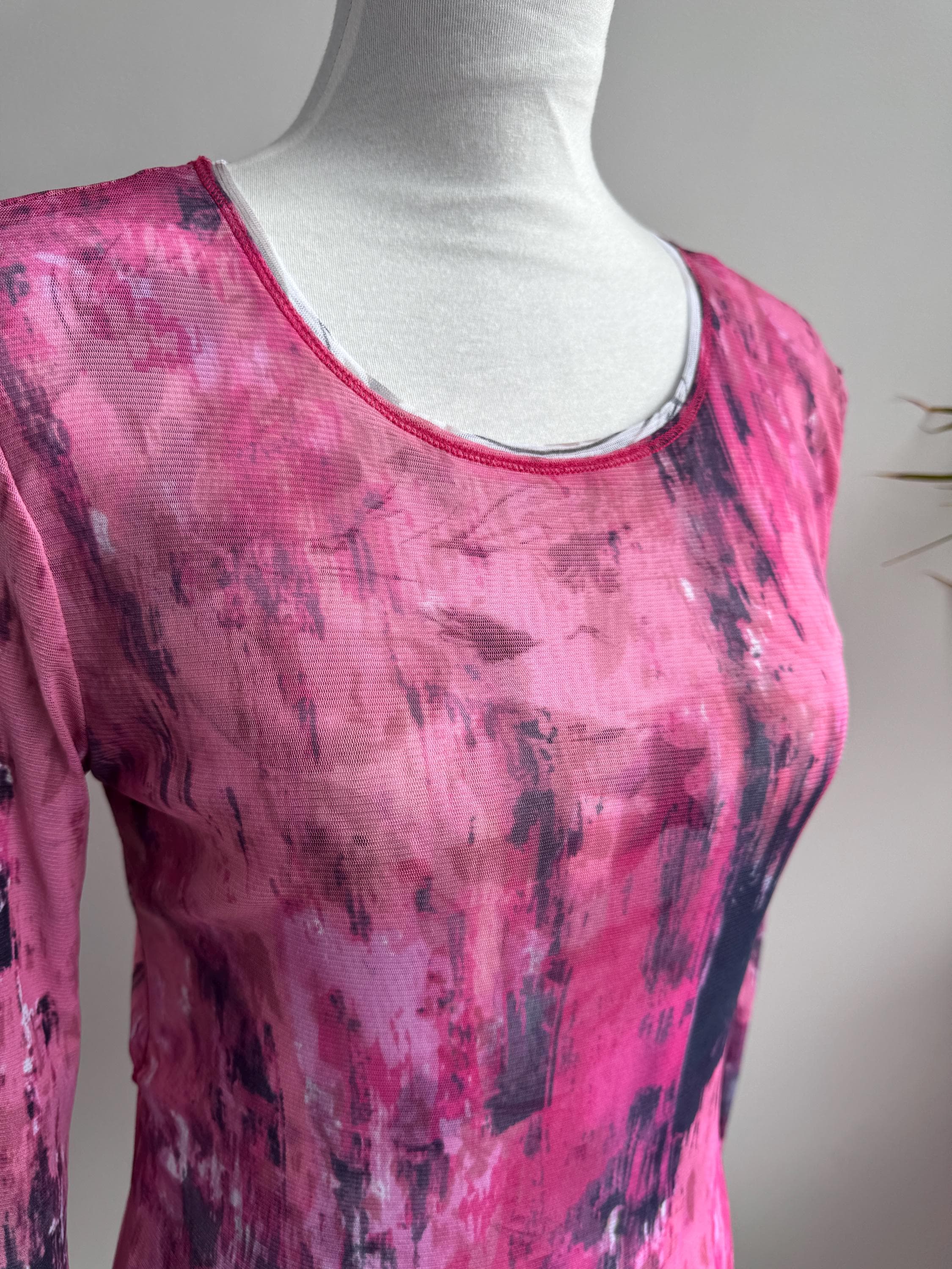 Side A: Hot pink / magenta with charcoal grey abstract brushstroke print