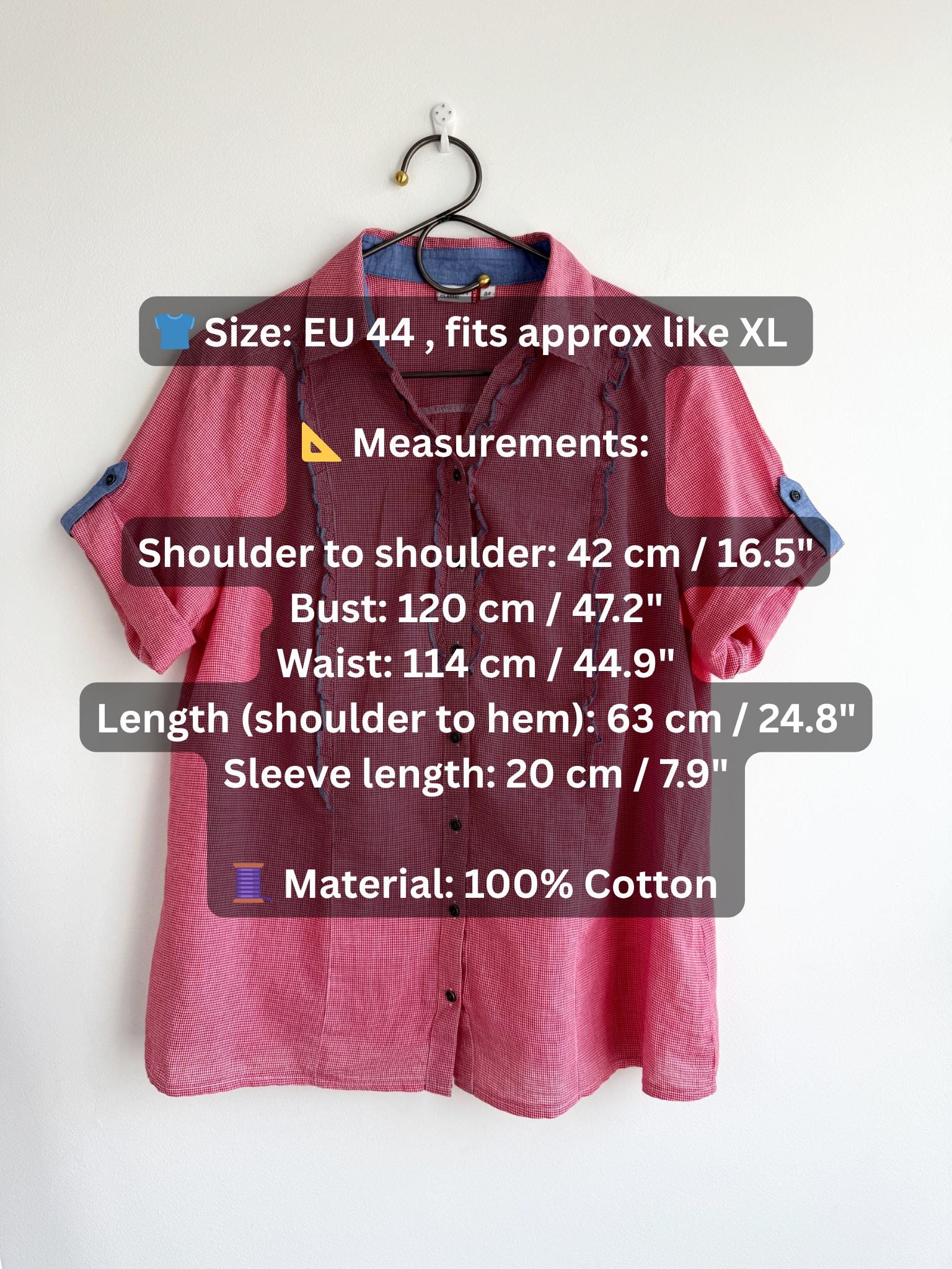 👕 Size: EU 44 , fits approx like XL — please refer to measurements below
