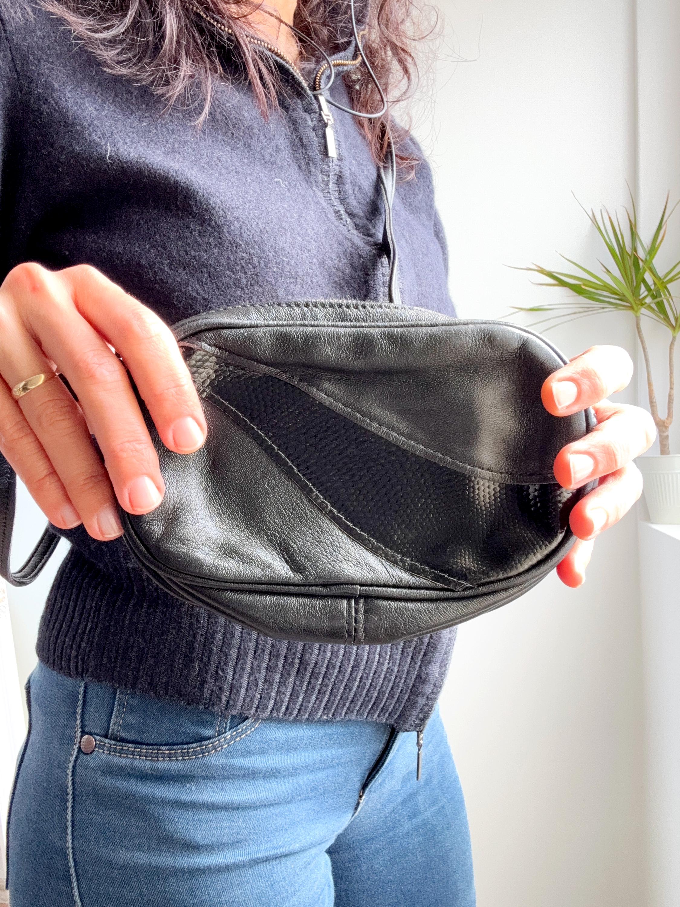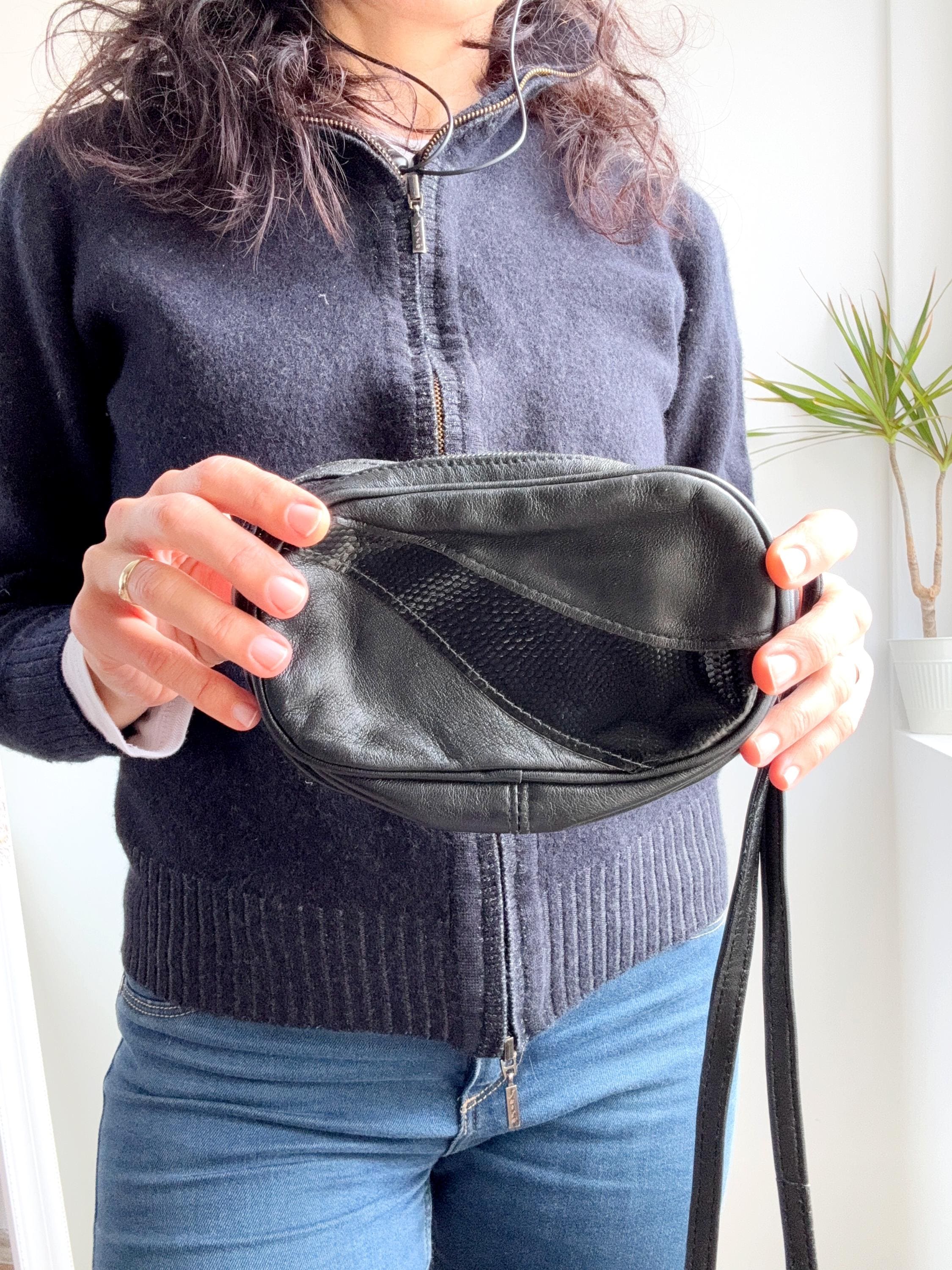 Crafted from soft, supple genuine leather with faux leather accents, the bag features a long, comfortable strap designed to sit perfectly at the hip. Whether you’re pairing it with a cozy sweater and denim for a casual daytime look or using it as a sleek evening accessory, this piece offers that timeless 80s-into-90s aesthetic that never goes out of style.