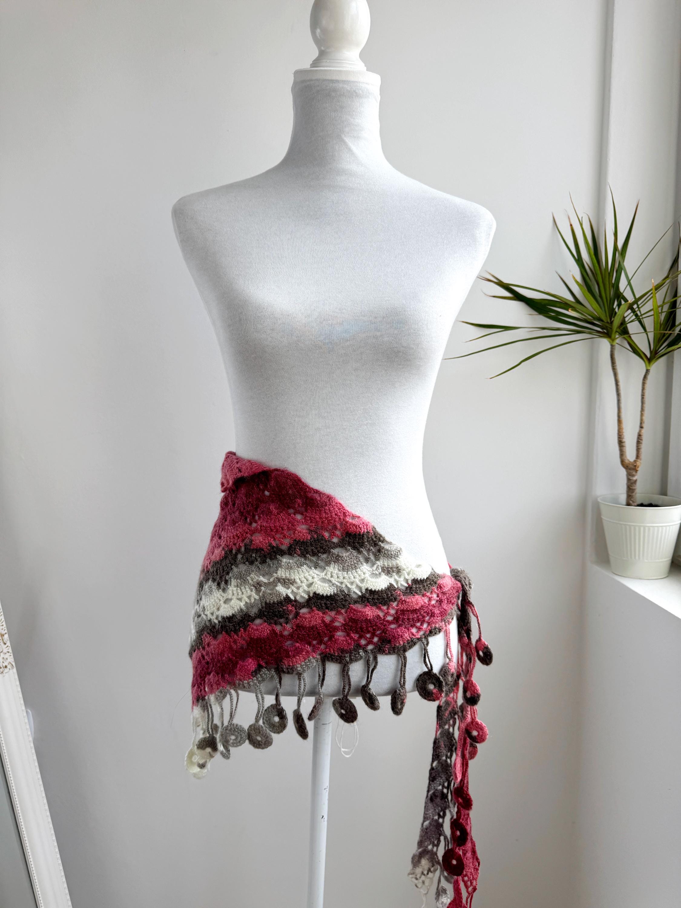 Versatile enough to wear as a classic triangle shawl draped over the shoulders, wrapped as a cozy headscarf, tied as a boho hip wrap or festival belt, or looped as a long decorative scarf, this piece truly does it all. Whether you're heading to a folk festival, a farmers market, or simply want to add texture and warmth to an everyday outfit, this shawl delivers effortless bohemian style.