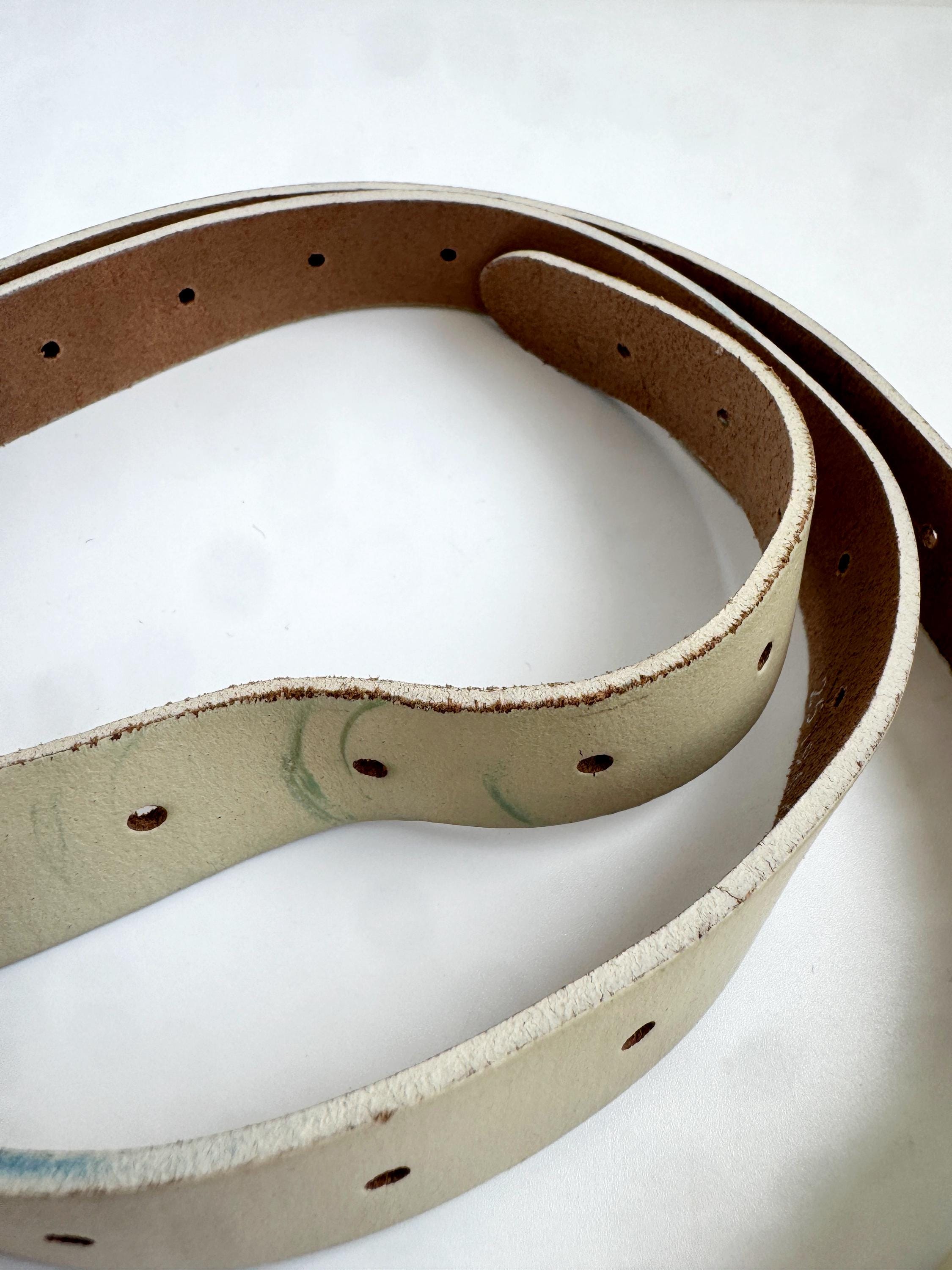 ✨ Condition: Good vintage condition — light surface wear and minor scuffing to the leather edges consistent with age and use; buckle shows light patina. All holes intact. No cracks or breaks in the leather.