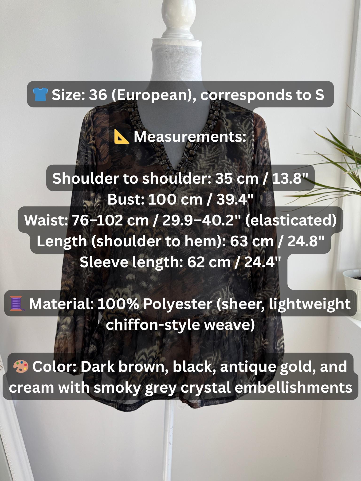 👕 Size: 36 (European), corresponds to S