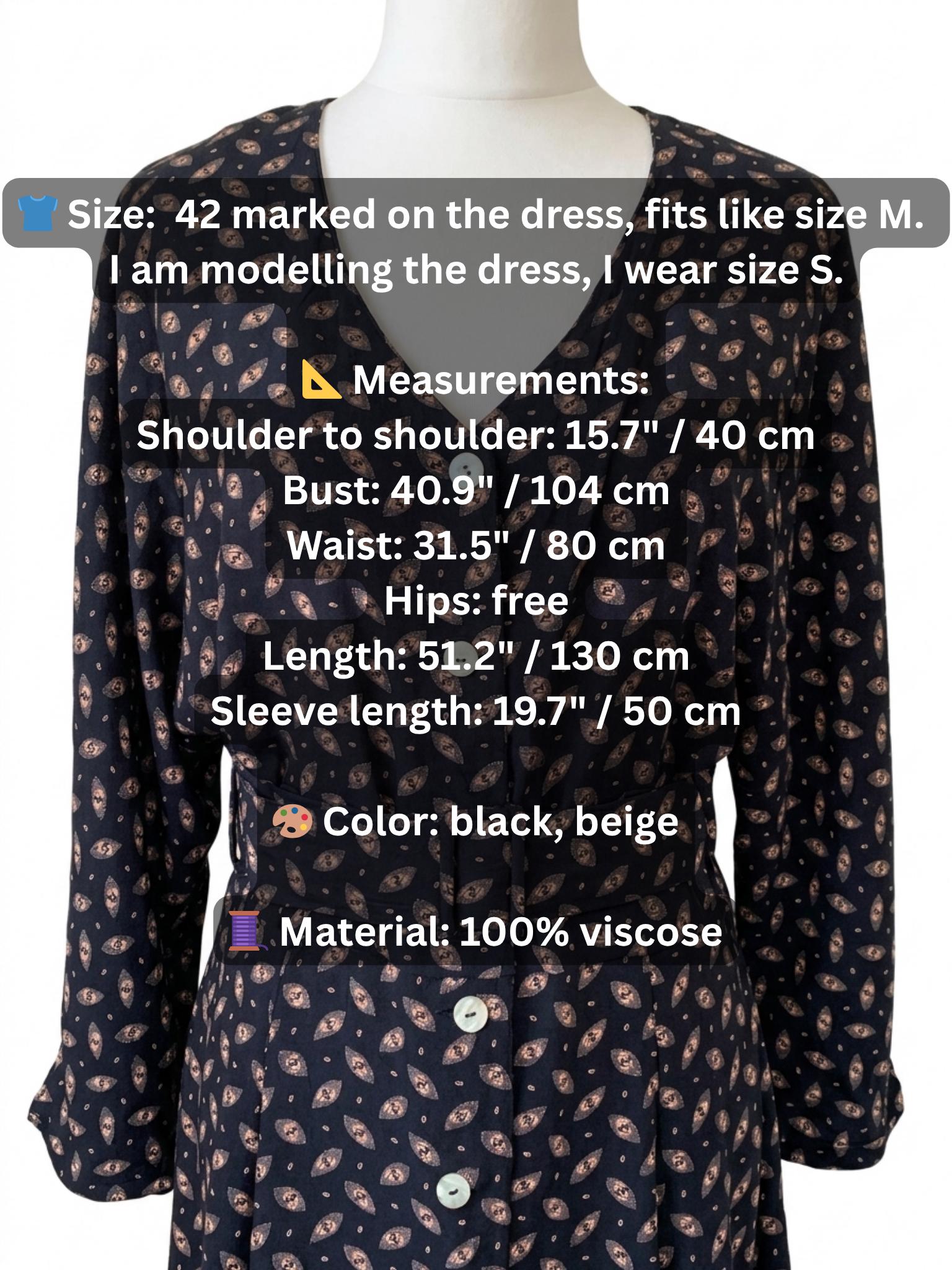 👕 Size: 42 marked on the dress. This shirt dress fits like size M. I am modelling the dress, I wear size S.
