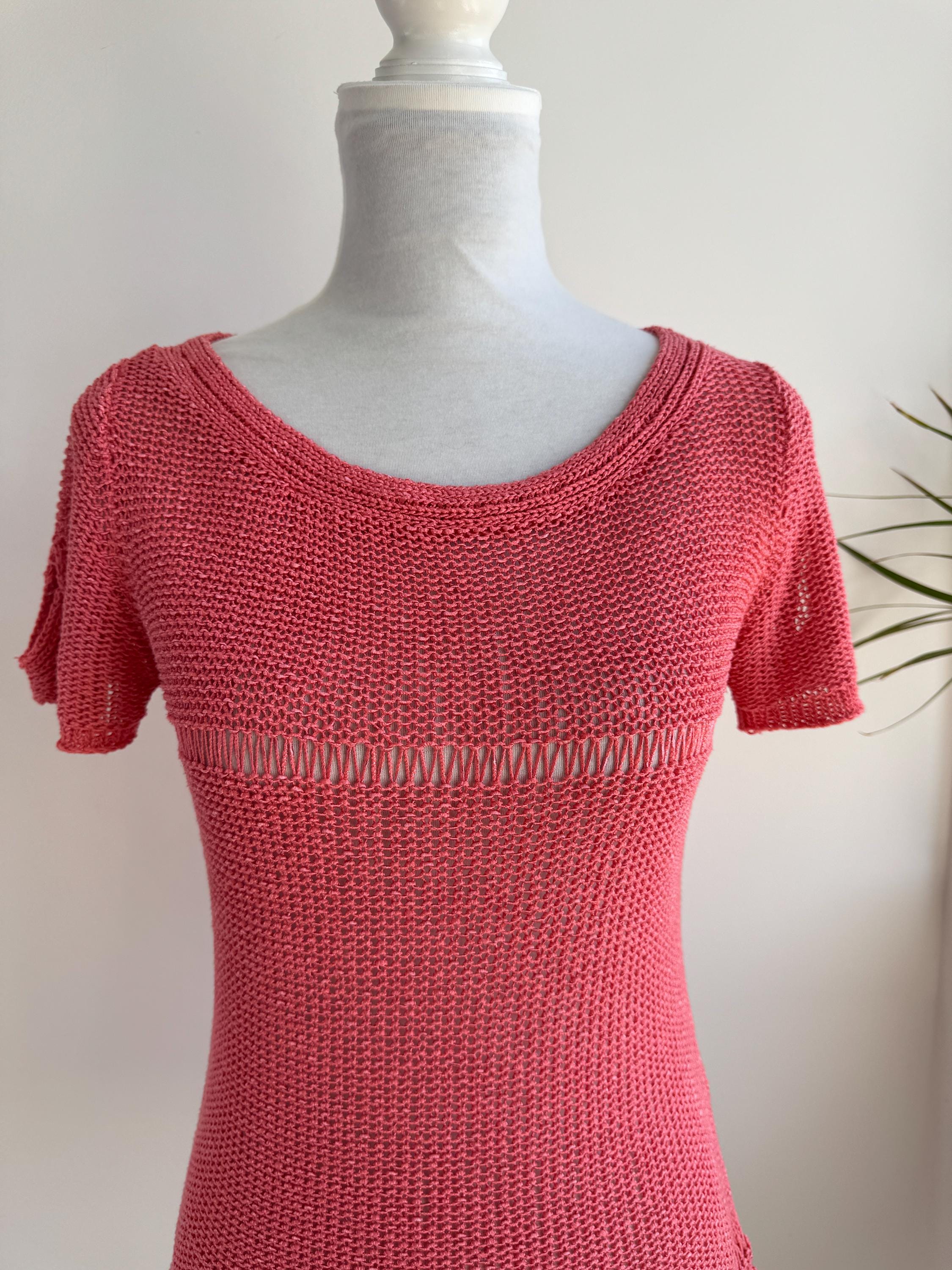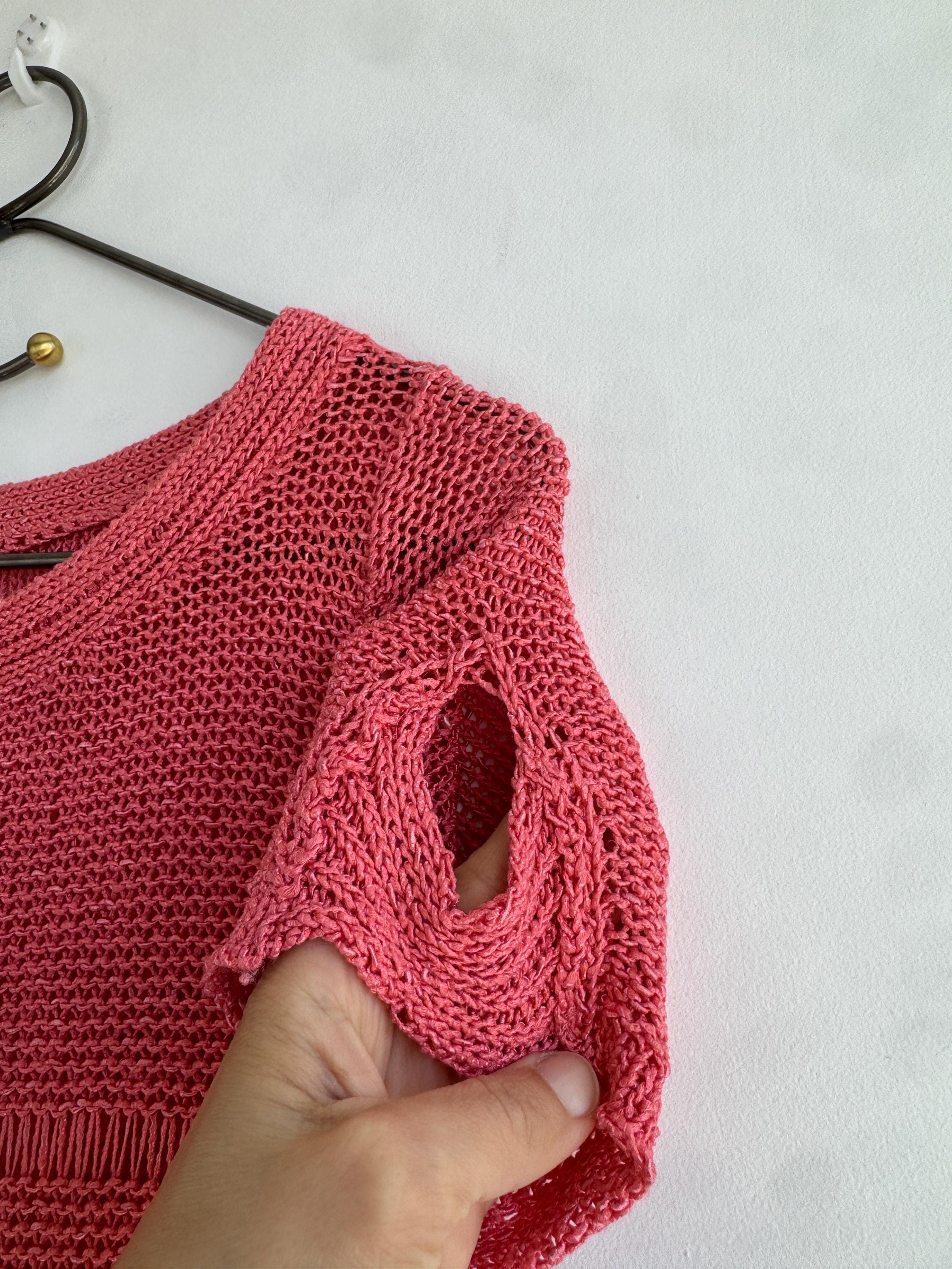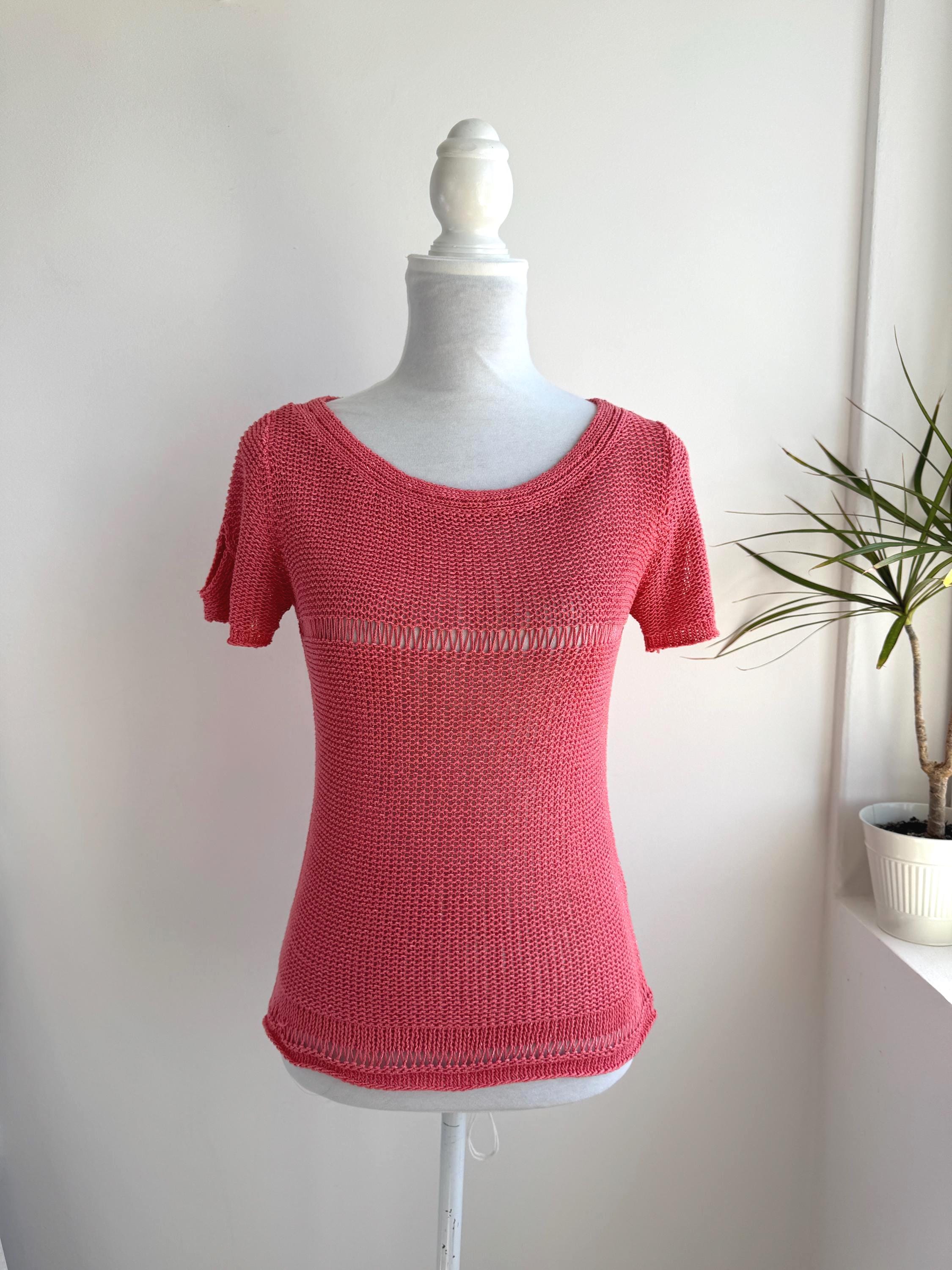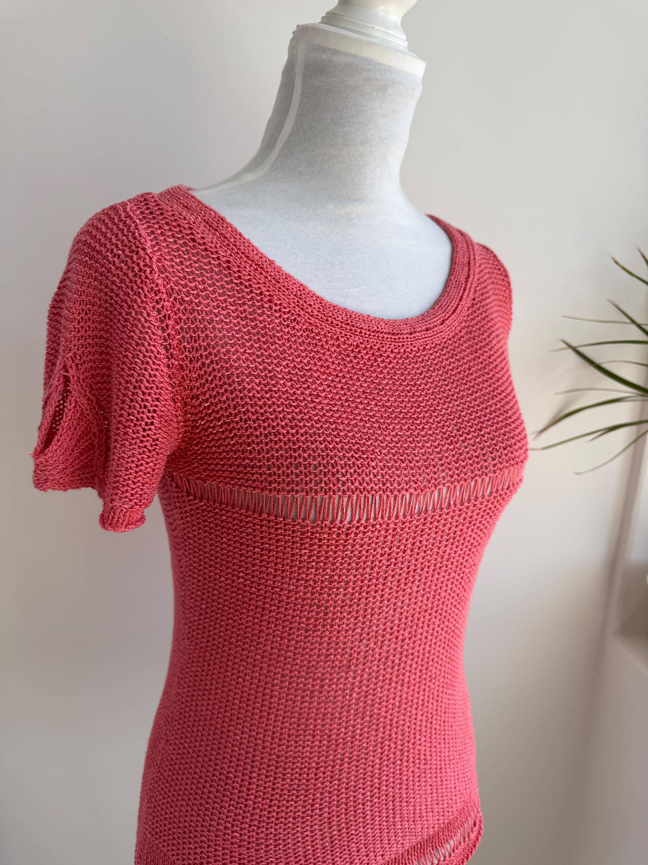 This vintage coral pink linen knit top is the ultimate breathable summer blouse for your sustainable wardrobe. Expertly crafted from a high-quality linen cotton blend, this short sleeve salmon pink sweater offers a beautiful natural texture and a timeless boho aesthetic. Whether you are searching for a cottagecore knit or a chic coastal grandmother staple, this versatile open work crochet style top provides a flattering, airy fit that transitions perfectly from a seaside stroll to a casual evening out.