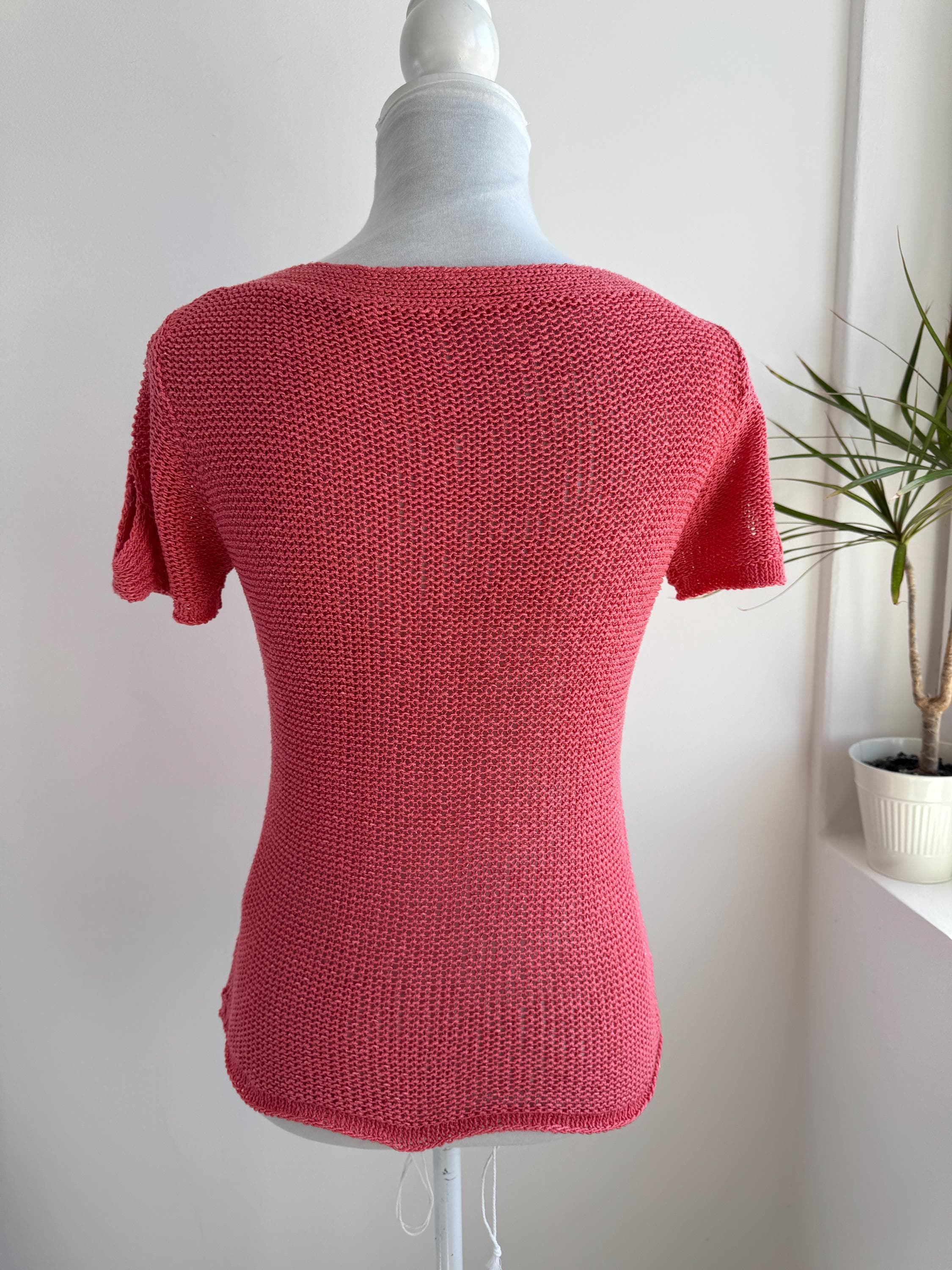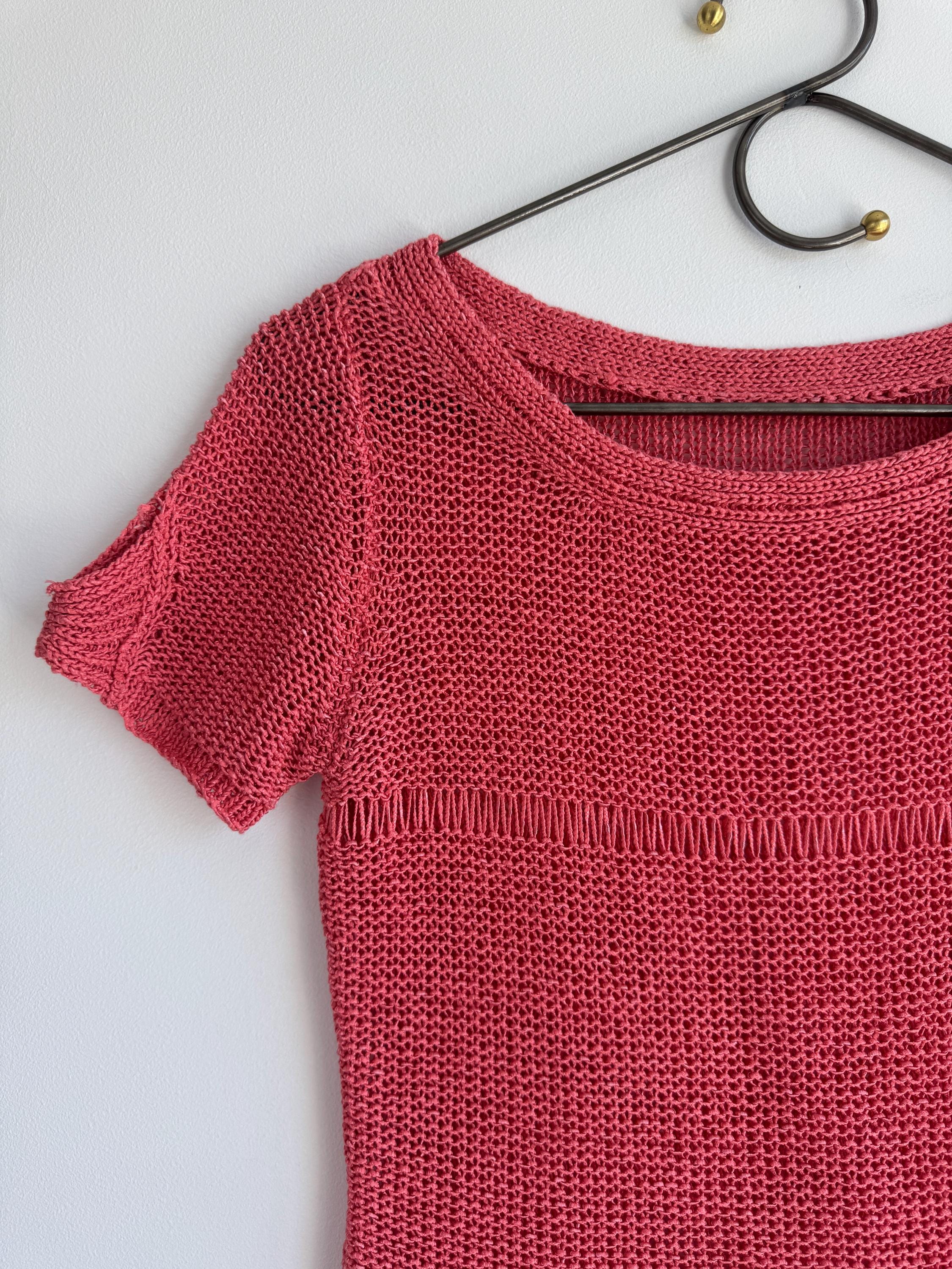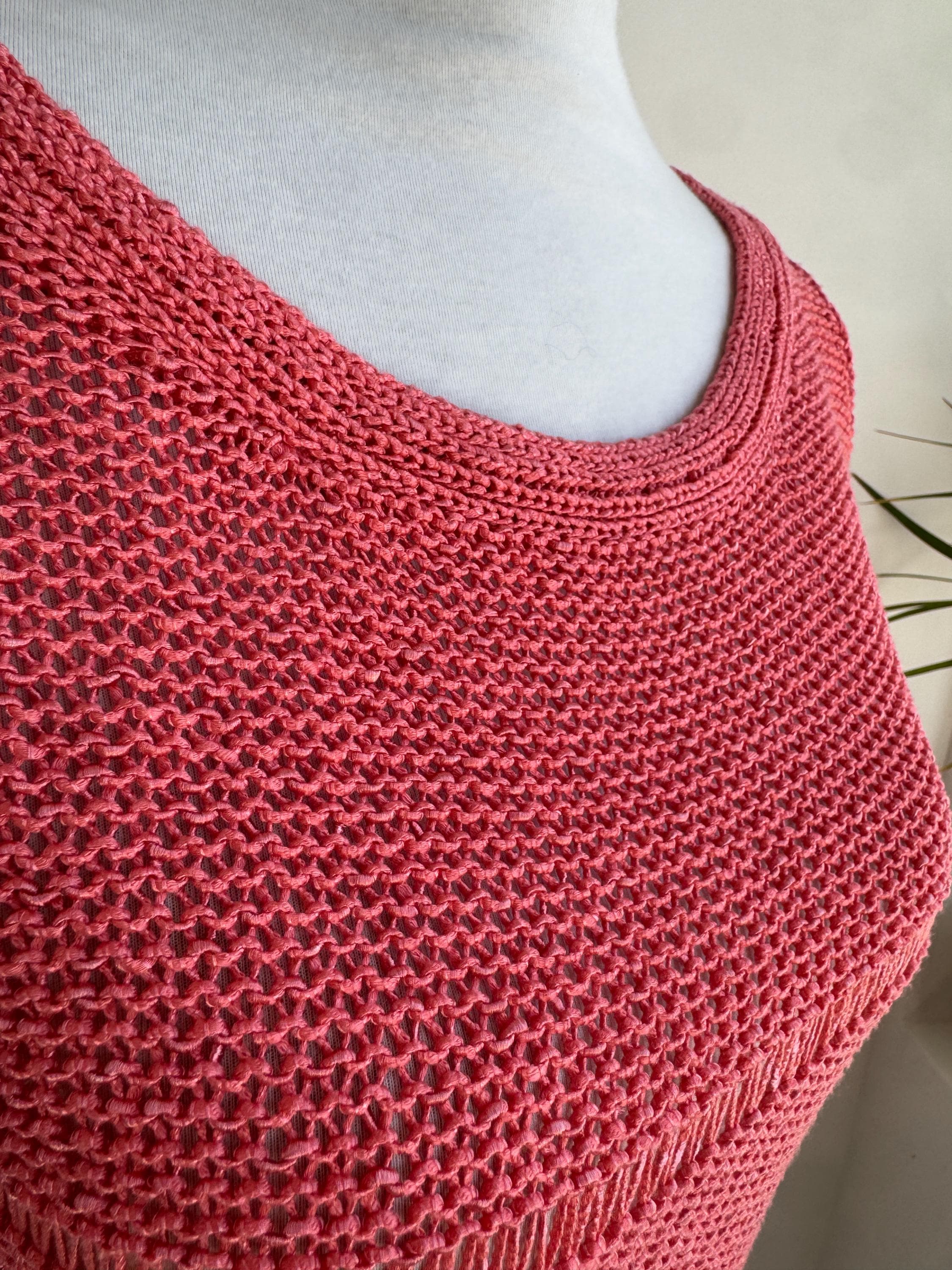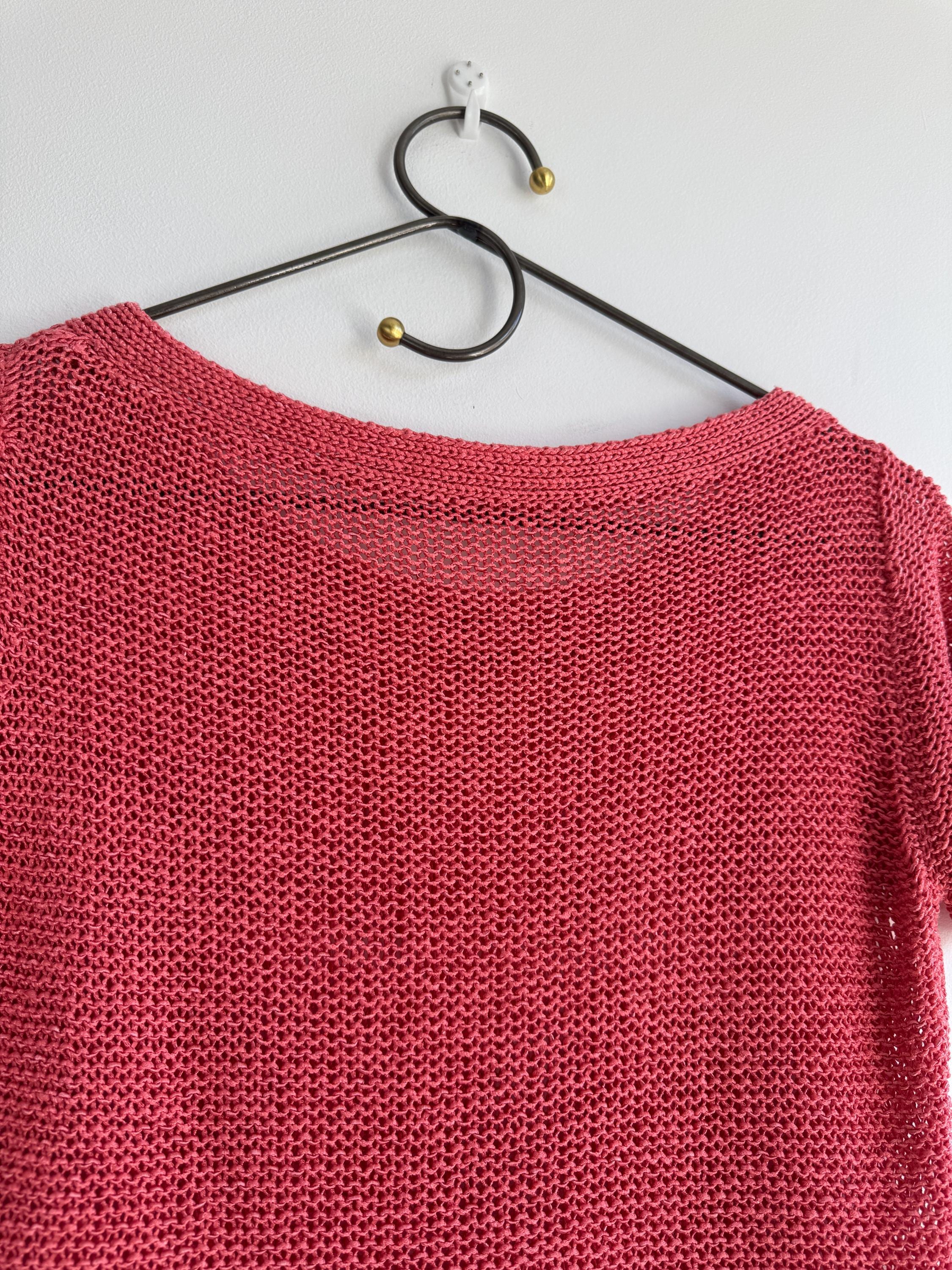 This vintage coral pink linen knit top is the ultimate breathable summer blouse for your sustainable wardrobe. Expertly crafted from a high-quality linen cotton blend, this short sleeve salmon pink sweater offers a beautiful natural texture and a timeless boho aesthetic. Whether you are searching for a cottagecore knit or a chic coastal grandmother staple, this versatile open work crochet style top provides a flattering, airy fit that transitions perfectly from a seaside stroll to a casual evening out.