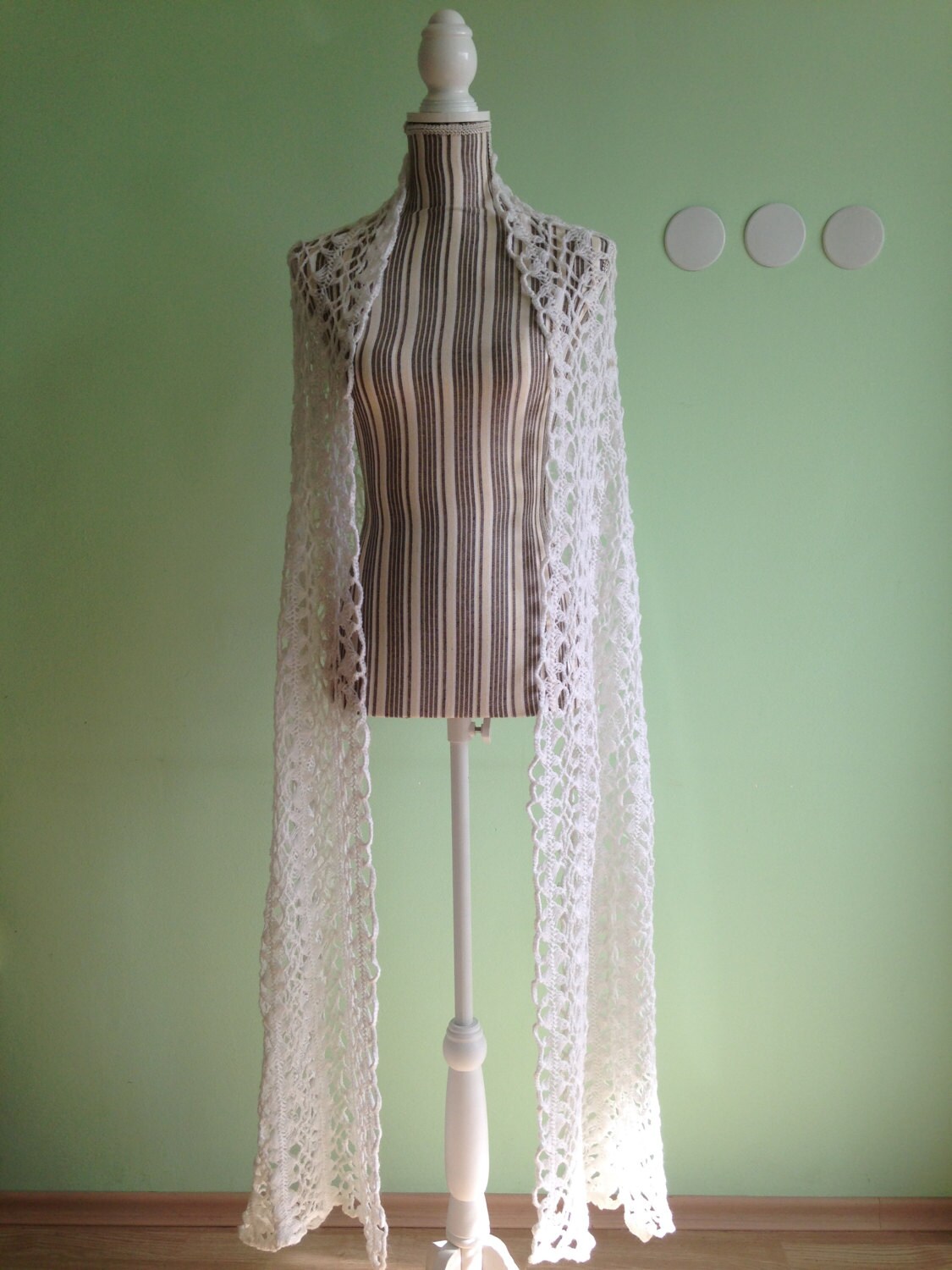 This is an amazing chunky knit oversized crochet shawn in snow white color. This pretty boho chic long scarf is made of very soft and feels great when you touch it. It is made of fluffy acrylic wool yarn. This Victorian inspired cottage chic wrap is a great addition to any spring or fall outfit. It will keep you warm in the cool days. You can even wear it in the summer to cover up your shoulders in the cool breezy nights. The beautiful see through lace of this scarf will beautifully reveal your skin and show it off. You can wear this rustic womens scarf in multiple ways - as a shoulder cover up, or around your neck, you name it. It is long enough to provoke you to unleash your imagination and wear it in any way you like. This cozy soft scarf will also make a wonderful gift for your mother, sister, girlfriend, cousin or best friend.