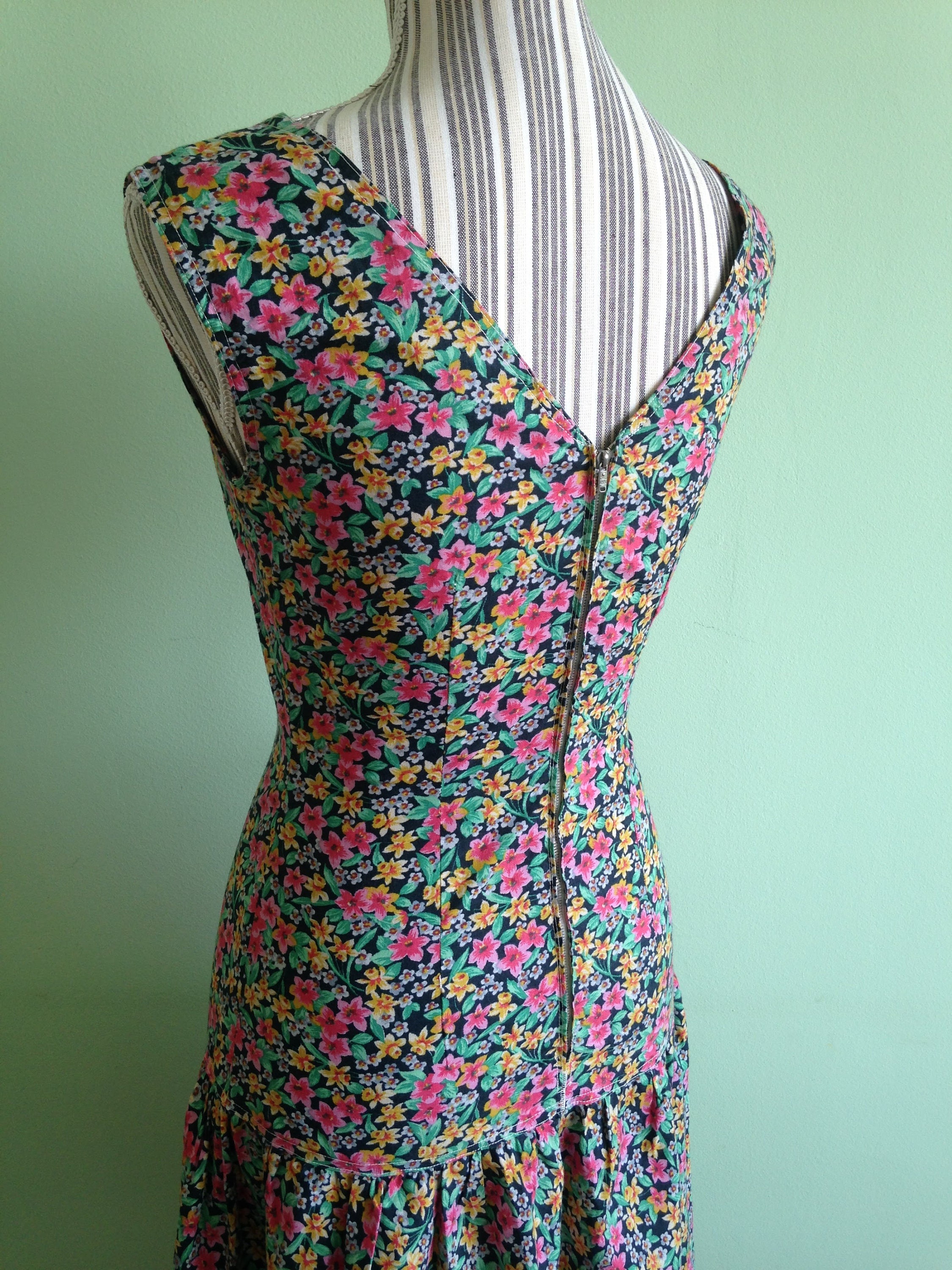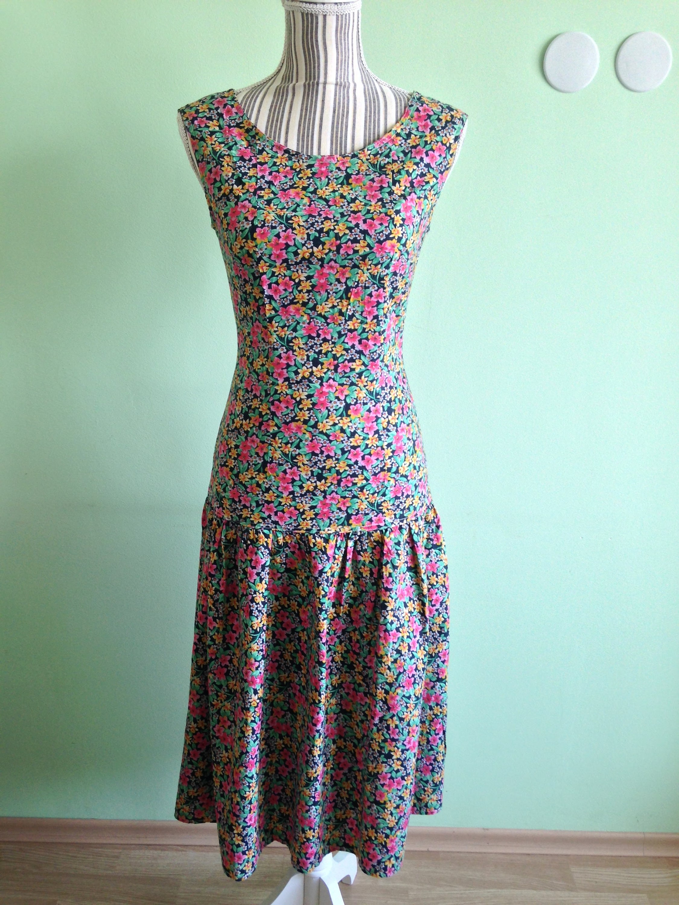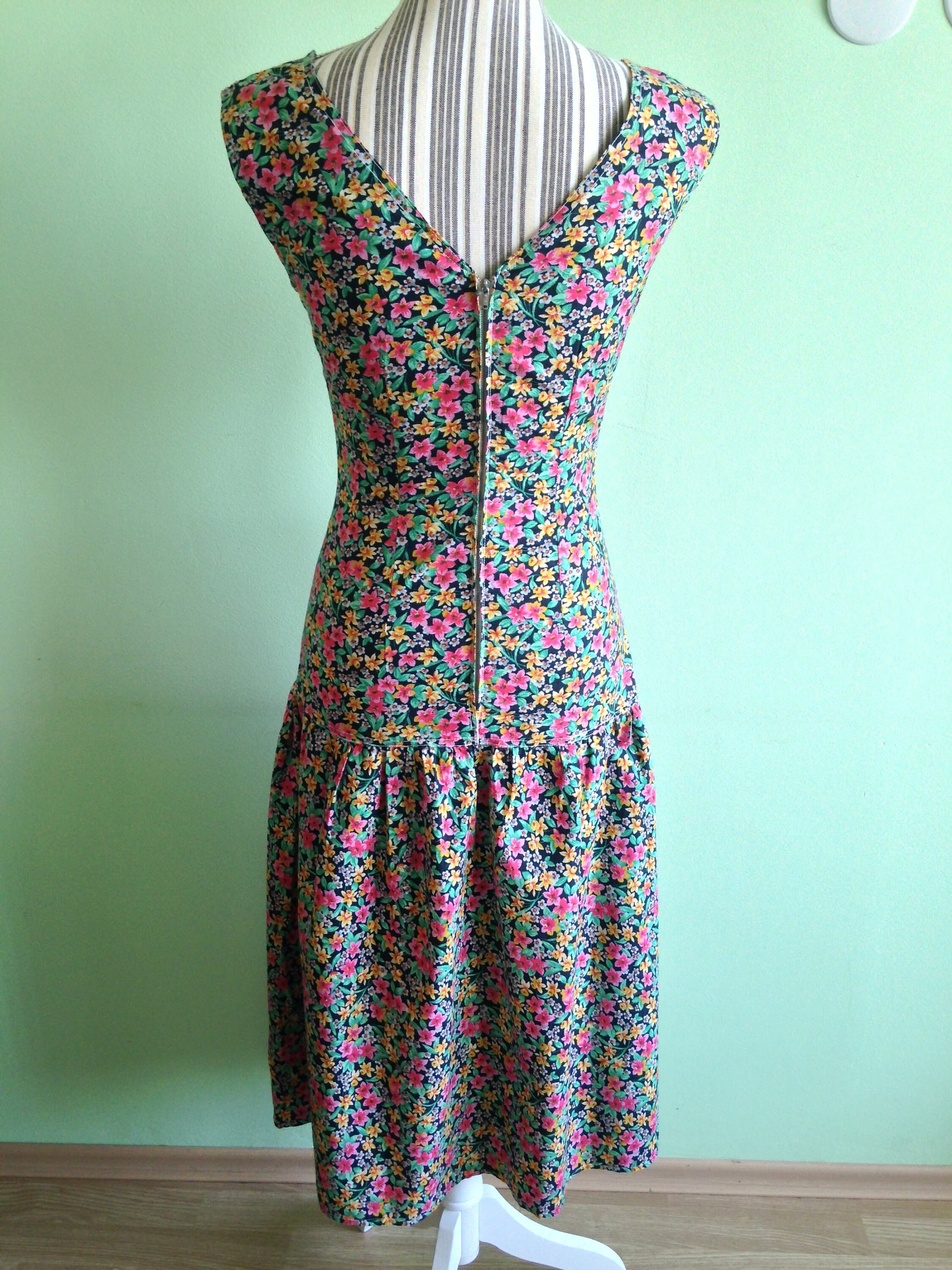The only wear you can spot is that the fabric has faded a bit, however as the fading is all over the fabric you can barely tell that the colors were brighter a couple of decades ago. This drop waist dress has a great fit and it will bring life to your closet.