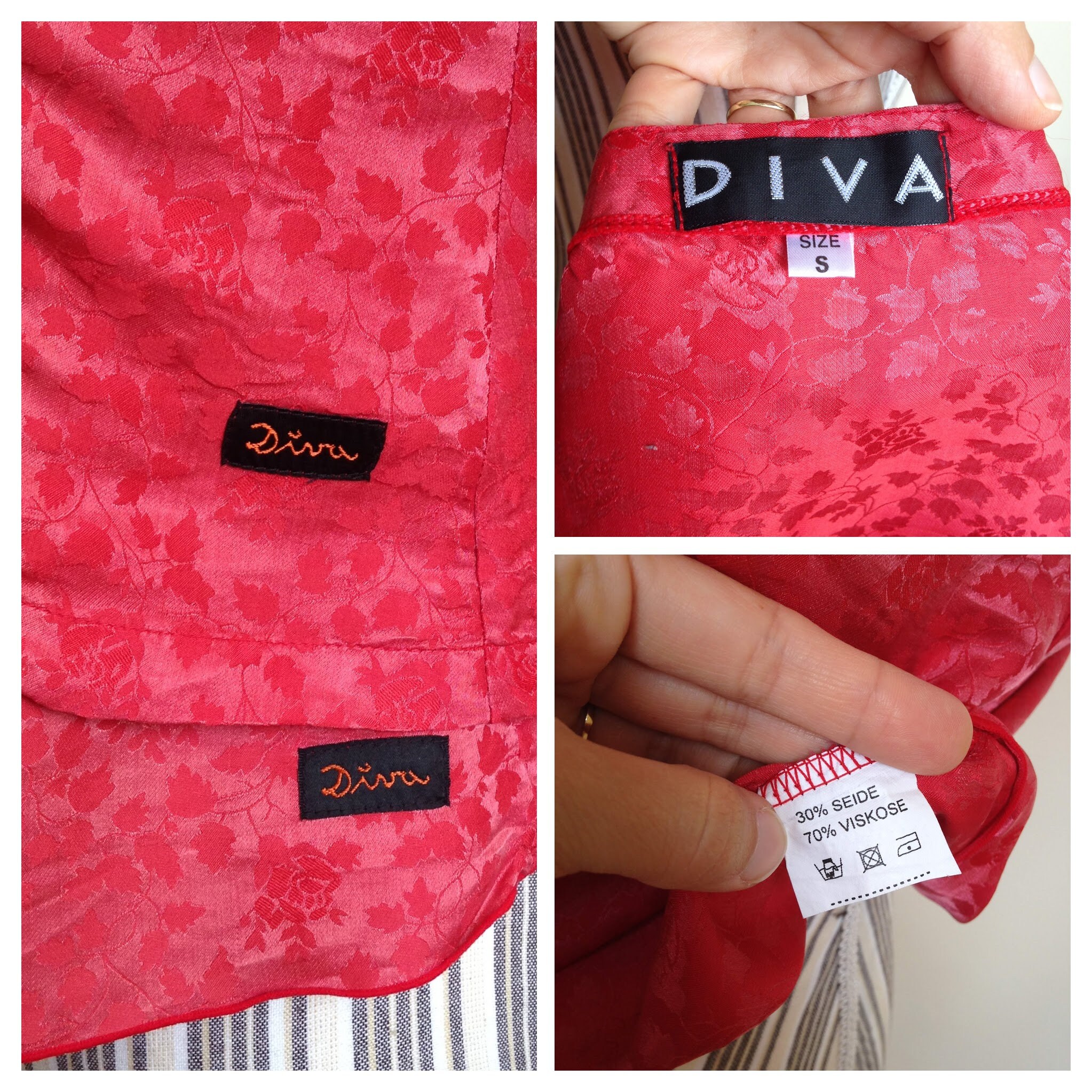 I carefully hand wash all of my vintage items, so they are ready to wear as soon as you receive them. Some of my vintage items have care instructions marked on the label. For the ones that do not have care instructions, I would recommend to wash them by hand or machine wash them using a gently cycle and warm water and wash them with similar colors.