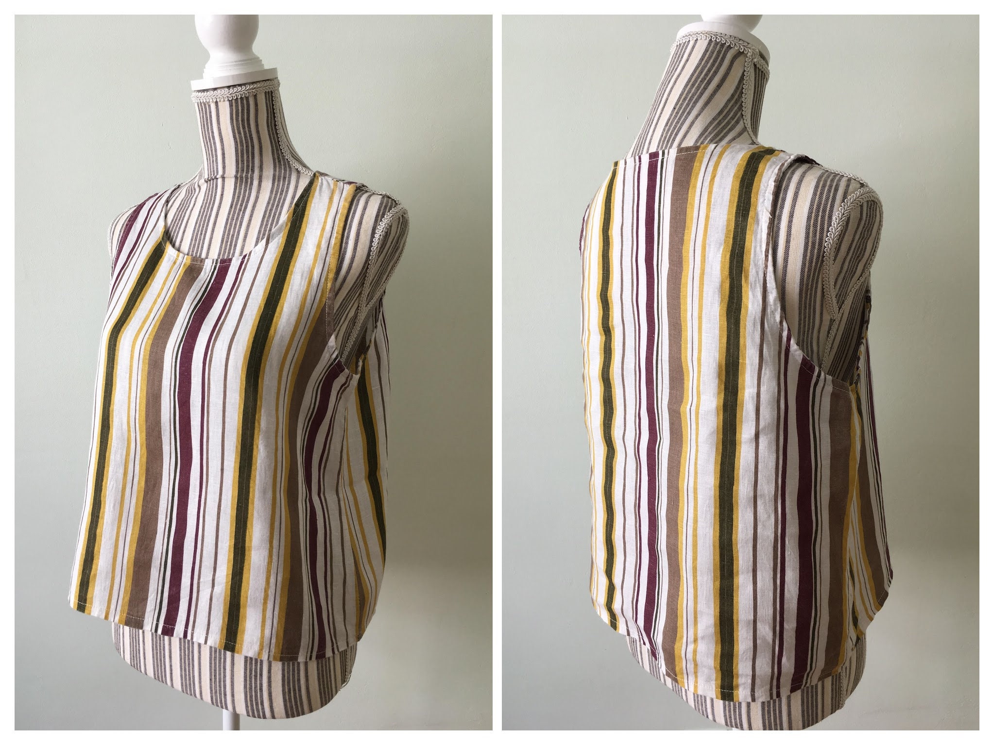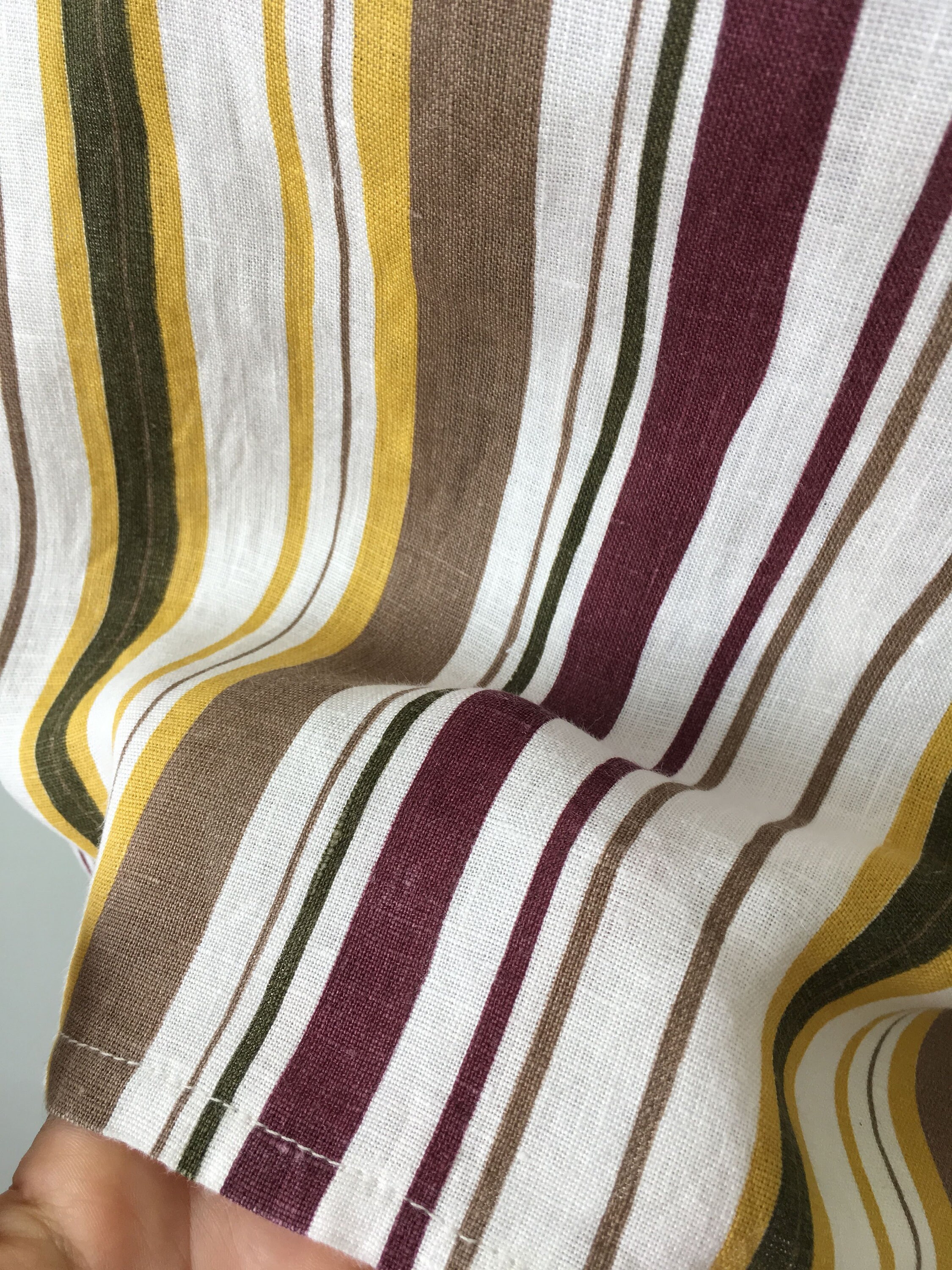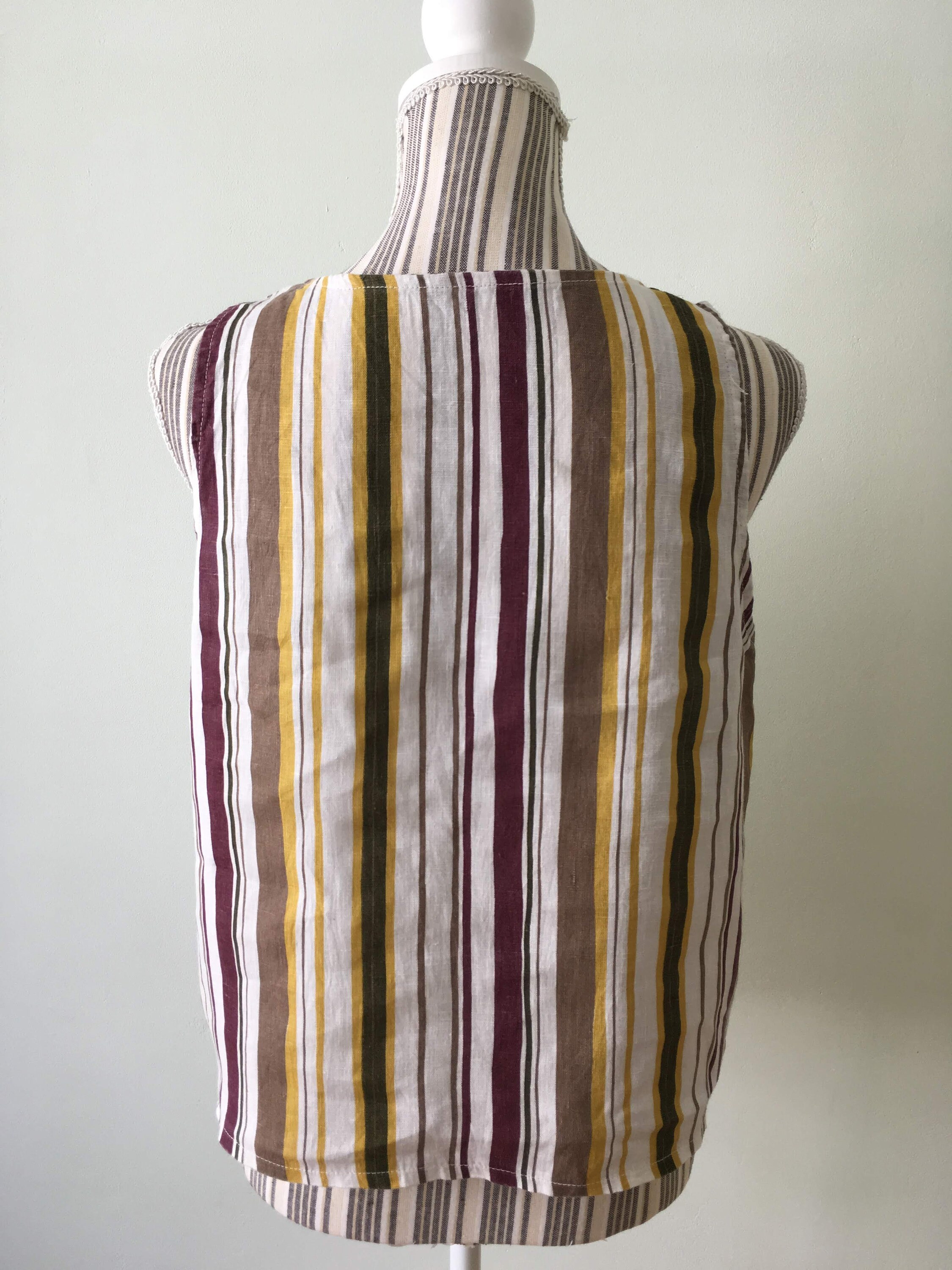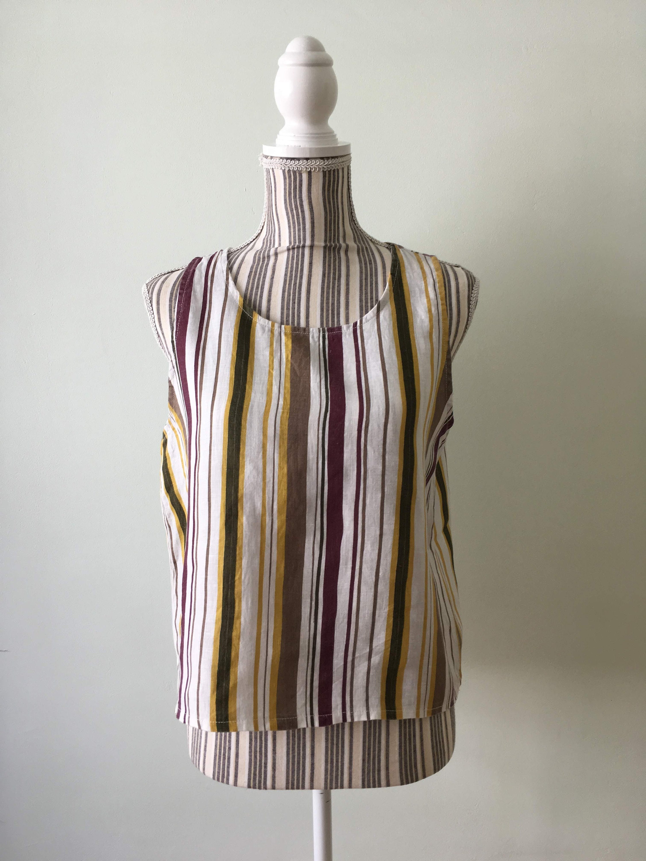This is a vintage 90s pure linen summer top with vertical stripes. It has a loose boxy fit. There is no label, it fits like M.