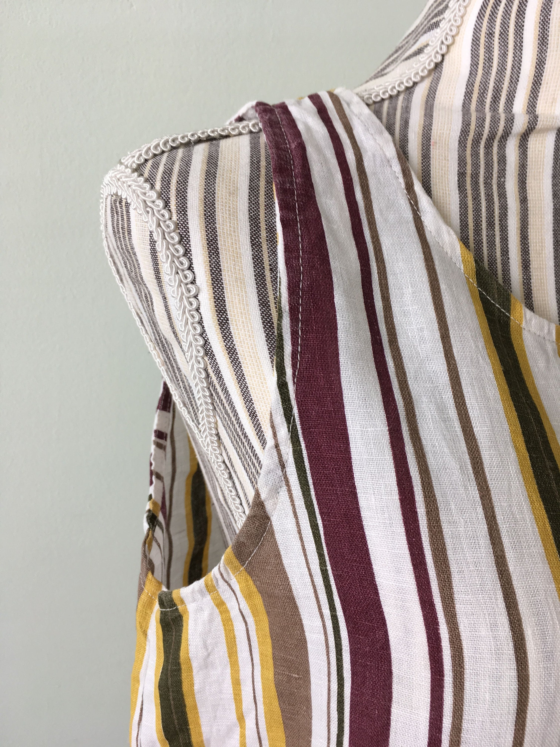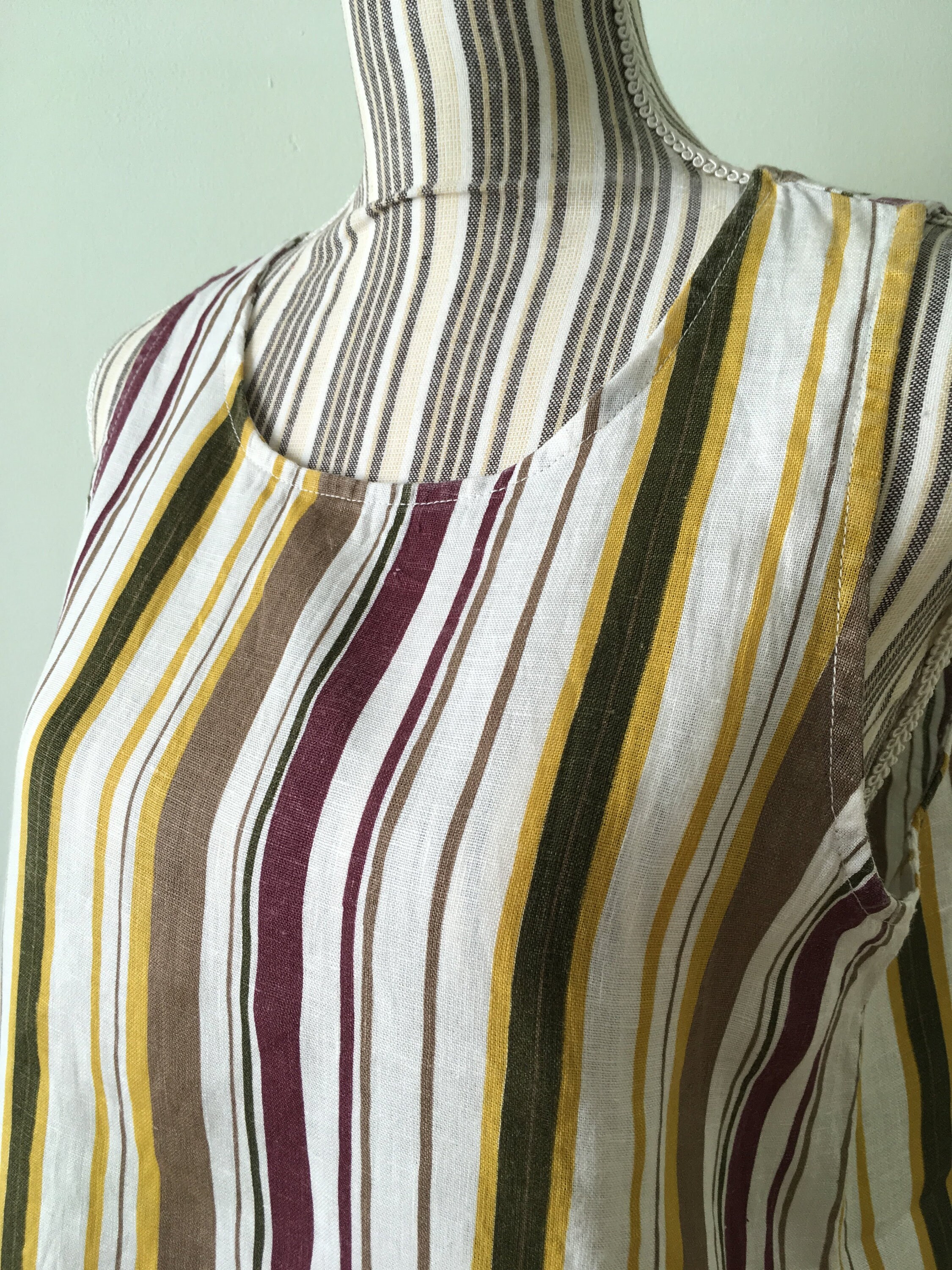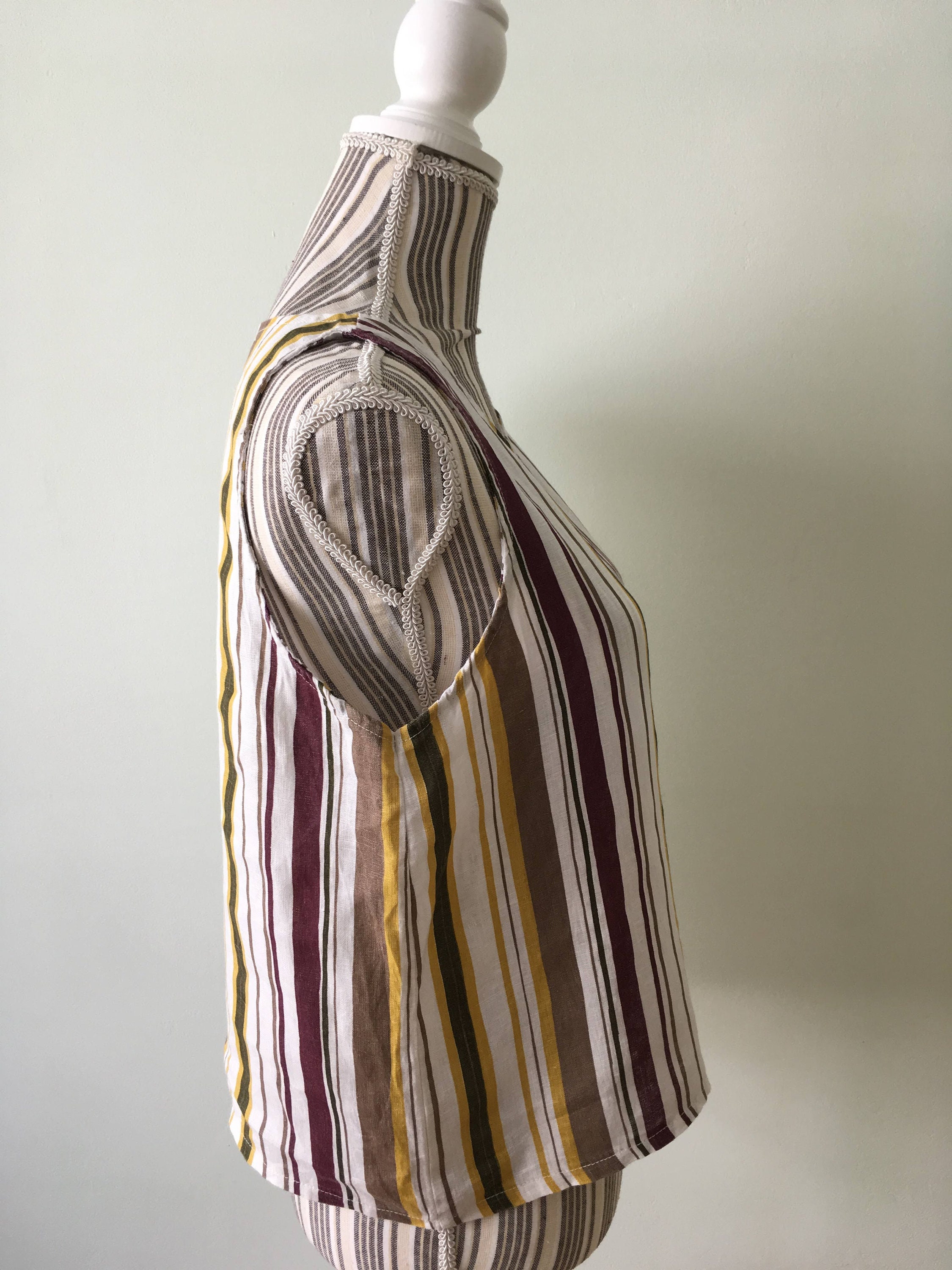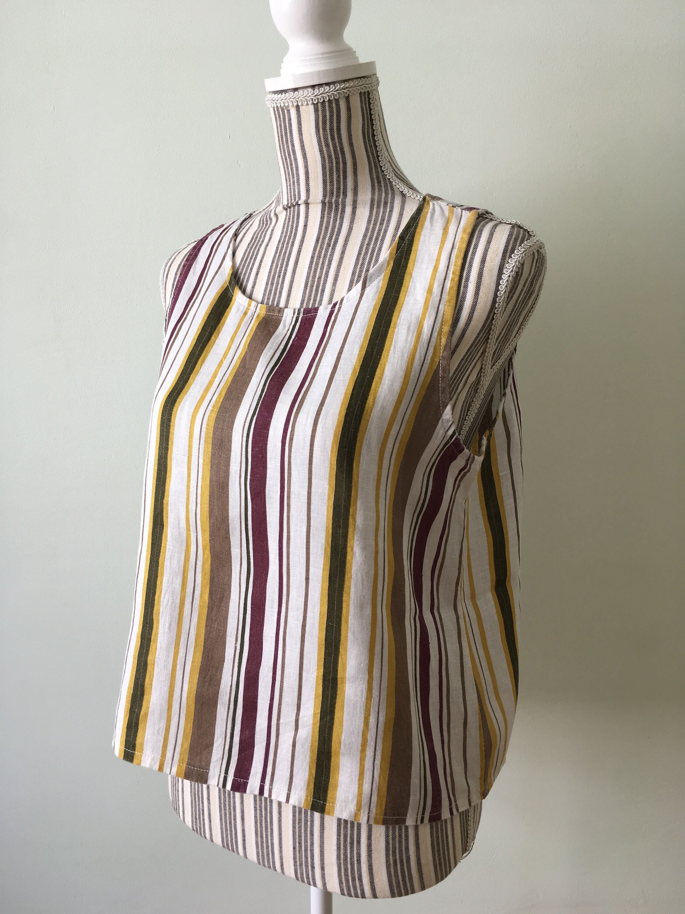 This is a vintage 90s pure linen summer top with vertical stripes. It has a loose boxy fit. There is no label, it fits like M.